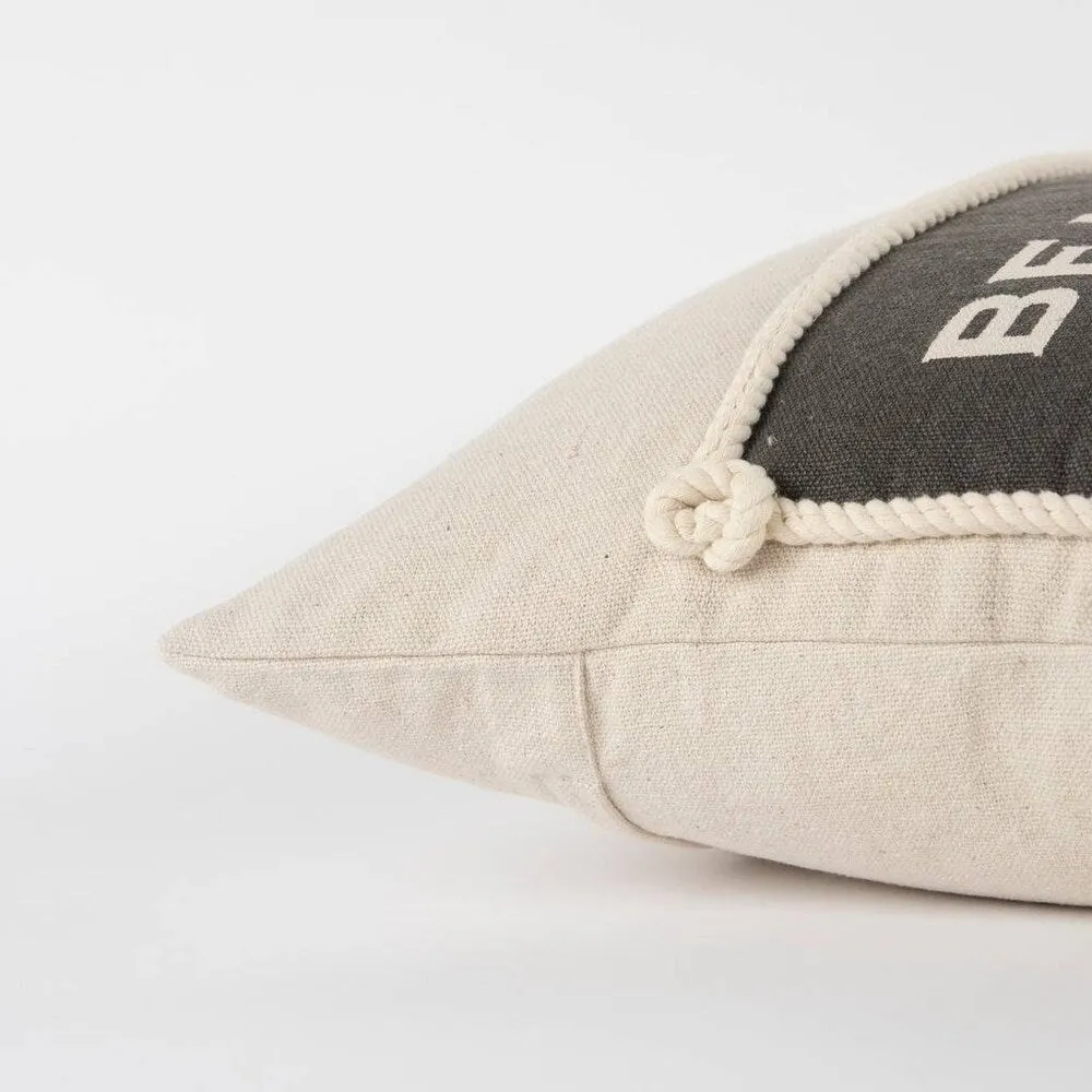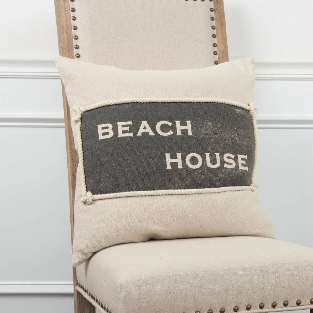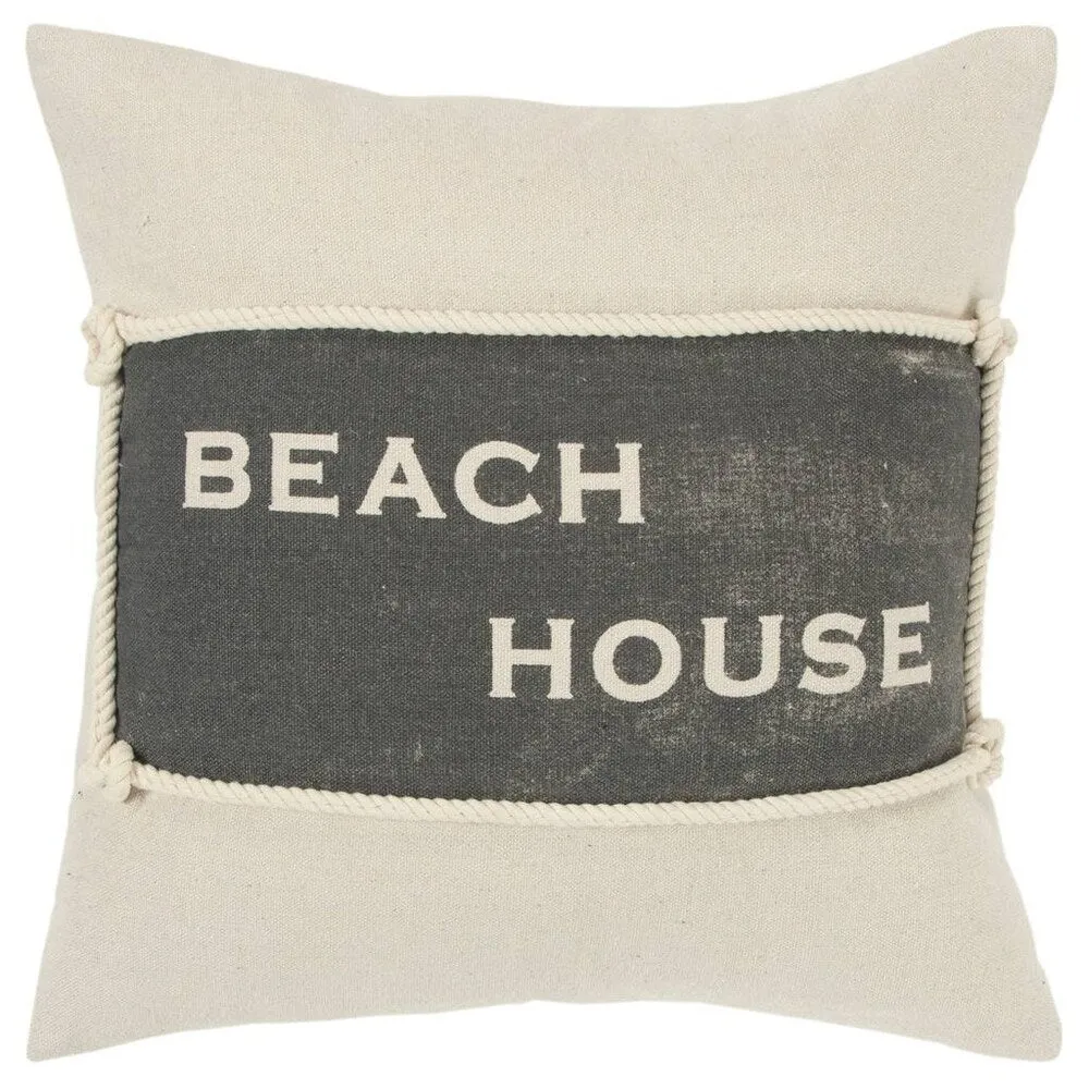 Rizzy Home Sentiment Natural Decorative Poly Filled Pillow - 20"x20" - This pillow brings to it's space a welcome to the beach or to the ATTITUDE of the beach- relaxation, refreshment and restoration. The knotted rope around the Beach house plackard lends texture and authenticuty to the beach house theme. So whether this pillow is at home IN your beach house of in the beach house of your dreams. it is equally inviting and FUN!