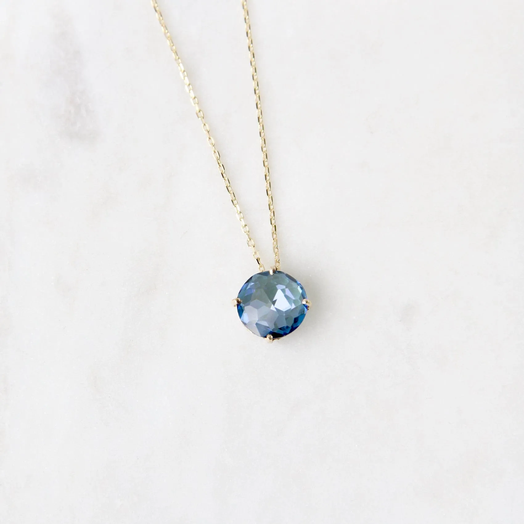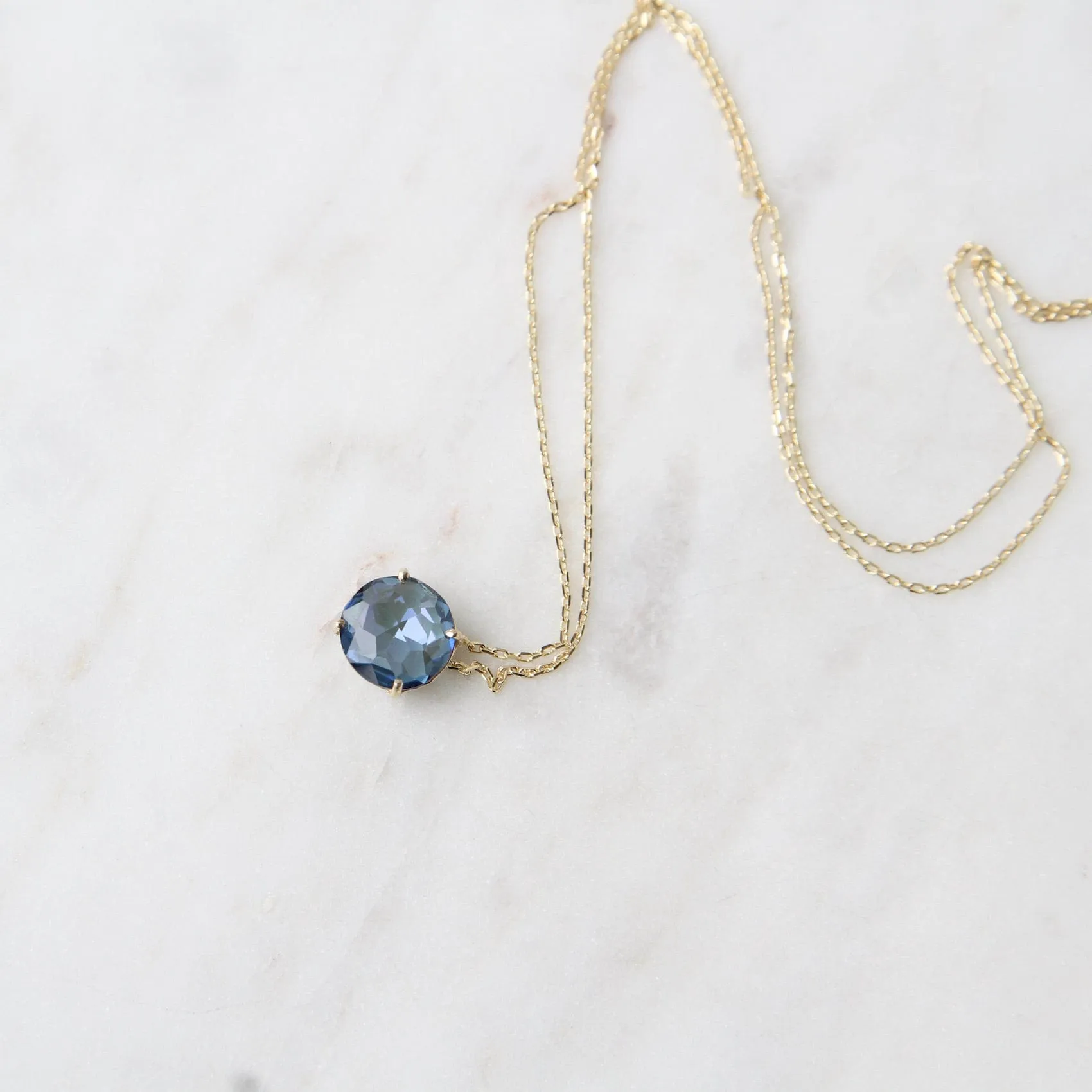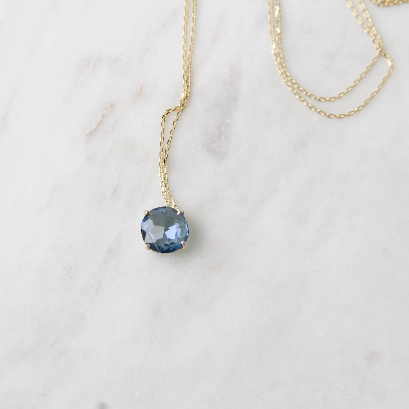 14k Yellow Gold 8mm Round English Blue Topaz Necklace