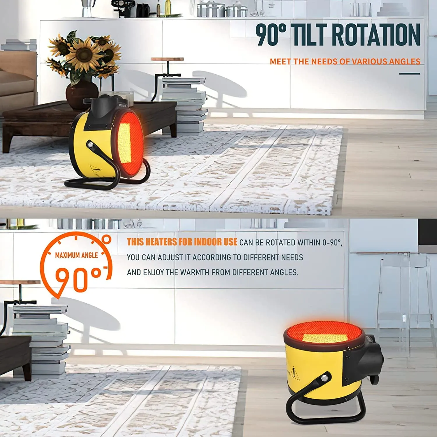 -Rugged steel construction -Adjustable thermostat -Stainless steel combustion chamber with fan cooling. -For quick heating or ventilation of interior areas. -Robust housing with double-sided safety guard. -Powerful fan directs the air flow. -Stable frame with non-slip feet. -Adjustable stand allows directional adjustments. -3S Fast Heating: Our ceramic heater can quickly warm up the air around you within 3 seconds! Stay warm and comfortable in nearly any space under 20??? when the weather turns for the worst once you pick up this portable space heater! -PROTECT YOUR SAFETY: Automatic Overheat Protection system will shut the electric heater off when the parts of the heater overheat. Adopt innovative PTC technology, ceramic heater cools down quickly to avoid overheating. -LOW NOISE PORTABLE HEATER: Offers you a quiet space with extra comfort. Low noise will not disturb your resting, sleeping, reading, and work, etc. Mini size and lightweight is easy to place in any room or move from the floor to the table.Specifics: