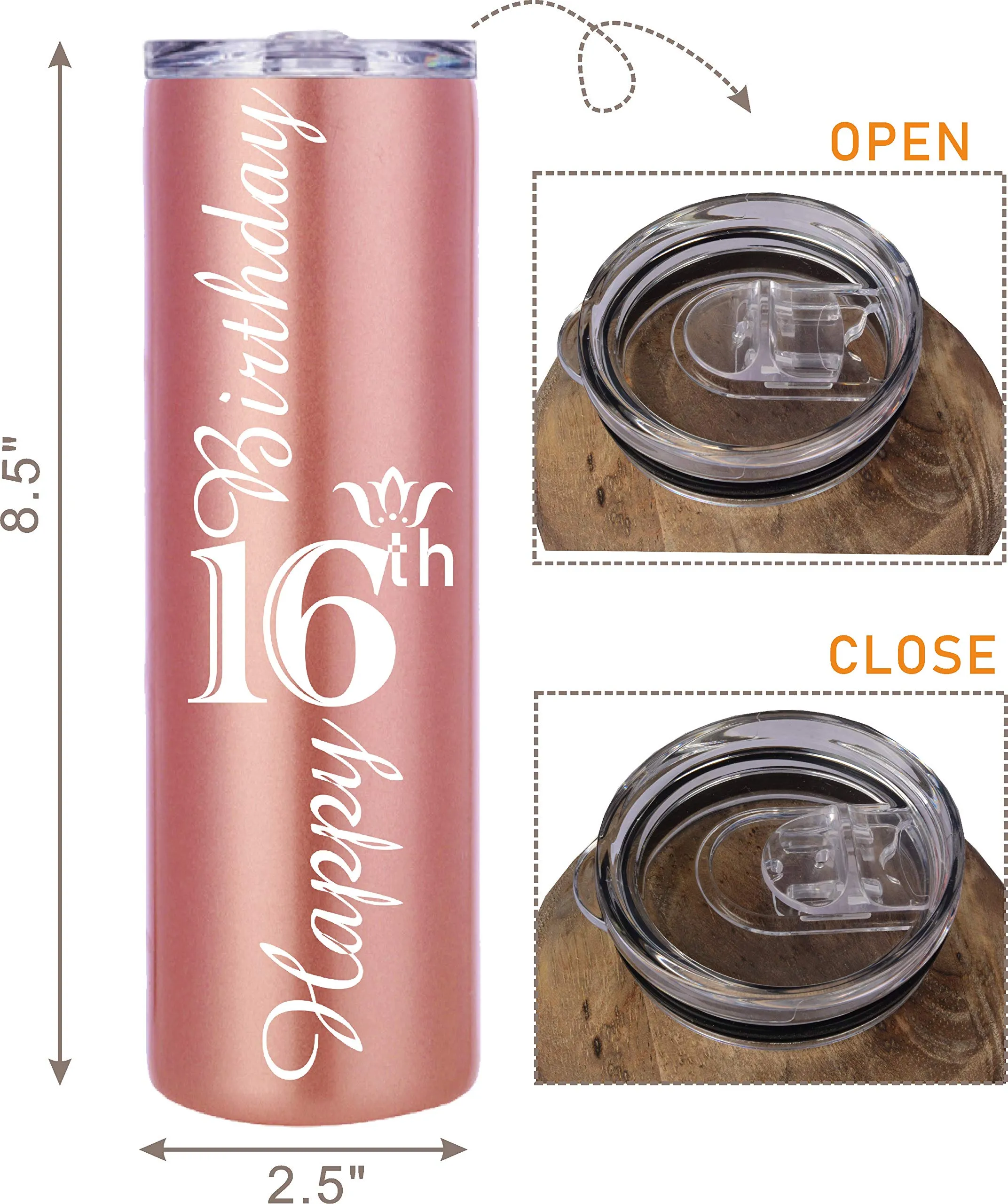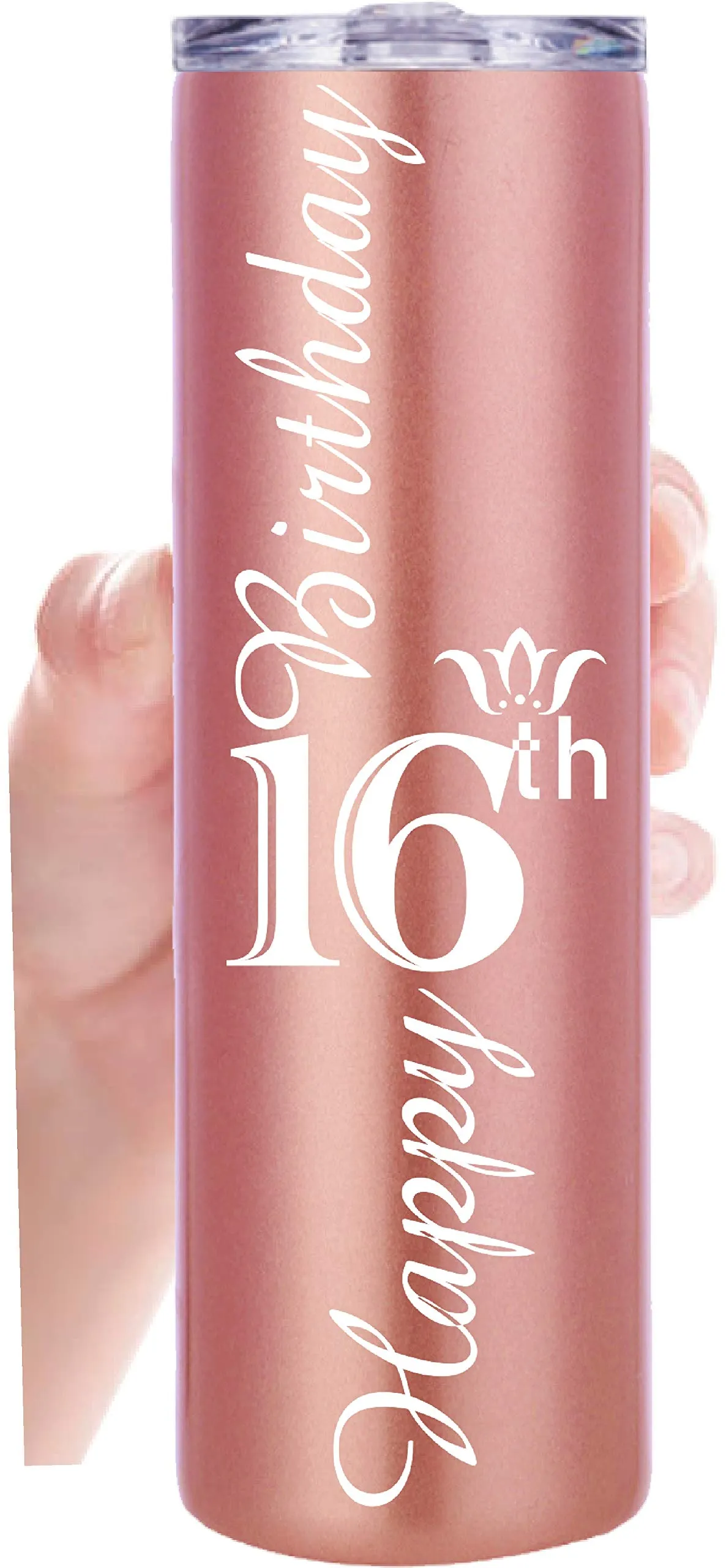 - 16th Birthday Supplies use best material: the 16th Birthday Water Bottle are made of unbreakable 134 18/8 food grade stainless steel, the 16th birthday tumbler Is a reusable, eco-friendly, shatterproof insulated water glass, it can be used for Coffee/ Tea/Beverages/smoothie/juice/water or milk shake cups, also easy to clean with warm water.