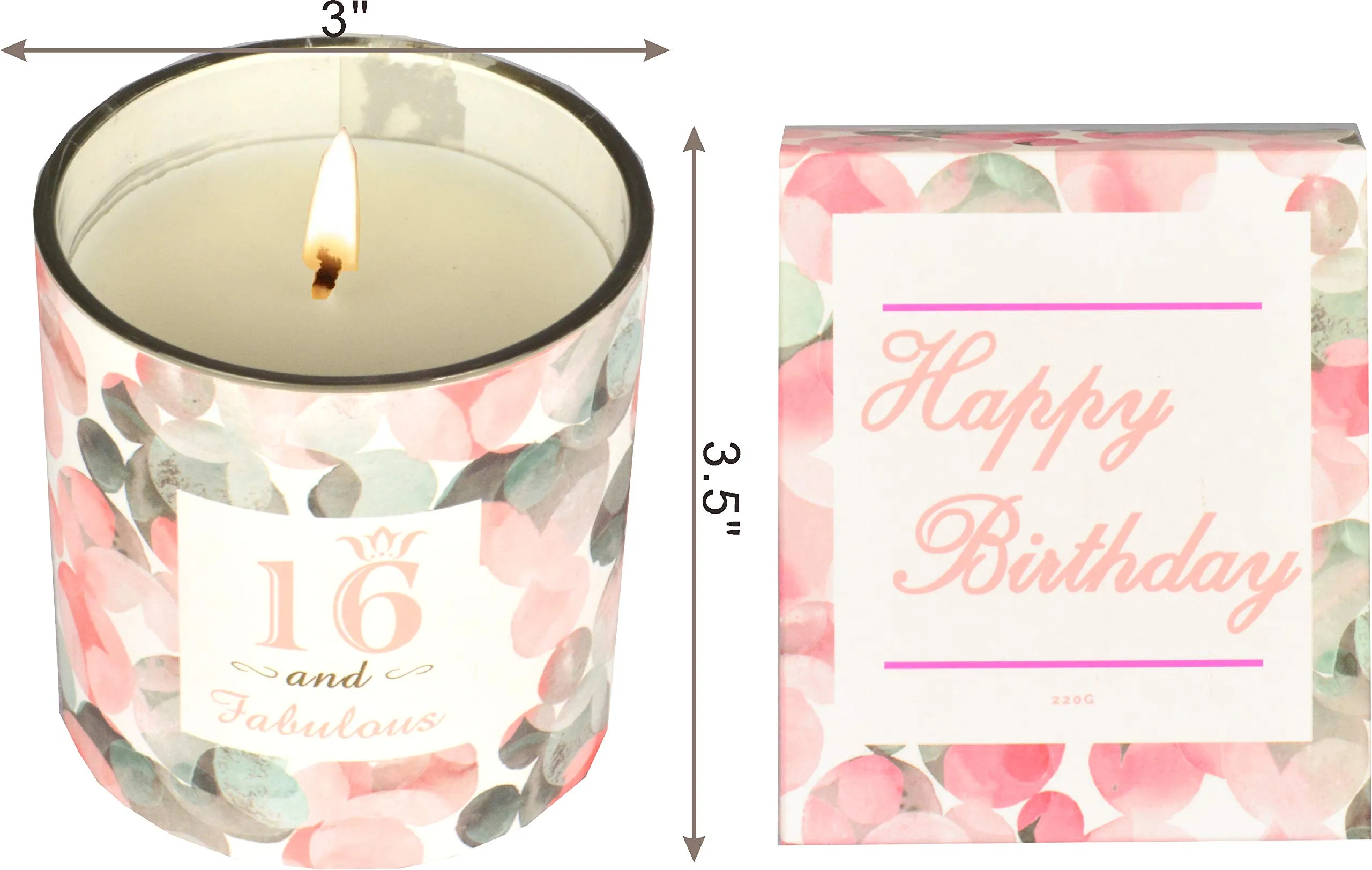 - 16 and Fabulous Gift: 10 Oz Scented Gift. 100% All-Natural Soy Gift Hand Poured In Small Batches. Luxury Scented Soy Jar Gift Highly Scented & Long Lasting with Gift Box. PERFECT SIZE: The Happy 16th Birthday skinny tumblers are the most comfortable size to hold. Both 16th Birthday tumbler fits perfectly in your hand, used in any locations
