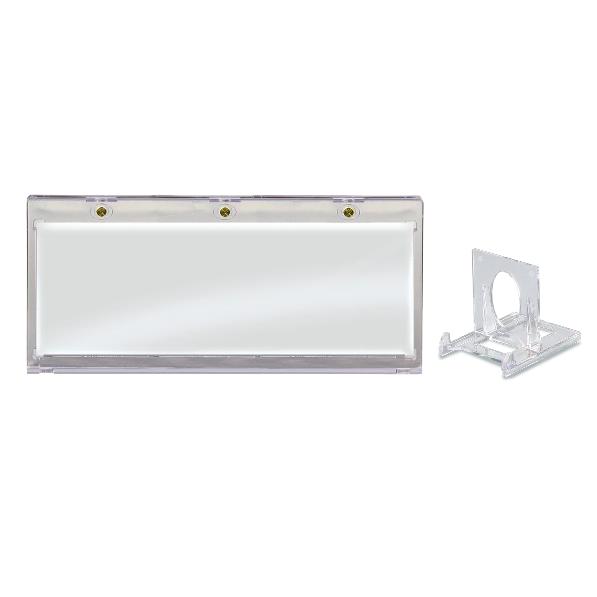 Ultra PRO's ONE-TOUCH Double Booklet Card Holders for 187mm double booklet cards are premium trading card storage cases Designed as the final destination for your booklet cards, our two-piece ONE-TOUCH holders are uniquely designed with a slide-in hinge and triple-tight magnetic closure. The holder provides UV-resistant, no-PVC, and acid-free protection to ensure your valuable hit retains its condition while under the display. Our ONE-TOUCH booklet holder comes with a minimalist two-piece display stand with an adjustable viewing angle. This model can hold horizontal double booklet cards that open up to 187 millimeters in length.