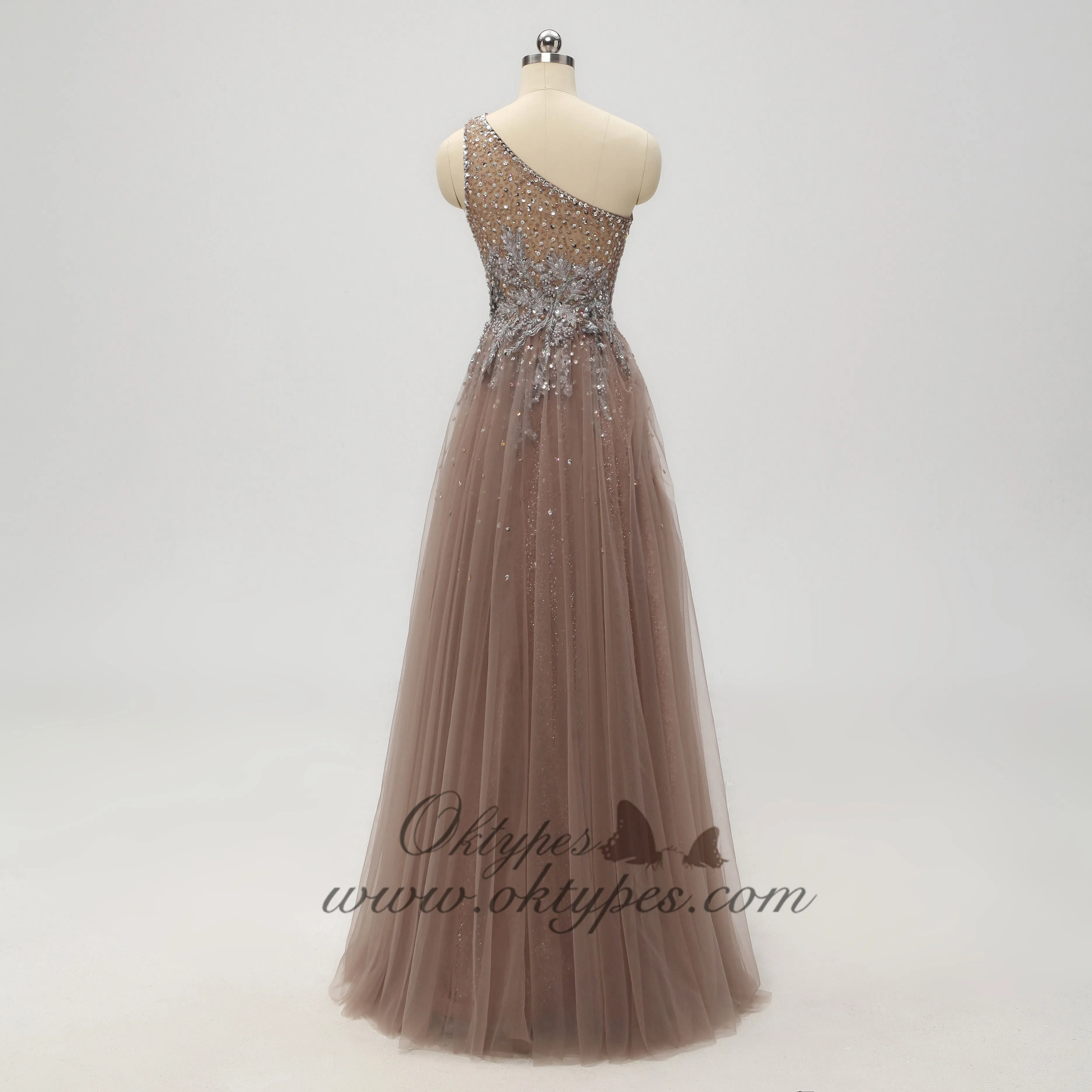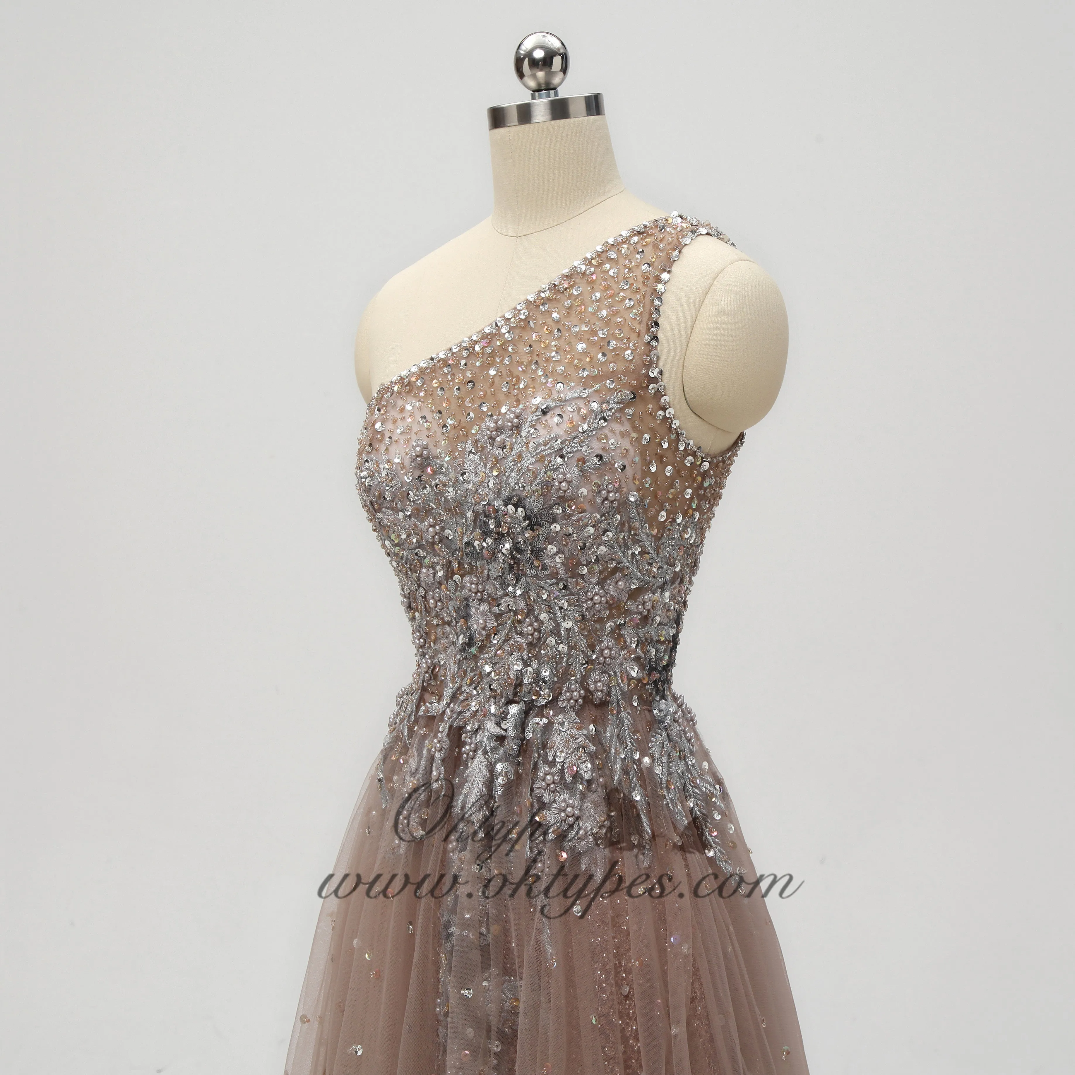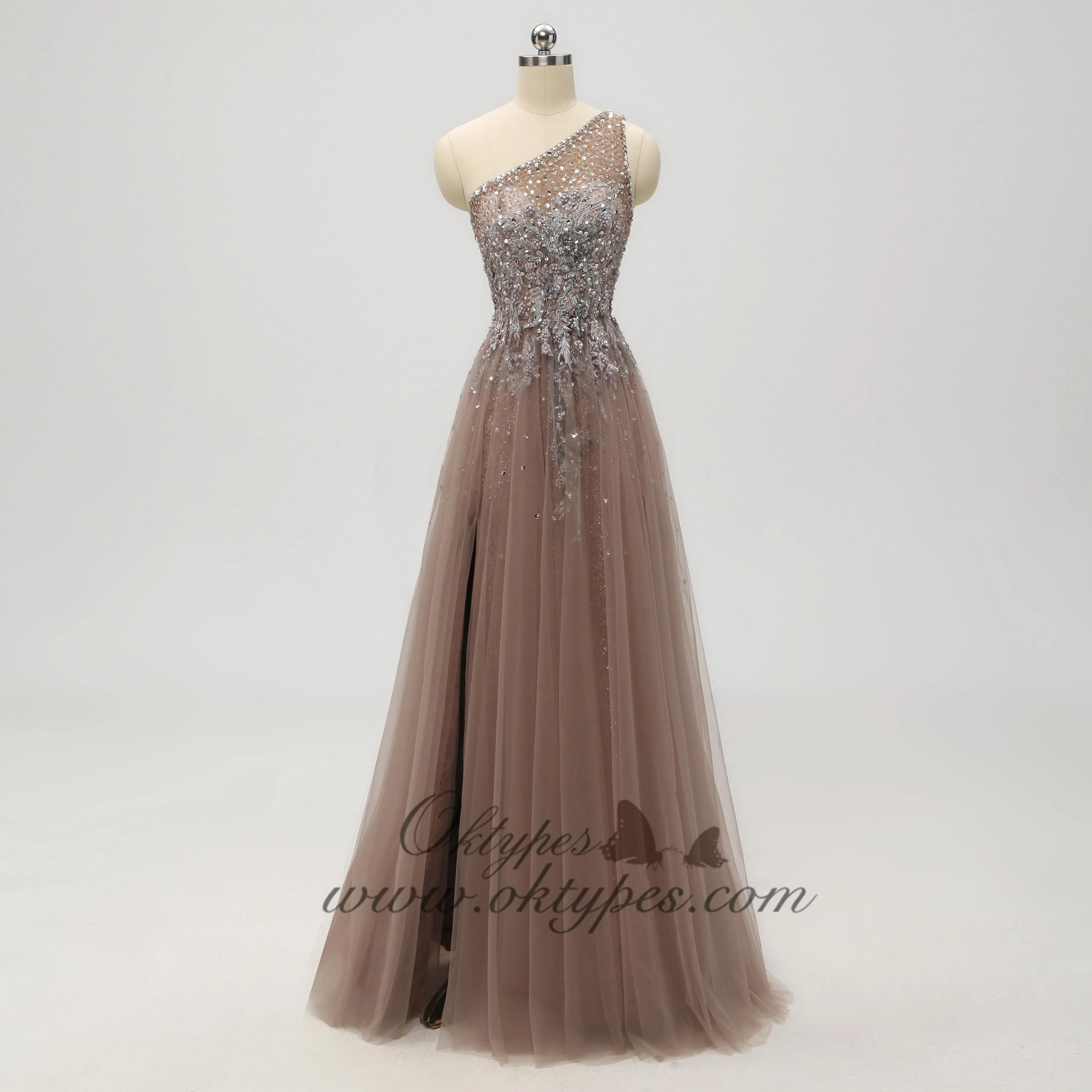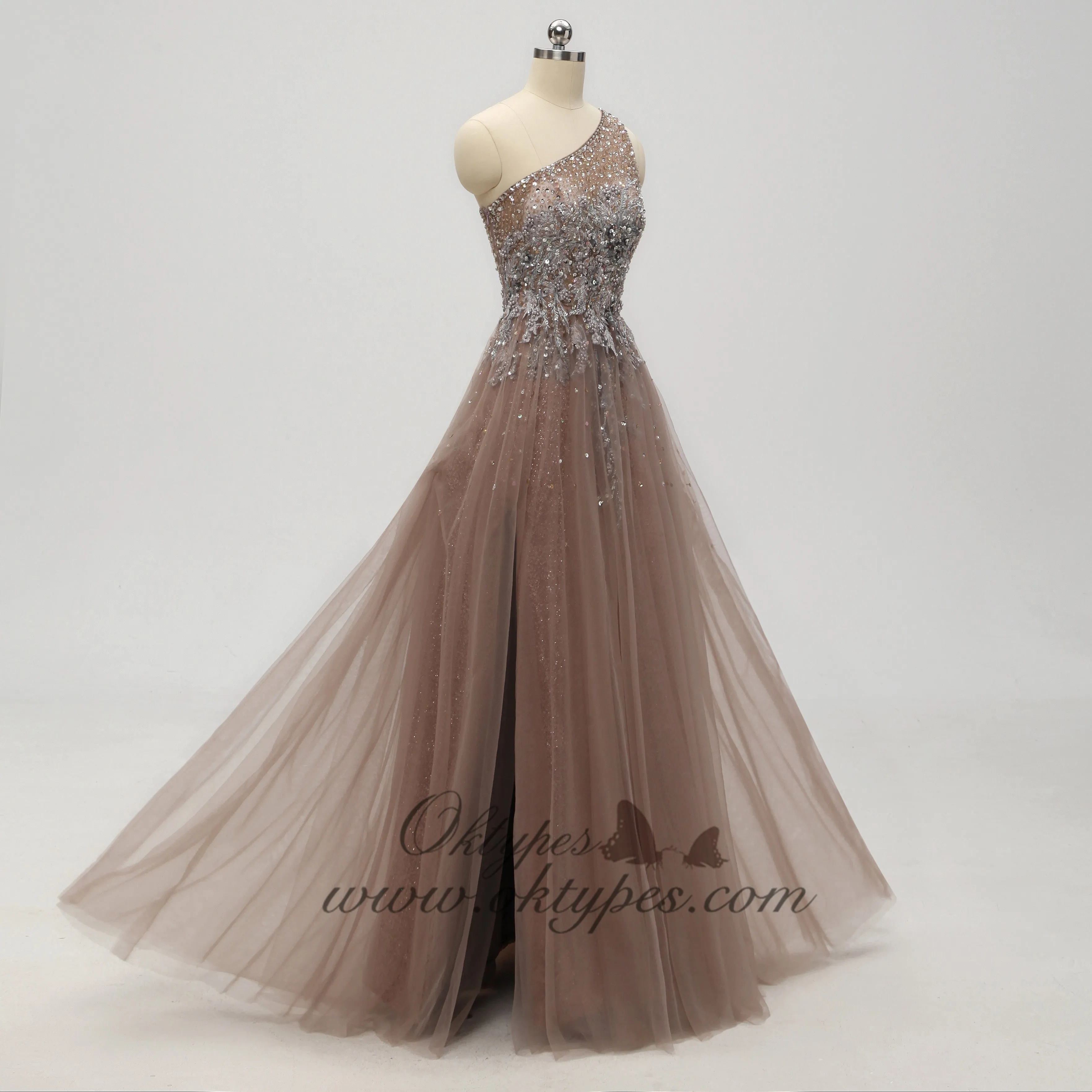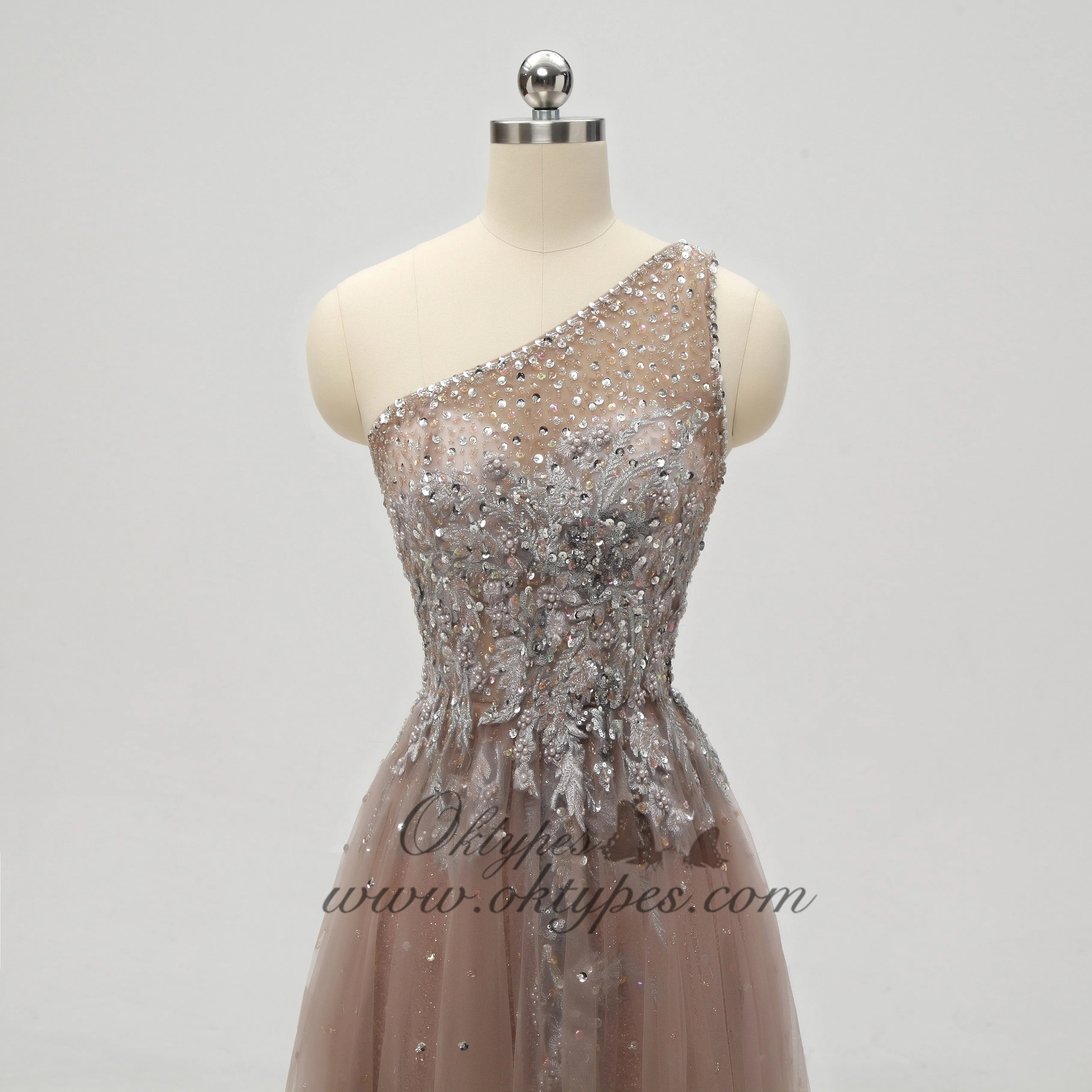2019 One Shoulder Sparkly Side Split Elegant Modest Free Custom Prom Dresses, Fashion Prom Dresses, TYP1158