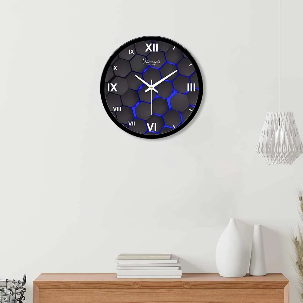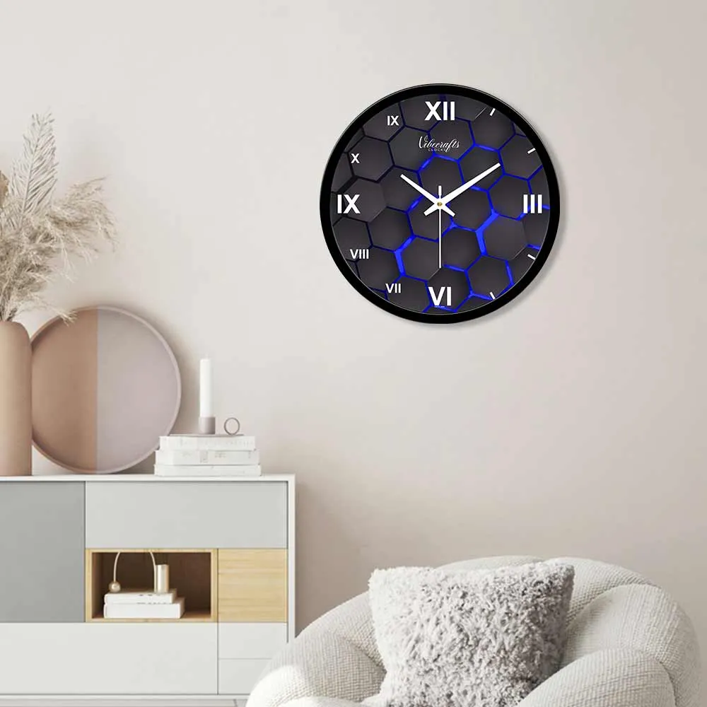 3D Blue Hexagonal Designer Wall Clock, Leave your guests mesmerized as you change the look of your room with eye-catchy 3D Wall Clock. These decor items come in a variety of themes that you can choose from. Designed using quality laser cut technology to satisfy your aesthetic taste, we use only premium quality Laser machine. A perfect wall decoration art piece for living room, bedroom, kitchen, dining room, hotel, cafe, bar etc.These designs add an imperial look to your walls and boast of charm. Special series of high quality wood is designed in a very extraordinary way by using a quality of eye popping design which puts a very attracting reflection towards it. This wall decor piece will definitely create the right home accent you want, brighten up your space and impress your guests. Final product colors may vary slightly from the display image due to the difference in actual product color and digital resolution of various computer or mobile screen.
