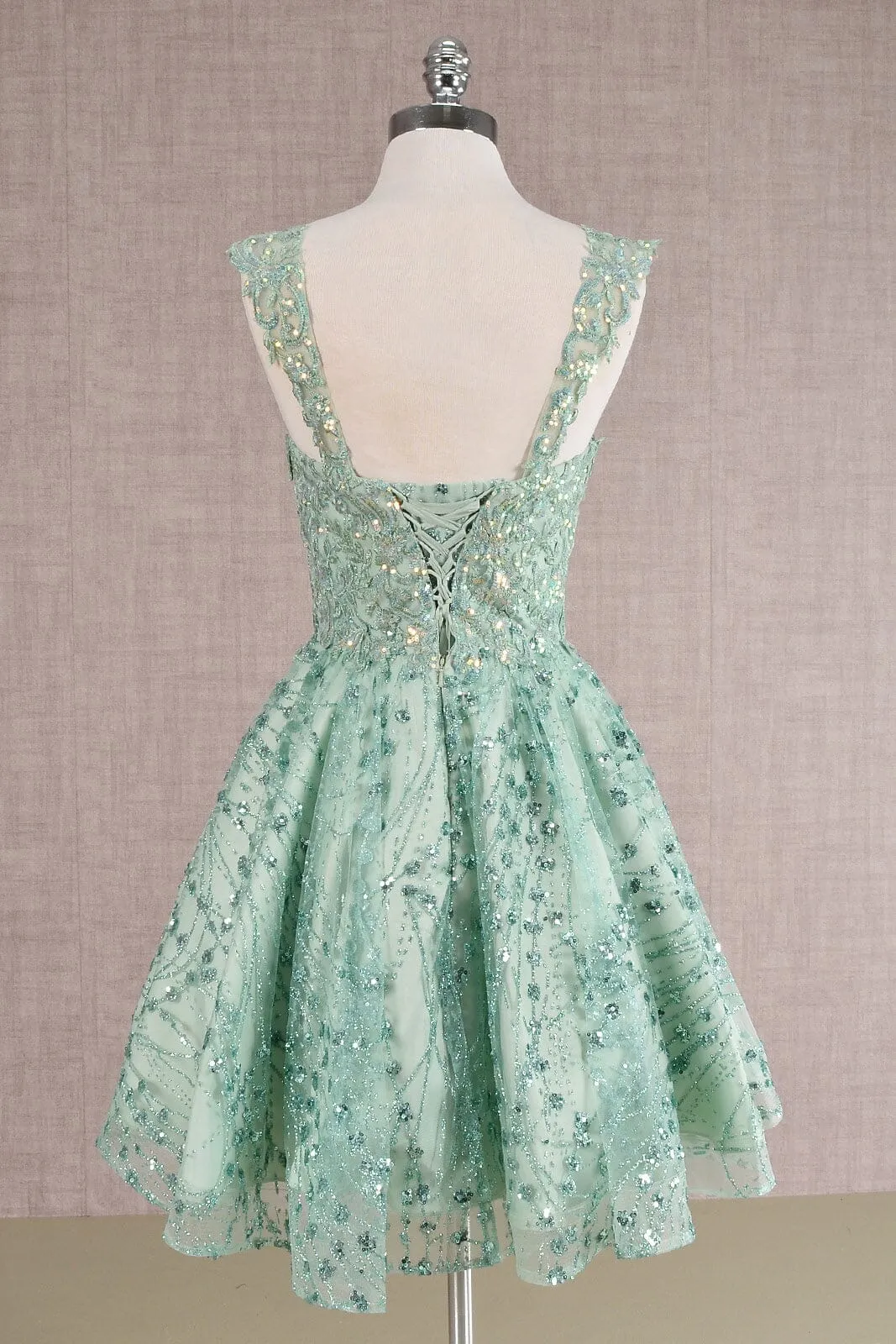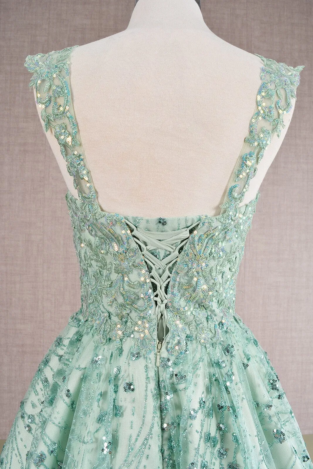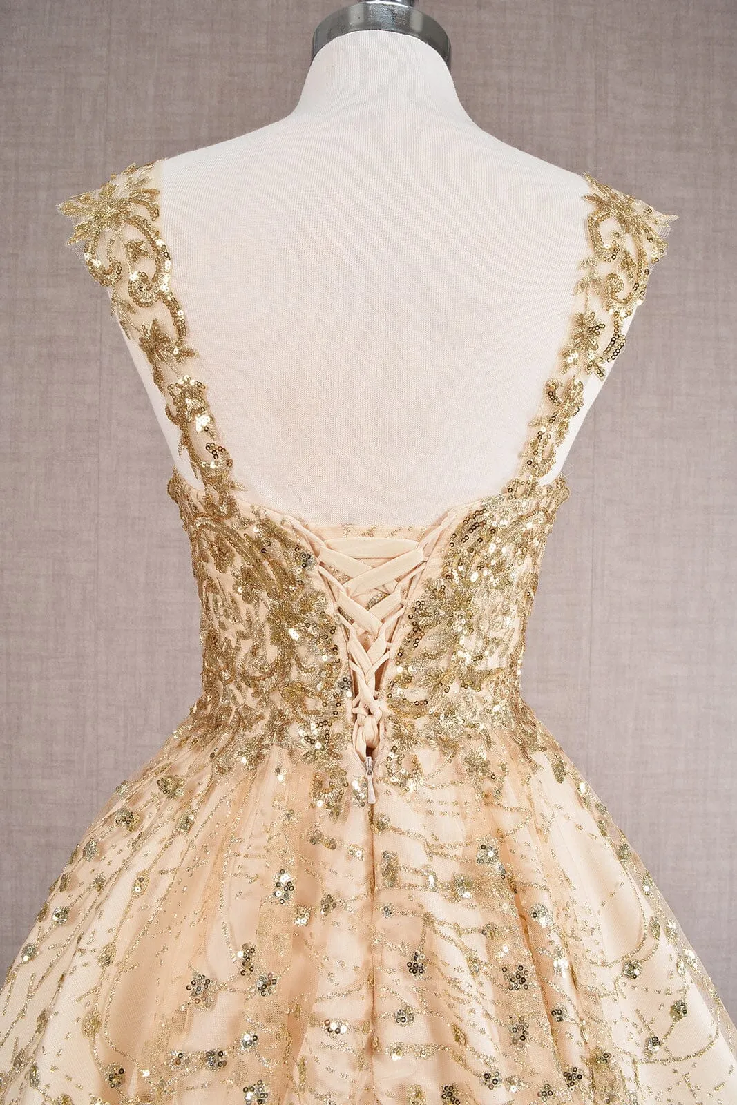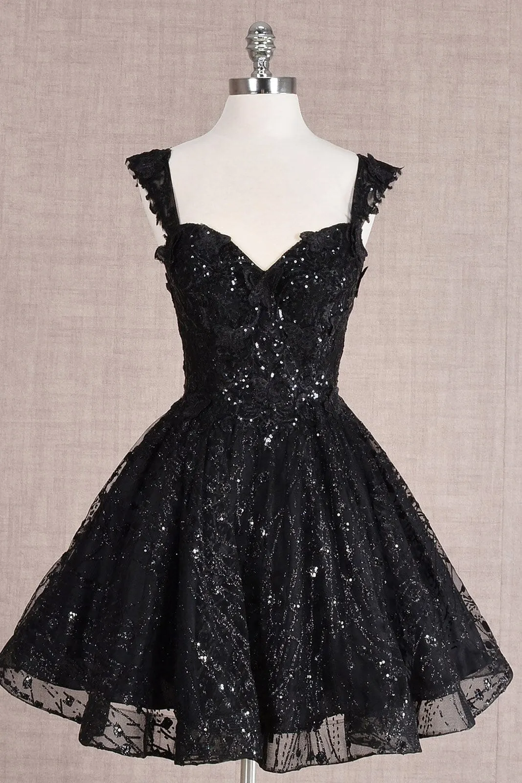 Be the center of attention in this 3D butterfly applique short sleeveless glitter dress with A-line skirt by Elizabeth K GS3187.