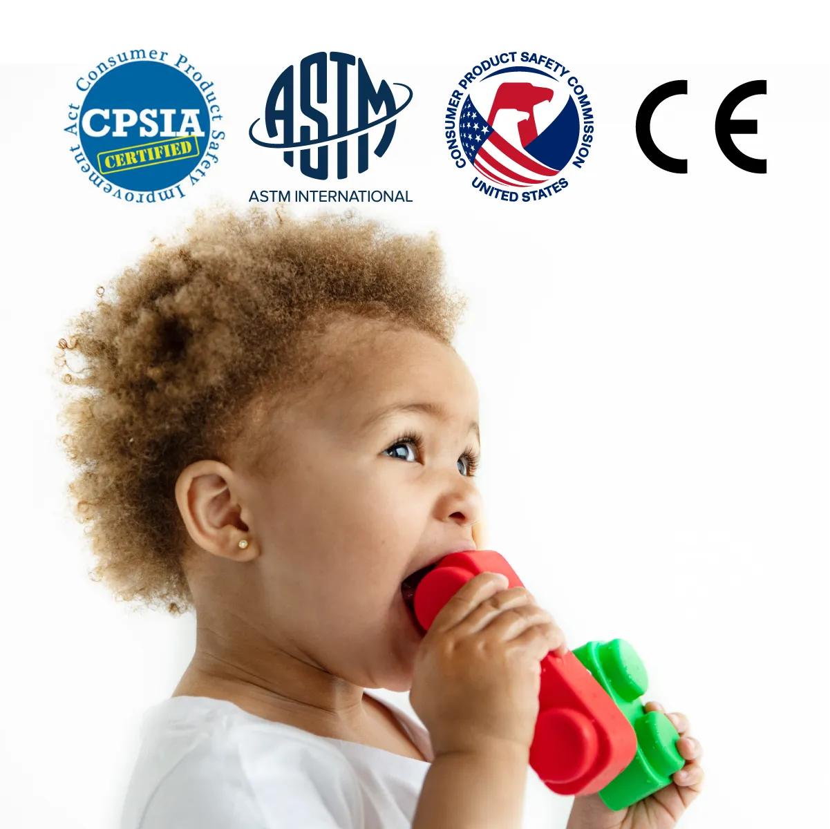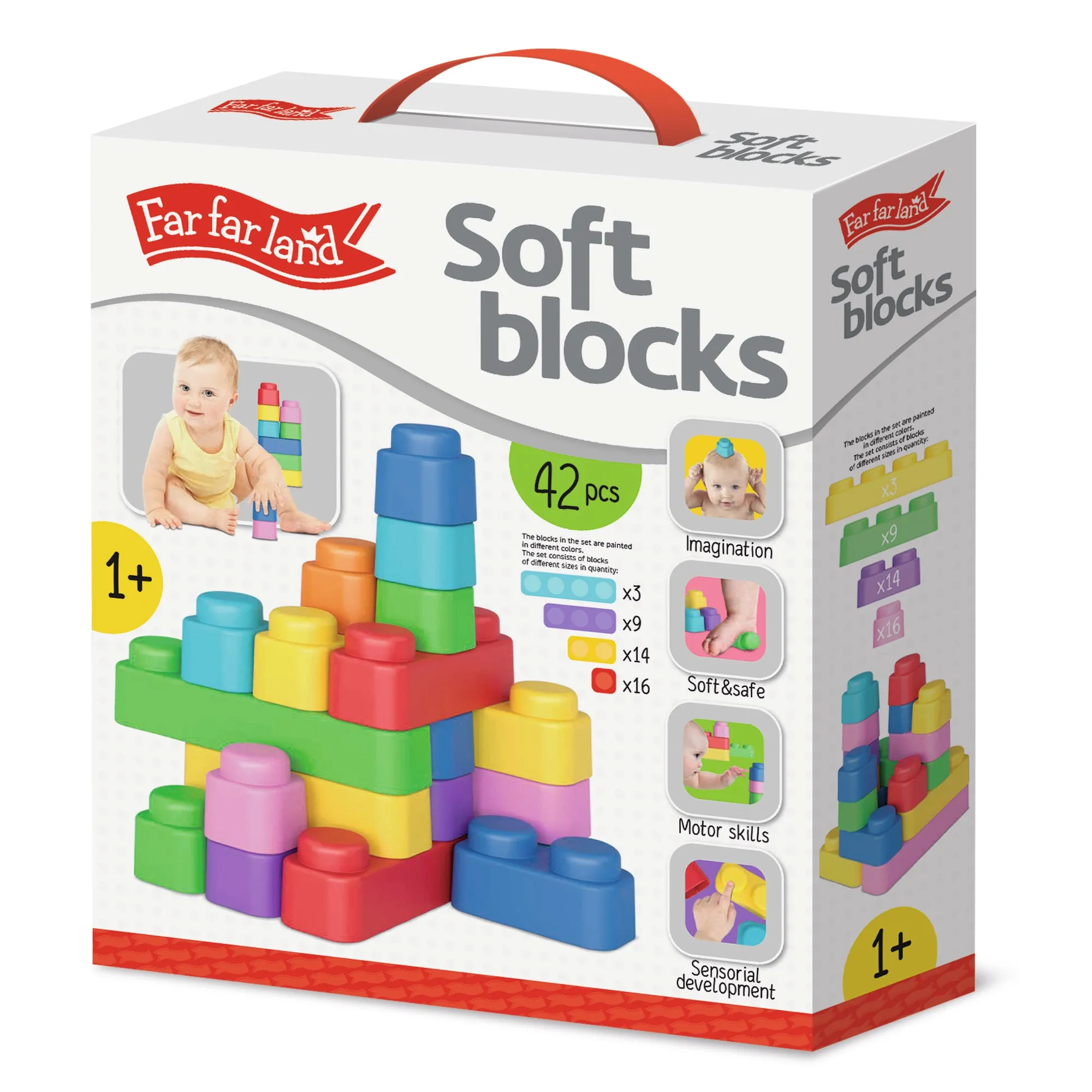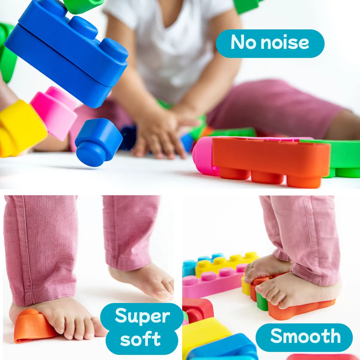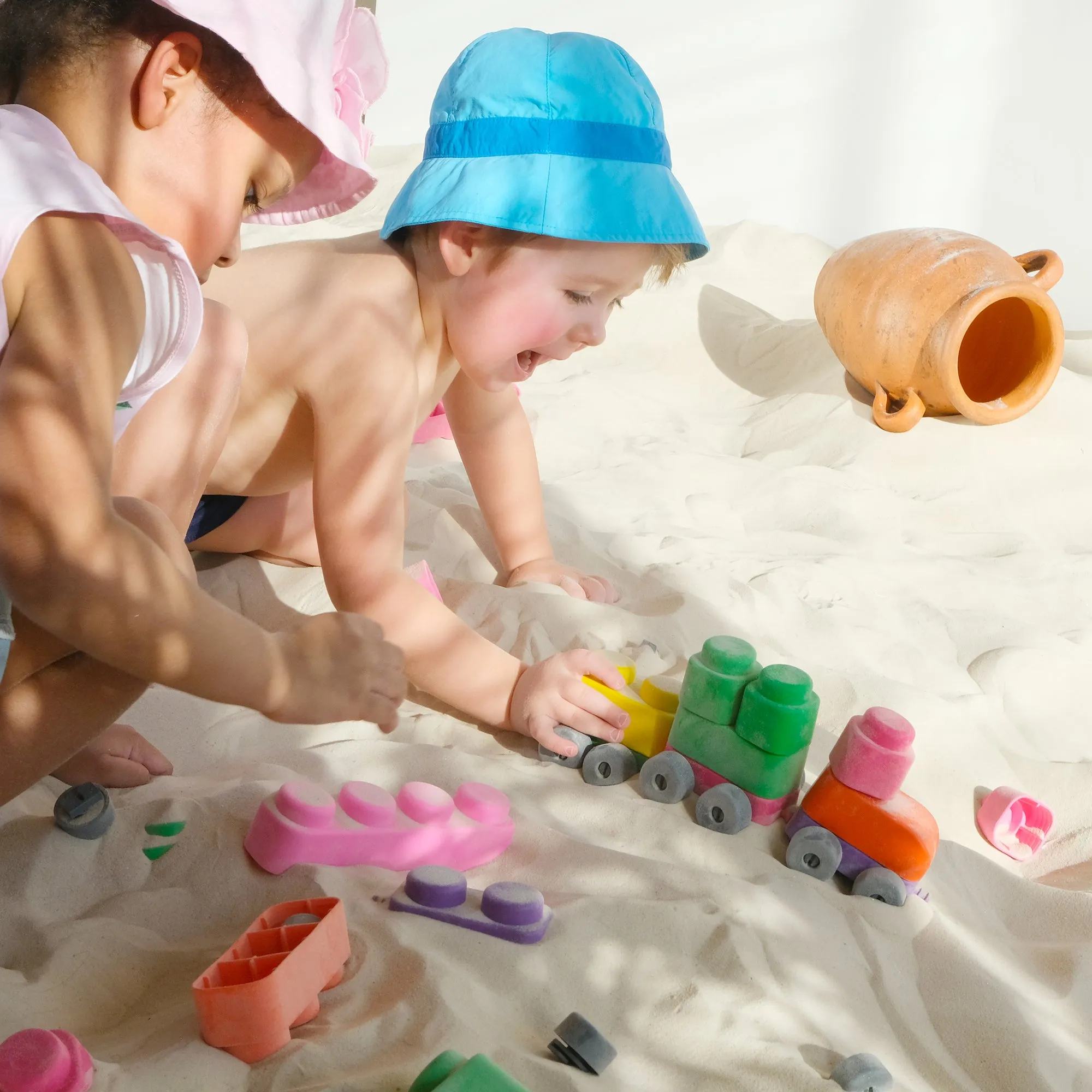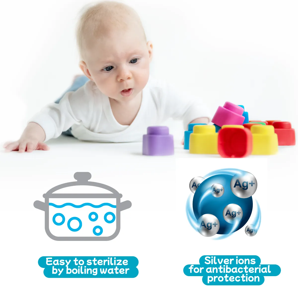 Baby Soft Building Blocks are great for playtime anywhere and anytime at home, at the nursery, in the sandbox, at the beach, in the car, on an airplane or when visiting friends or family. Moreover, you can use these toys as ice moulds or even as bakeware because they are made of high-quality, food-grade material with certified-safe dyes. These beautiful blocks will withstand years of daily active play without changing shape or color