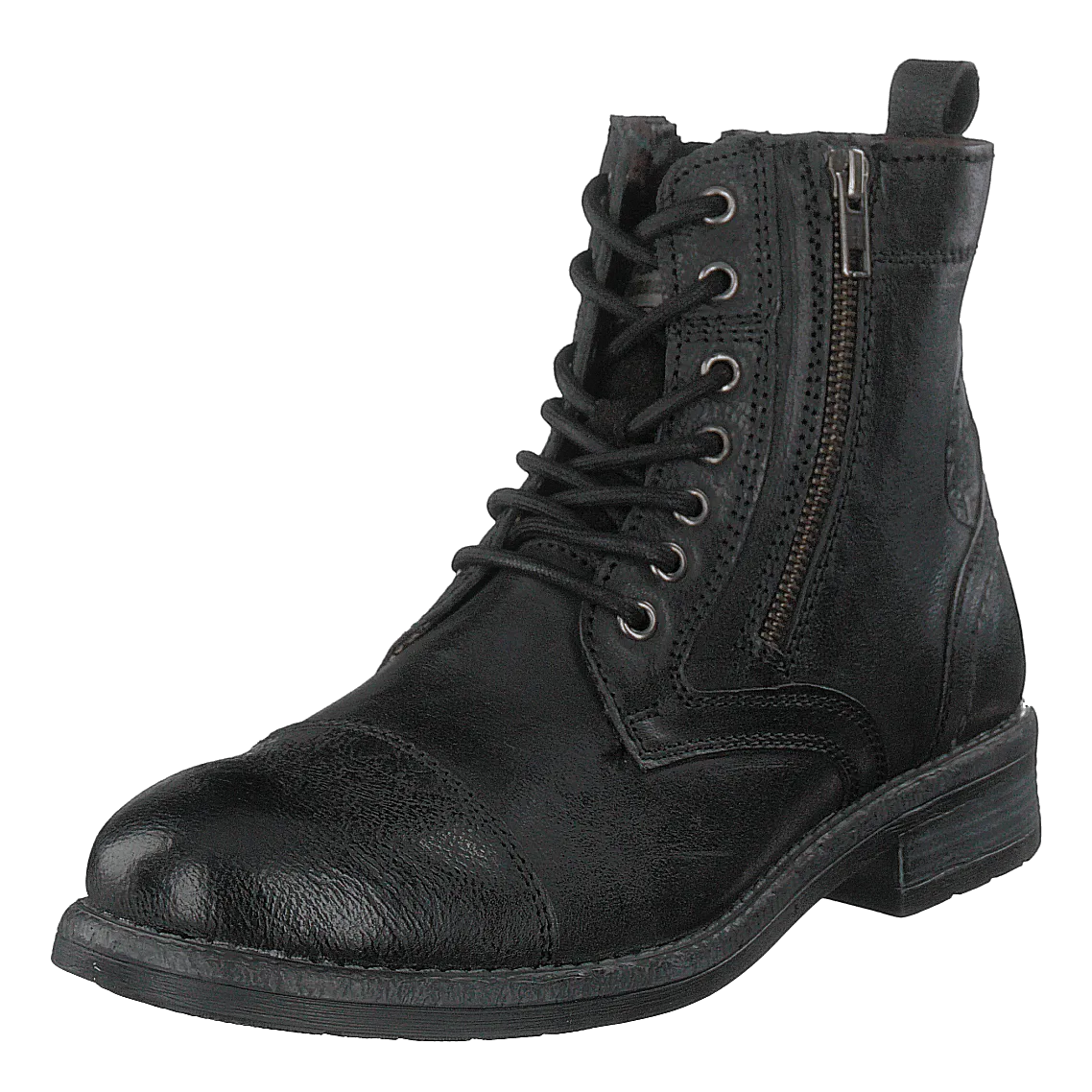 451-2003 Premium Black Leather Textile Boots. Men's casual boots.