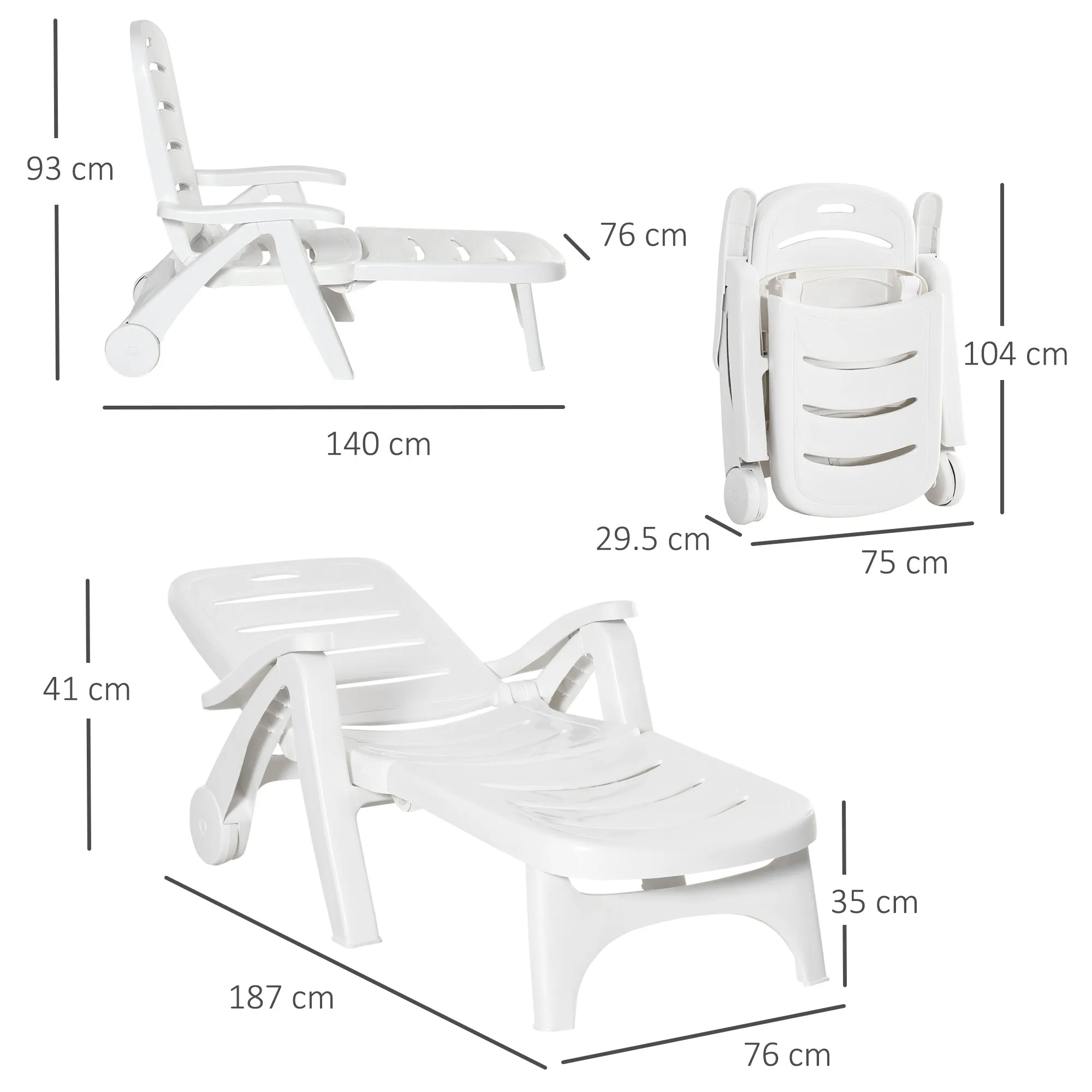Our Outsunny chaise lounge was designed with one purpose in mind and you'll discover it when the first time you try. It's all about relaxation and the pleasure you experience from sitting in something that's built for comfort. Backrest angle is 5-tier adjustable so that you can always find a comfortable position to read, sunbath, etc. And it is foldable and features wheels for easy transport. Upgrade to an patio chaise lounge and spend your sunny days in the finest ways possible.