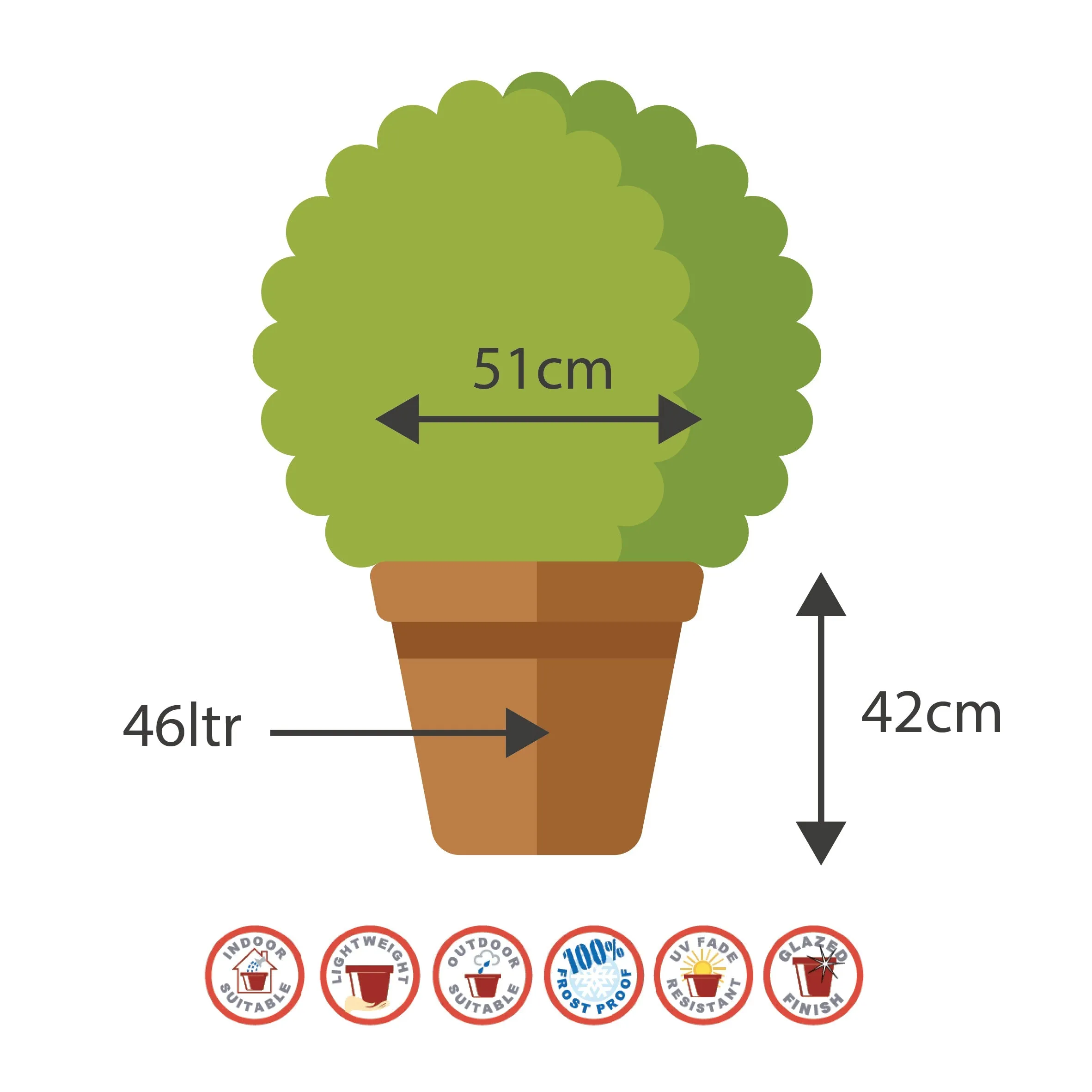 The Belair Planter is the ideal pot for brightening up dull outdoor spaces, coming in 4 vibrant colours: amber, apple green, post box red and diamond blue, as well as a more subtle old stone grey for those looking to keep their gardens more neutral. The planter is provided with a removable plastic reservoir base and comes without drainage holes, however, this can be drilled. Made from lightweight, recycled material and containing frost proof and UV fade resistant qualities, this planter is ideal for both outdoor and indoor use.