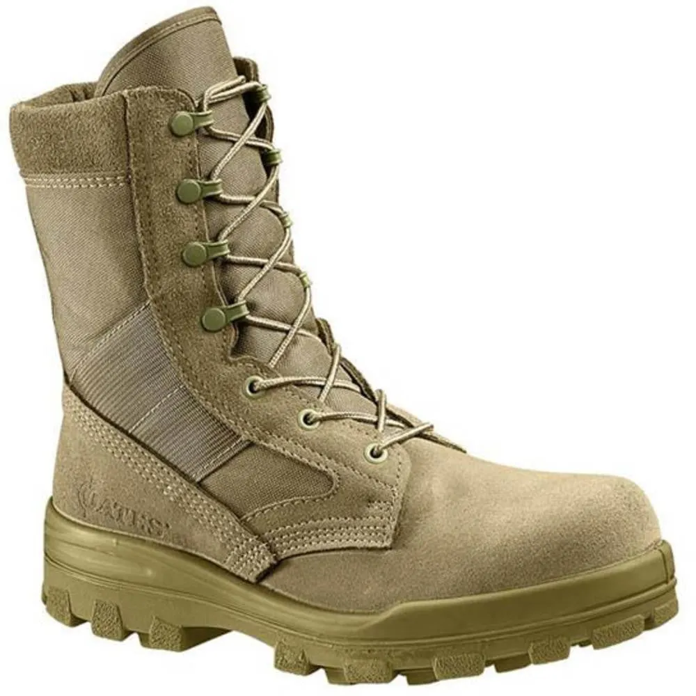 Boot Height: Approx. 8" Tall. Hot-sellers for hot weather, these 8” combat boots are made to handle the heat of battle and the beating sun. Constructed with rough-side-out leather and nylon uppers over a moisture-wicking lining. The removable cushion insole includes shock-absorbing pads, while the slip-resistant Vibram Bob DuraShocks outsole provides an aggressive edge-blocking design for sure-footed maneuvers.