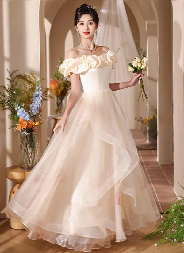 A-line Light Champagne Off Shoulder Long Prom Dress Evening Dress