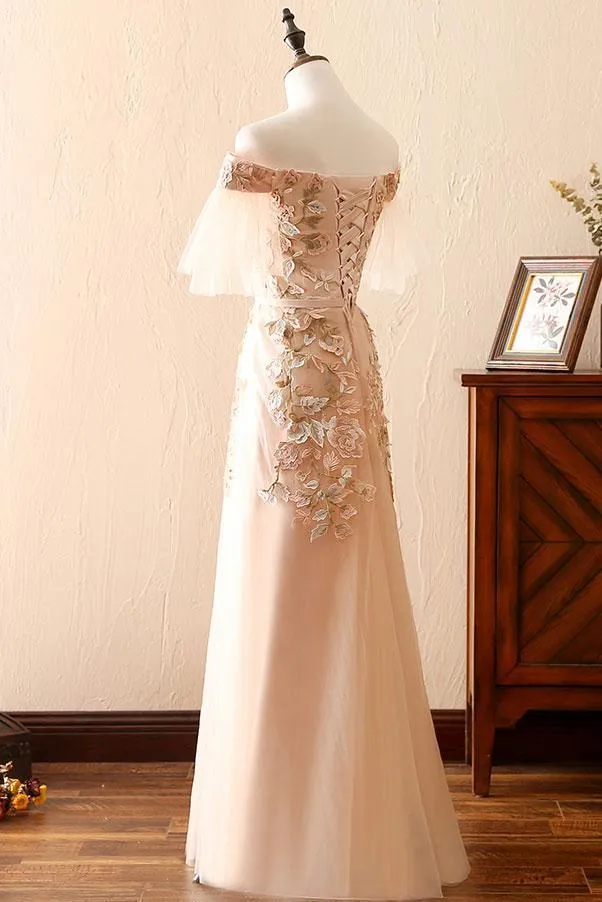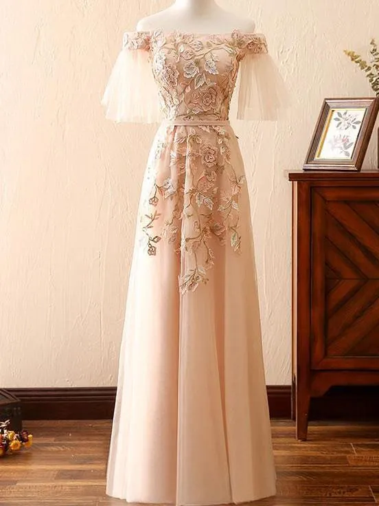 A-line Off-Shoulder Floor-Length Tulle Prom Dresses HX0034