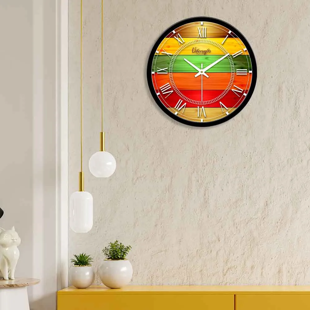 Abstract colorful Wood Printed Designer Wall Clock, Leave your guests mesmerized as you change the look of your room with eye-catchy 3D Wall Clock. These decor items come in a variety of themes that you can choose from. Designed using quality laser cut technology to satisfy your aesthetic taste, we use only premium quality Laser machine. A perfect wall decoration art piece for living room, bedroom, kitchen, dining room, hotel, cafe, bar etc.These designs add an imperial look to your walls and boast of charm. Special series of high quality wood is designed in a very extraordinary way by using a quality of eye popping design which puts a very attracting reflection towards it. This wall decor piece will definitely create the right home accent you want, brighten up your space and impress your guests. Final product colors may vary slightly from the display image due to the difference in actual product color and digital resolution of various computer or mobile screen.
