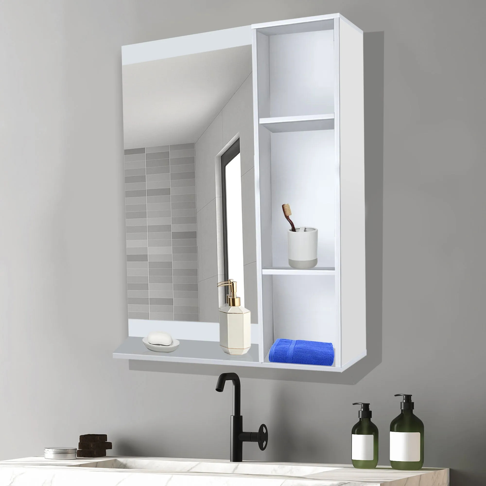 Aesthetic Wooden Bathroom Cabinet Mirror with 4 Spacious Shelves with White Finish