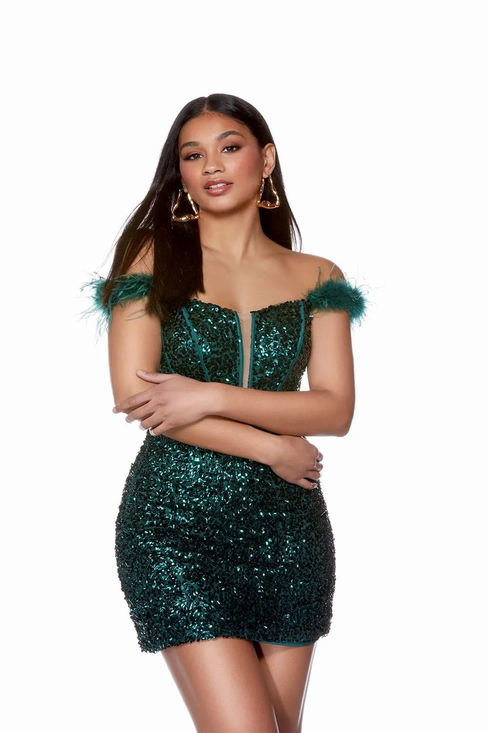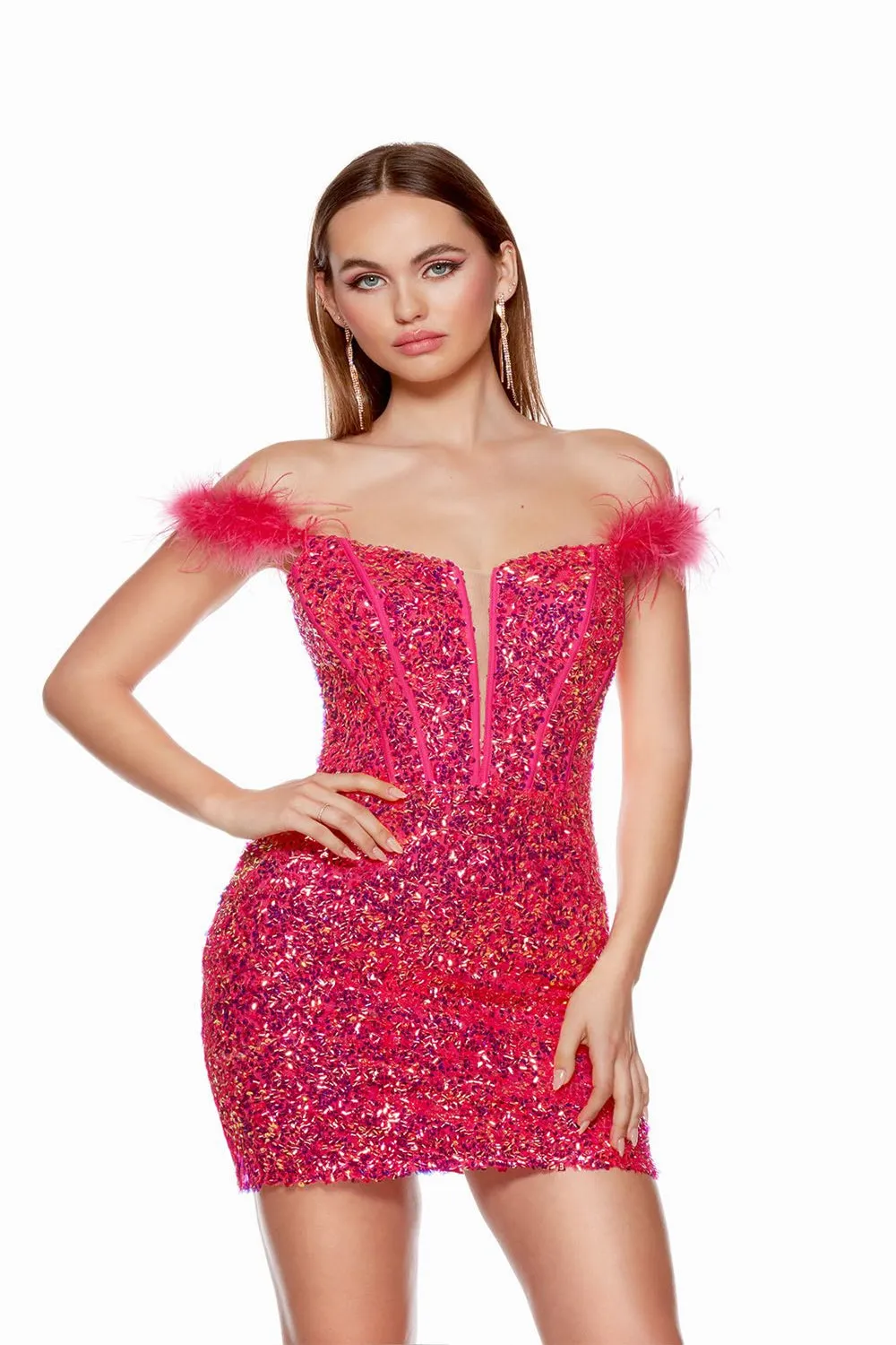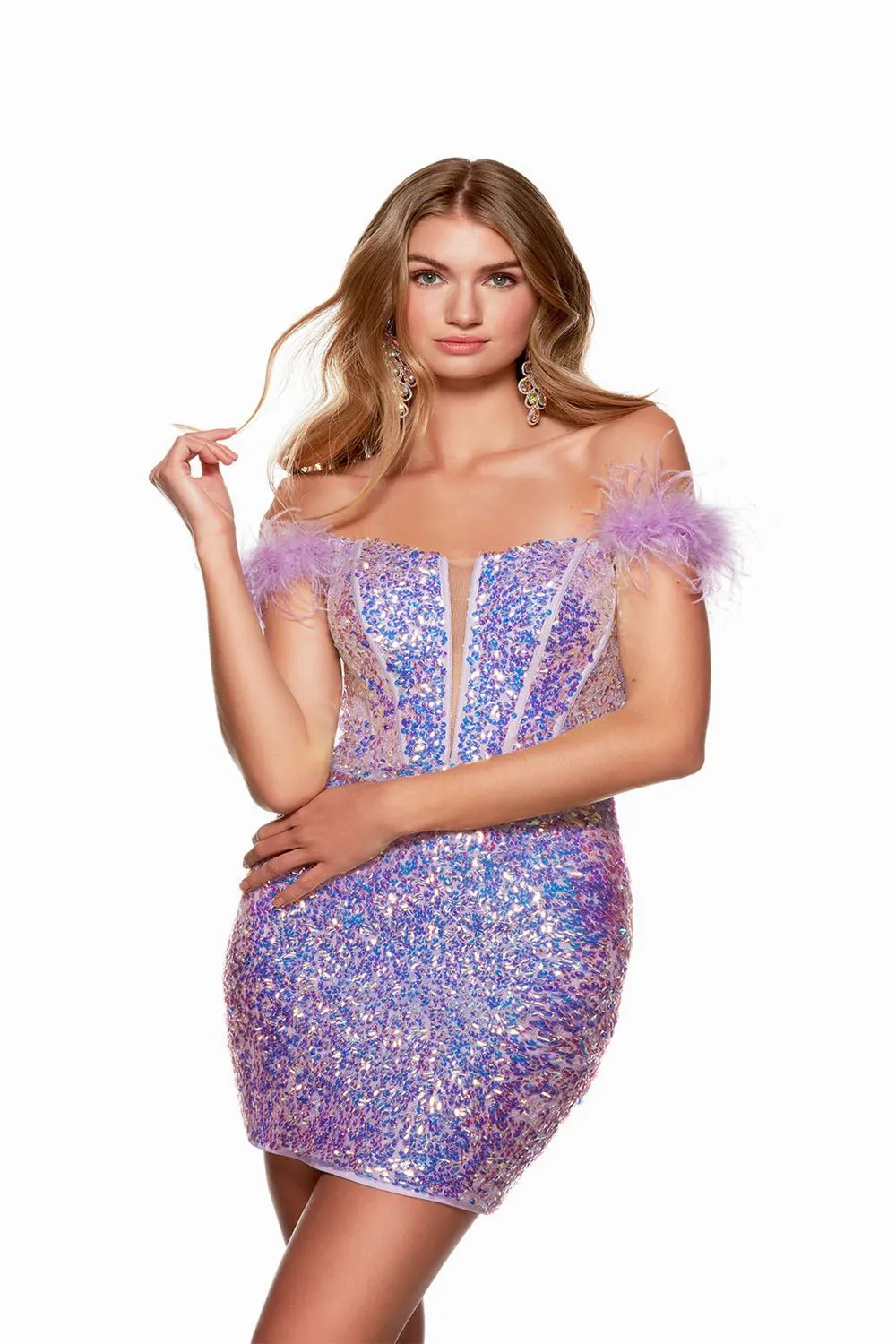 Introducing the Alyce 4768 dress from the enchanting Fall 2023 evening collection. This captivating gown is adorned with shimmering sequins and delicate feathers, creating a mesmerizing look that will leave everyone breathless. With its romantic design and exquisite craftsmanship, this dress is perfect for making a statement at any special occasion. Step into the spotlight and let the Alyce 4768 dress transport you to a world of elegance and grace. ✨🌙✨