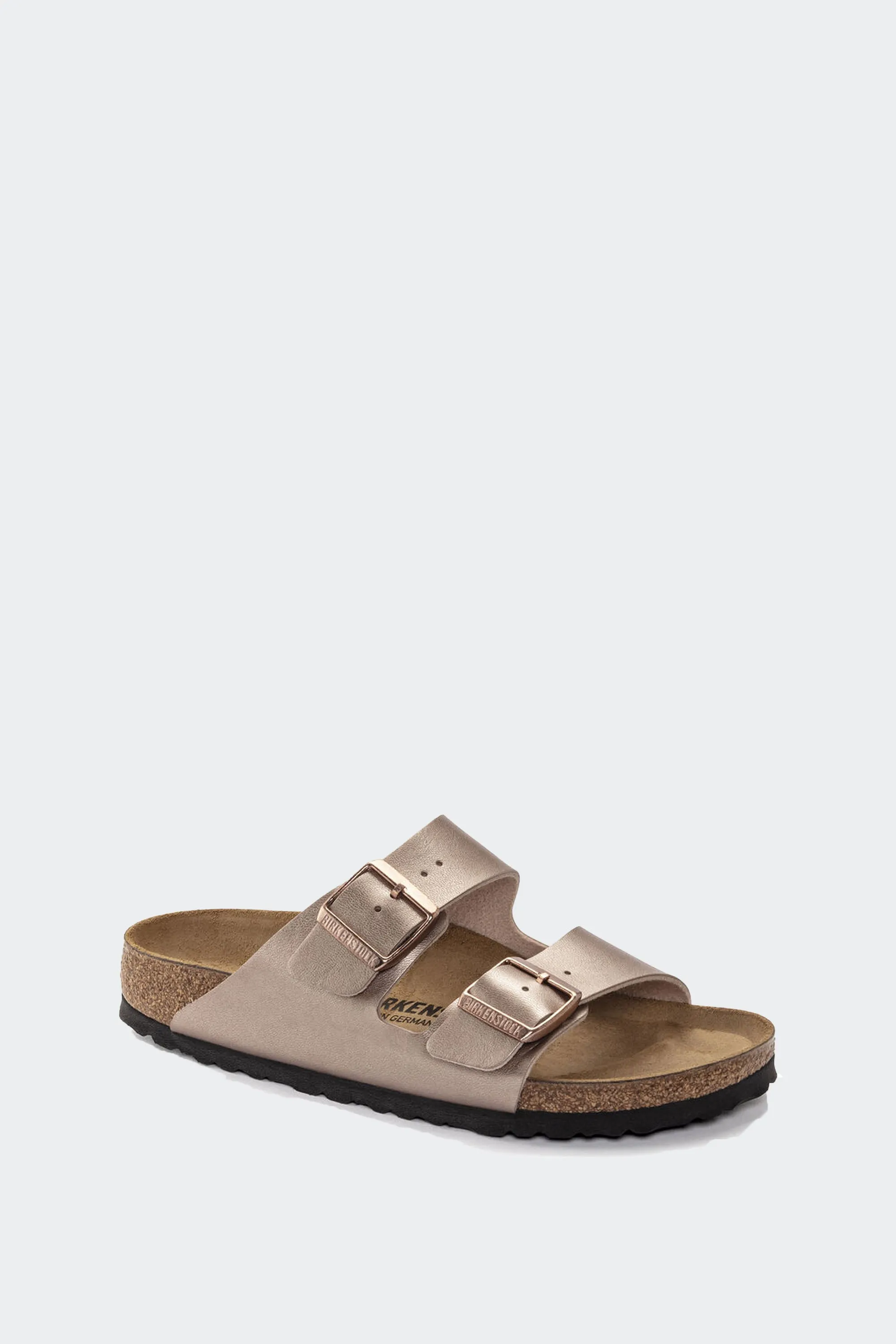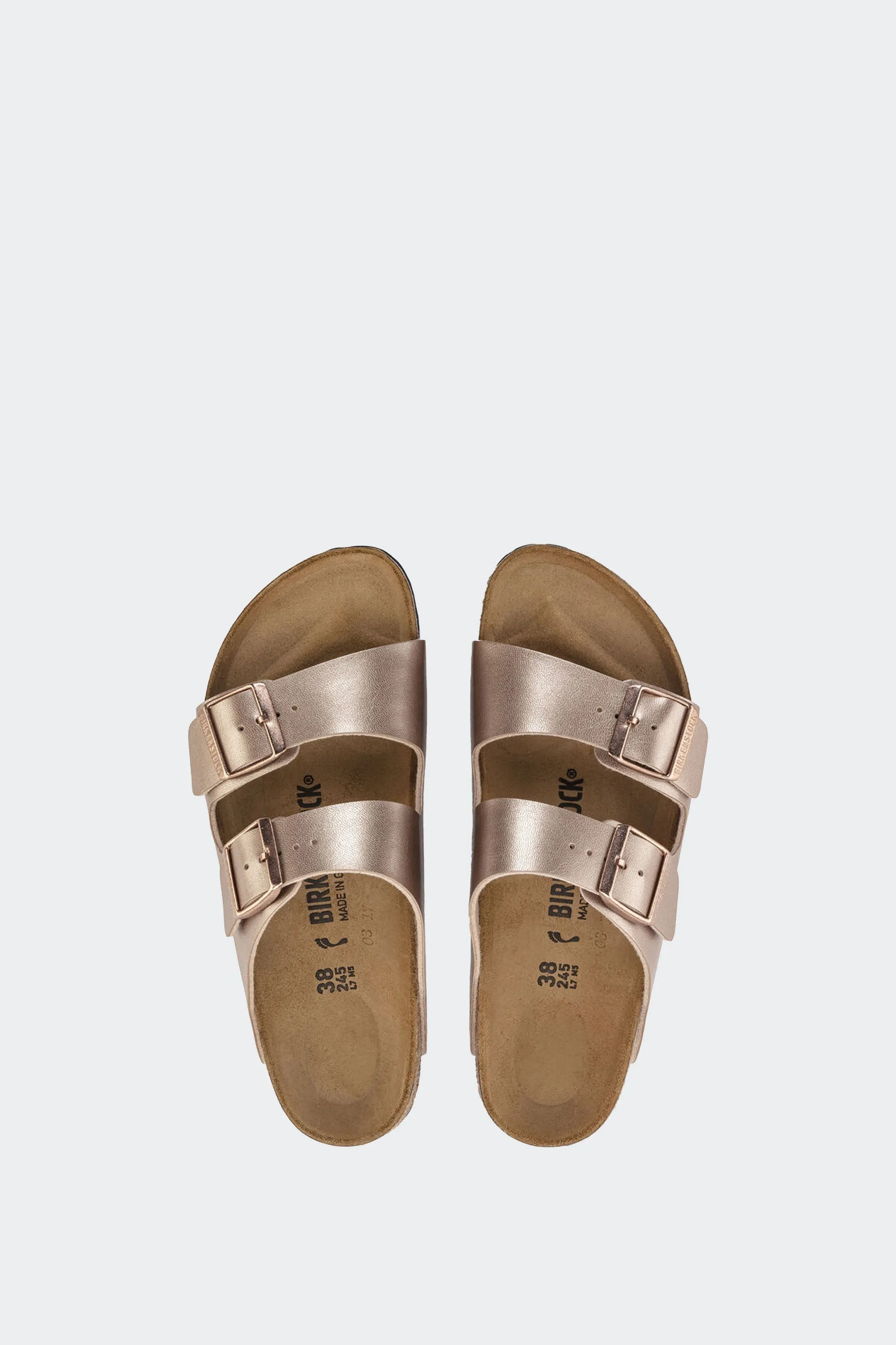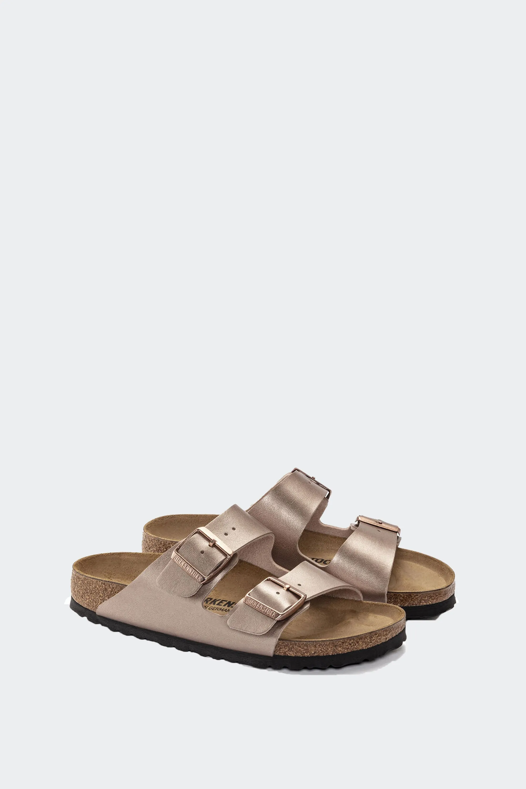 An icon of timeless design and legendary comfort, the Arizona sandal has been defining style since 1973. An electric gold finish transforms the classic look into your favorite be-seen pair, outfitted with tonal buckles to elevate the look. Complete with classic BIRKENSTOCK design elements, like a contoured cork-latex footbed for the ultimate in support.