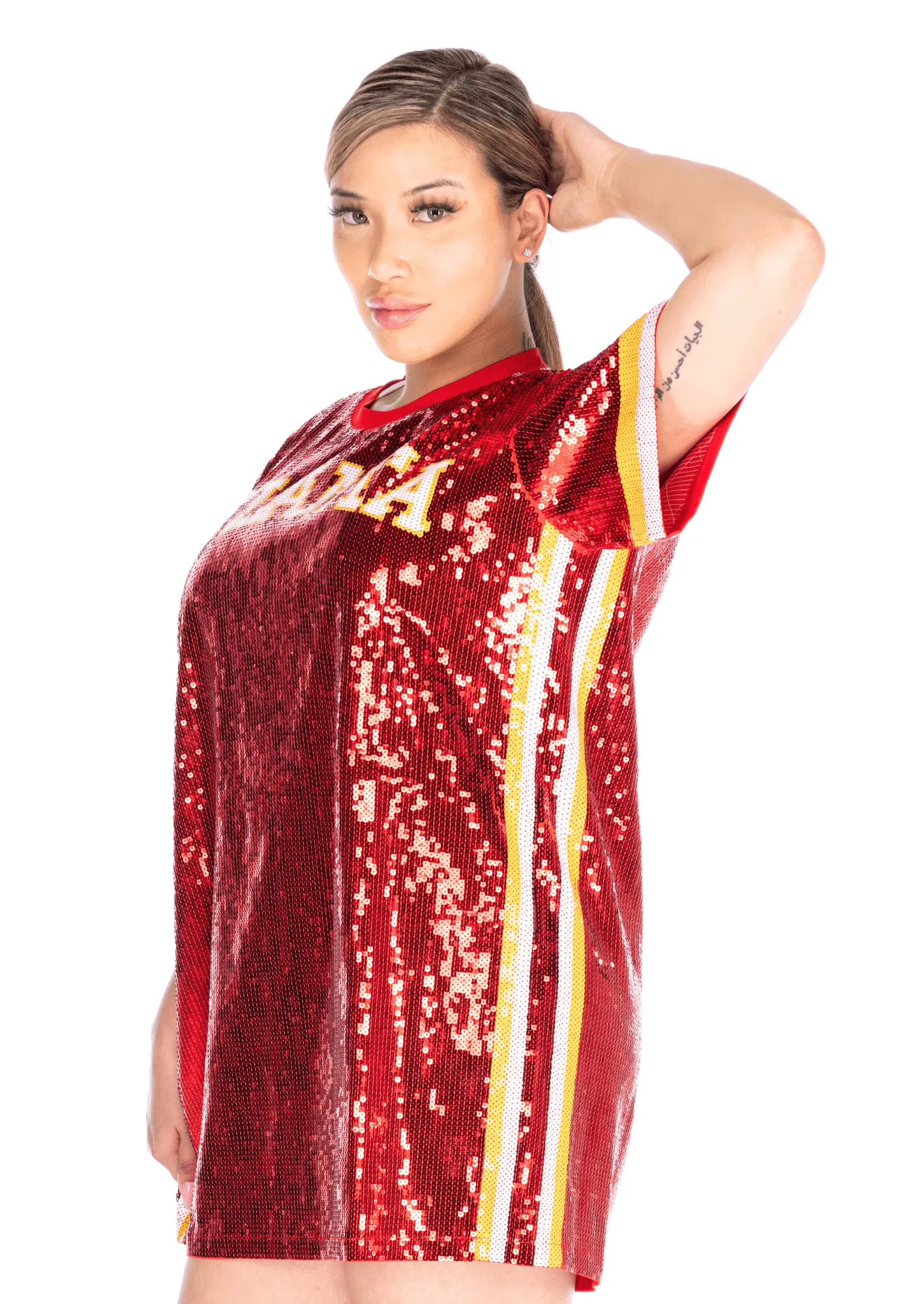 Don't miss out on our exclusive collection of sequin basketball jersey dresses specifically designed for women who love to celebrate their favorite sports teams in a glamorous way.