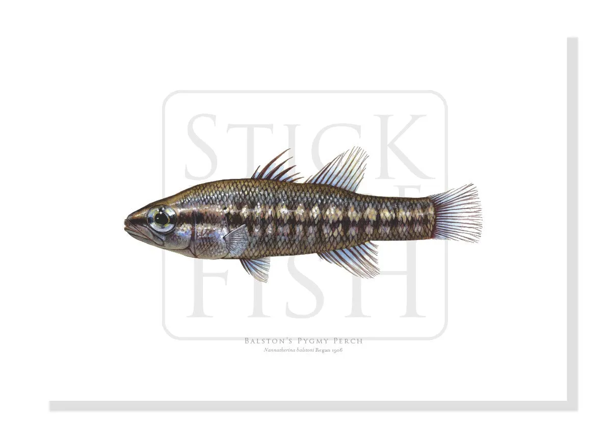 Venture into the freshwater realms with my meticulously crafted depiction of Balston's Pygmy Perch, Nannatherina balstoni. Known for its petite size and delicate features, this species represents the hidden gems that thrive in our freshwater ecosystems. With my extensive expertise as a distinguished fisheries biologist and celebrated natural history artist, I've captured the subtle beauty and intricate details of this unique fish. By adding this print to your collection, you not only embrace the allure of Balston's Pygmy Perch but also the commitment to understanding and celebrating the diverse wonders that freshwater habitats offer.