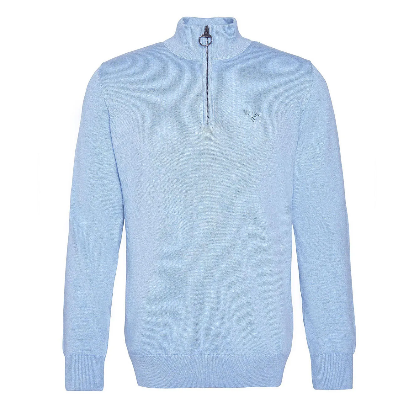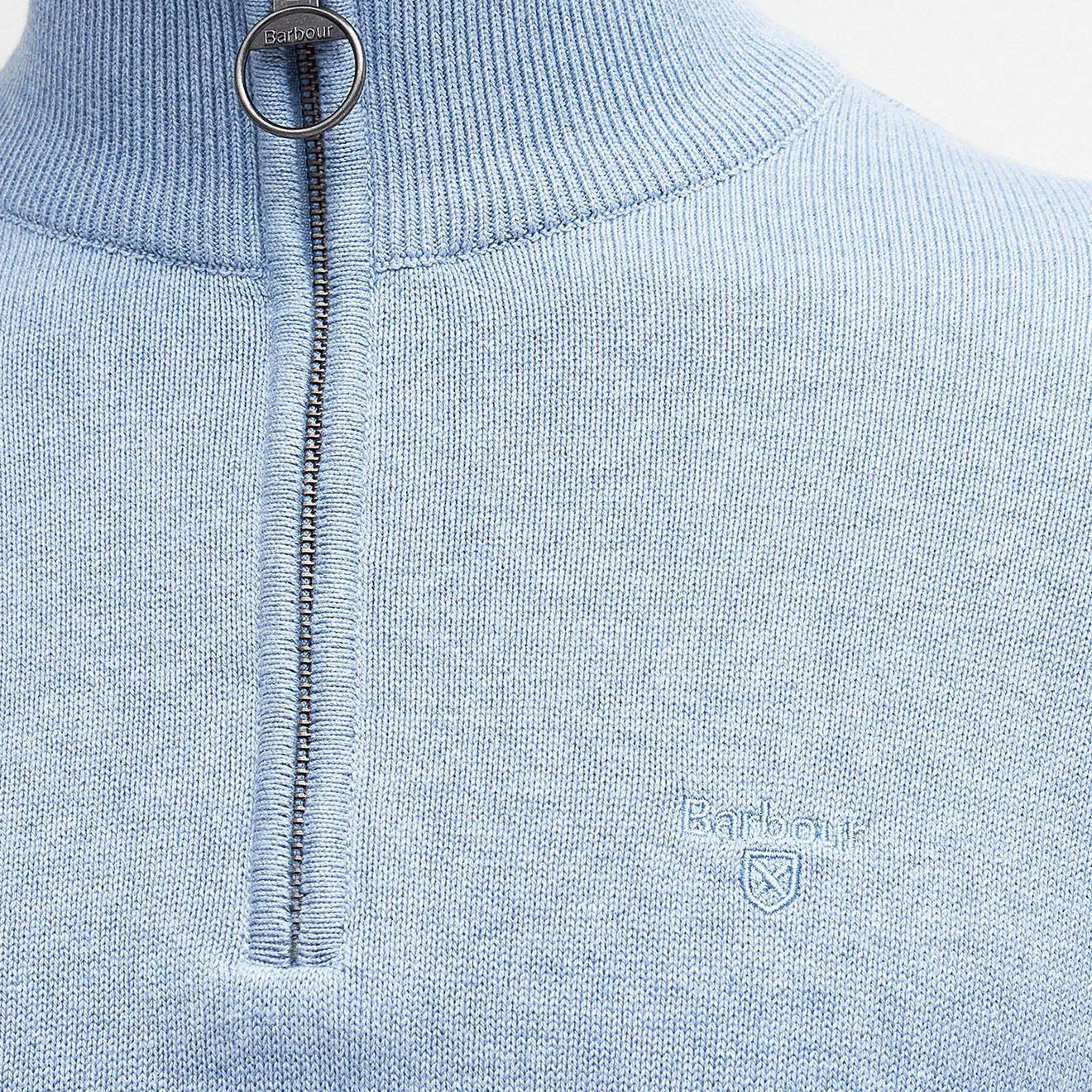 The Barbour Cotton Half Zip Jumper Dark in Chambray is a wardrobe essential. This half-zip jumper comes in a lightweight Cotton knit and the zip closure is trimmed with tartan to the inner facing and features Barbour's signature ring-puller detail, while a tonal embroidered logo to the chest completes the look.