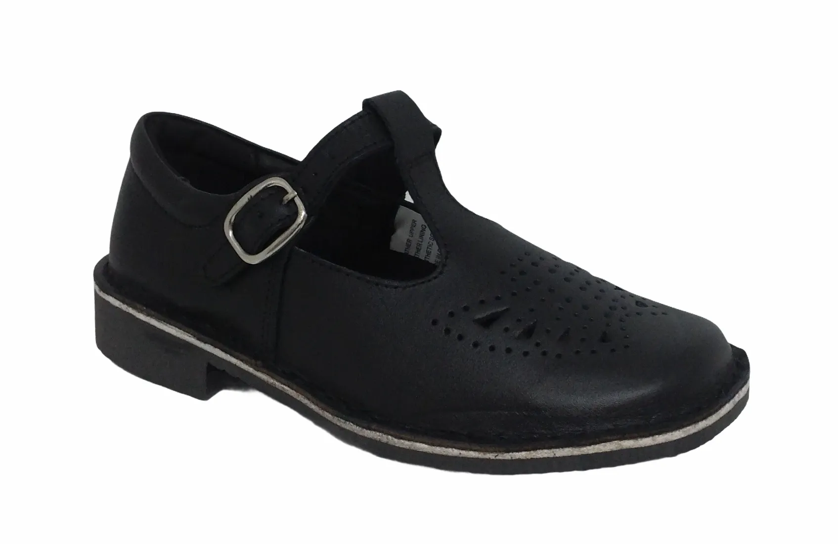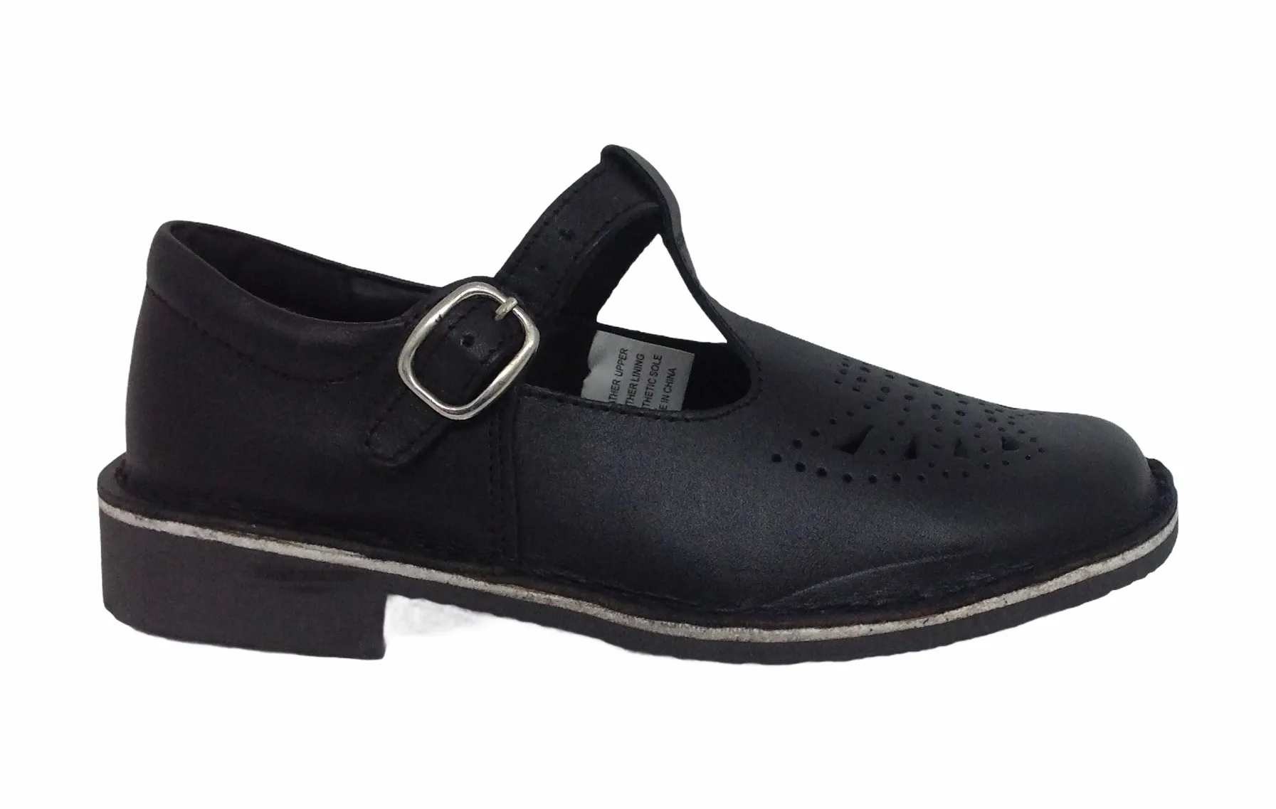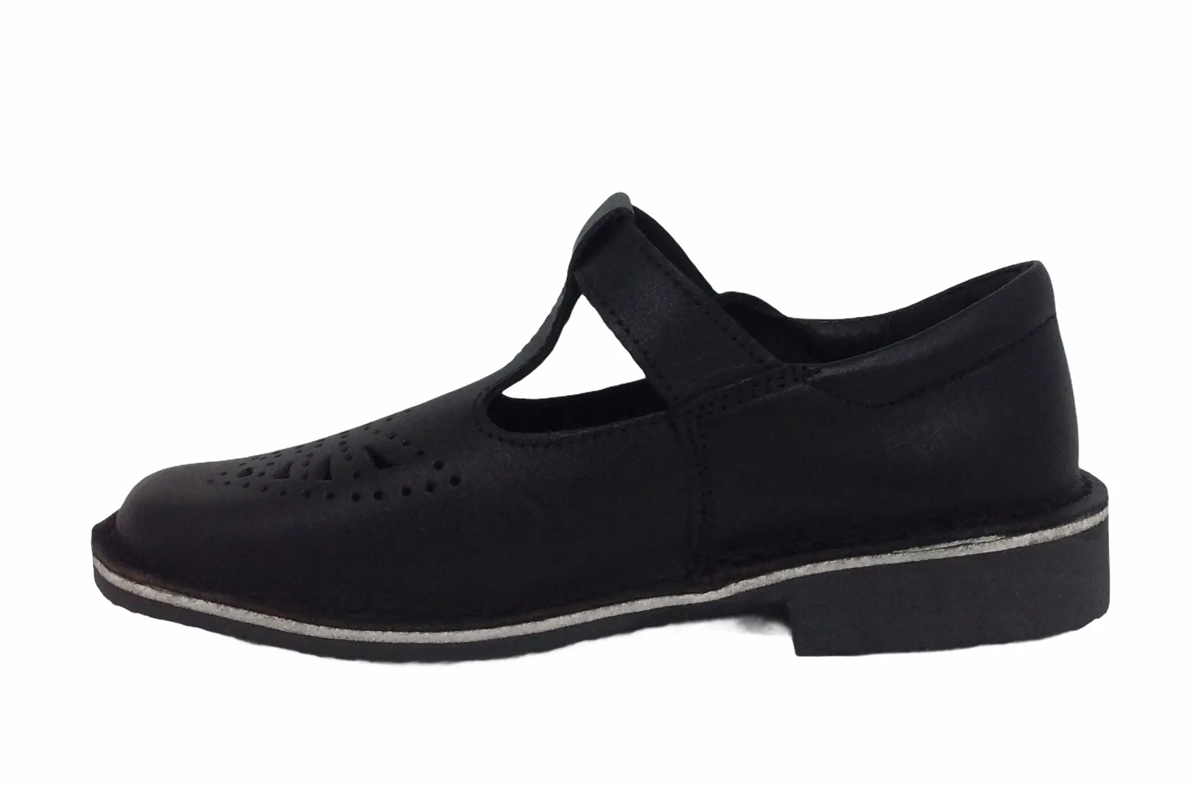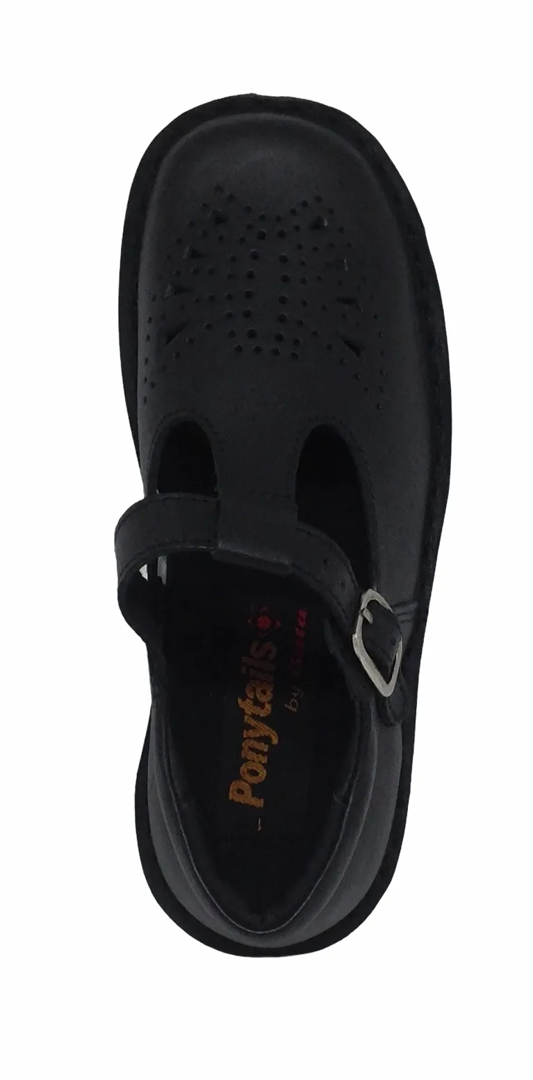 Bata Ponytails Tbar Cala School Shoe Matt Black