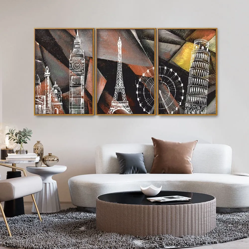Beautiful Canvas Abstract Floating Canvas Wall Painting Set of Three, This product is made with glossy finish and premium quality. If you're looking for a classy Painting for your home or office. Its classic design with a modern twist helps you keep an eye on the hour all the while adding panache to your decor. This Designer Wall Painting will add charm to any room in your home. This wall Painting can be a good gift for Living, Drawing & Dining Room, Outdoor, Gallery, Hotels, Bar, Lounge, Restaurants, Office, Reception, Kitchen Area, Balcony and Bathroom. Must be protected from sunlight, extreme temperature, dust and moisture to ensure long life. Final product colours may vary slightly from the display image due to the difference in printing resolution and digital resolution of various computer or mobile screen.