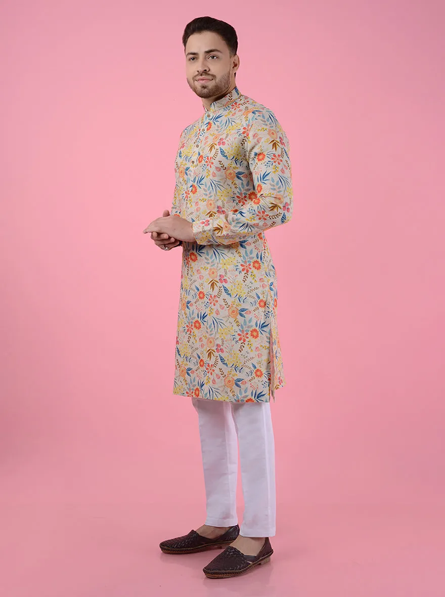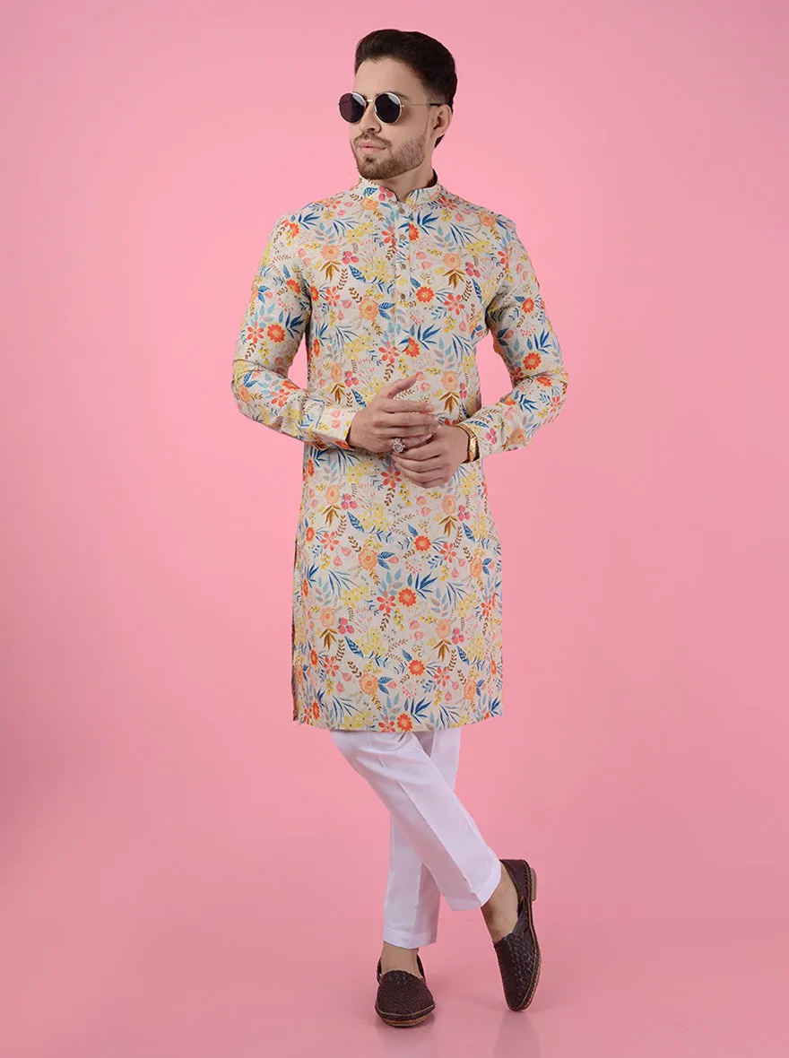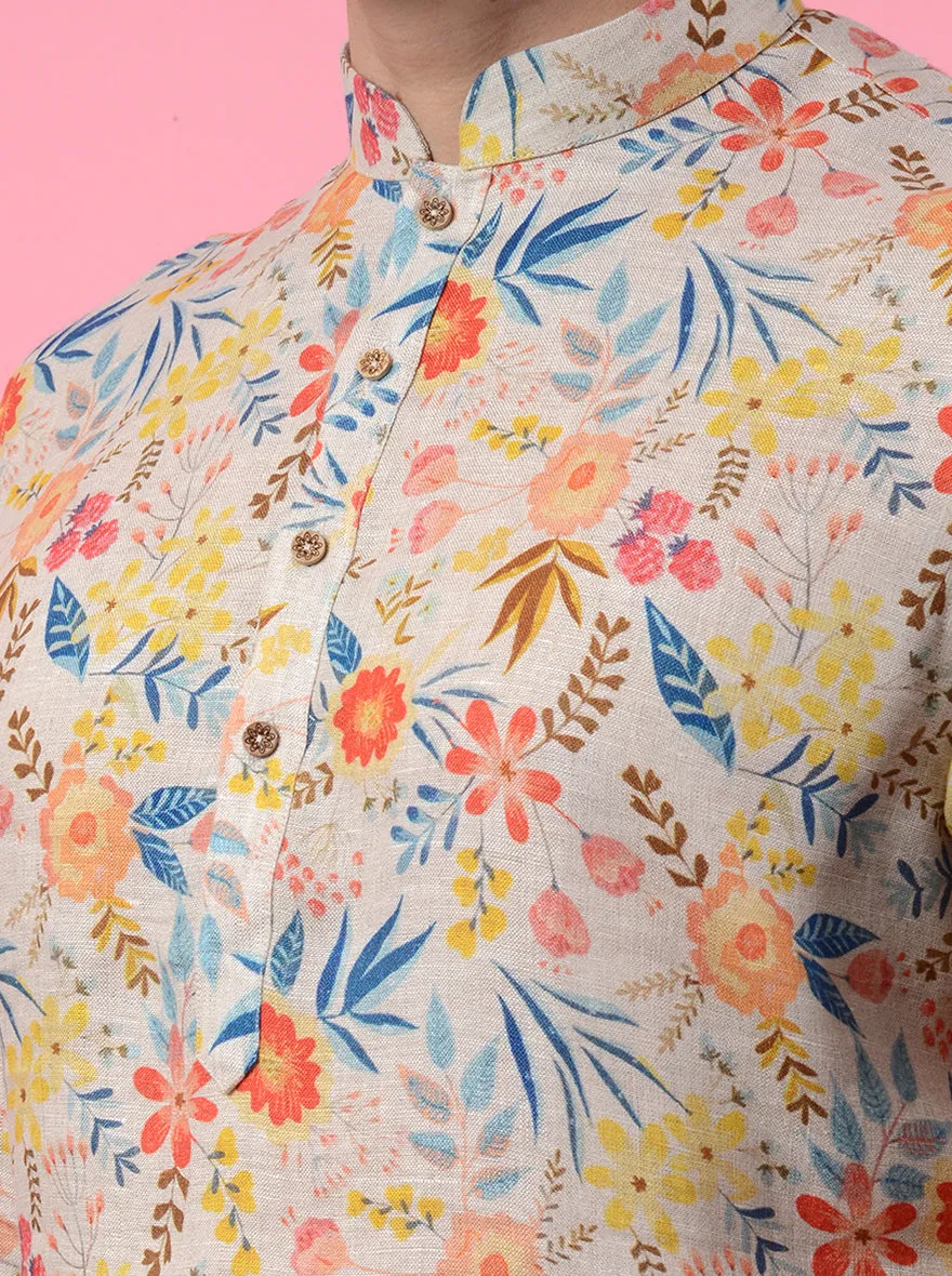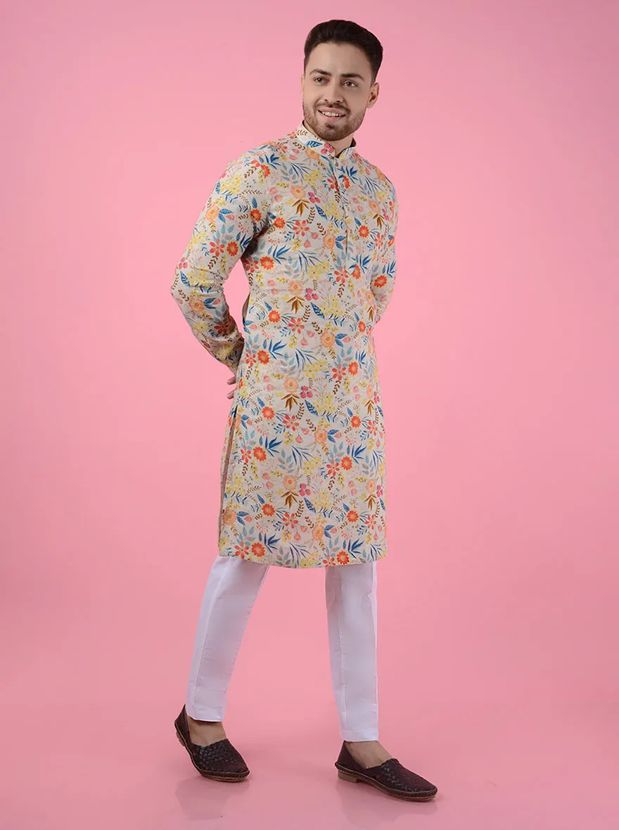 Details: Introducing TULA's Men's Printed Linen Kurta Pajama in Beige Multi, the epitome of traditional elegance and modern style. Our kurta pajama features a regular fit and classic straight cut design, perfect for festive occasions where you want to make a stylish statement. Crafted from top-quality linen fabric, this outfit ensures comfort and breathability all day long. The full sleeves and Mandarin collar add a touch of sophistication to the overall look. With intricate embroidery details, this printed kurta pajama allows your unique fashion sense to shine brightly. Upgrade your style and boost your confidence with TULA's exclusive collection, because we understand that what you wear truly matters. Choose TULA for an option that exudes sophistication and ensures you make a mark at every event you attend.
