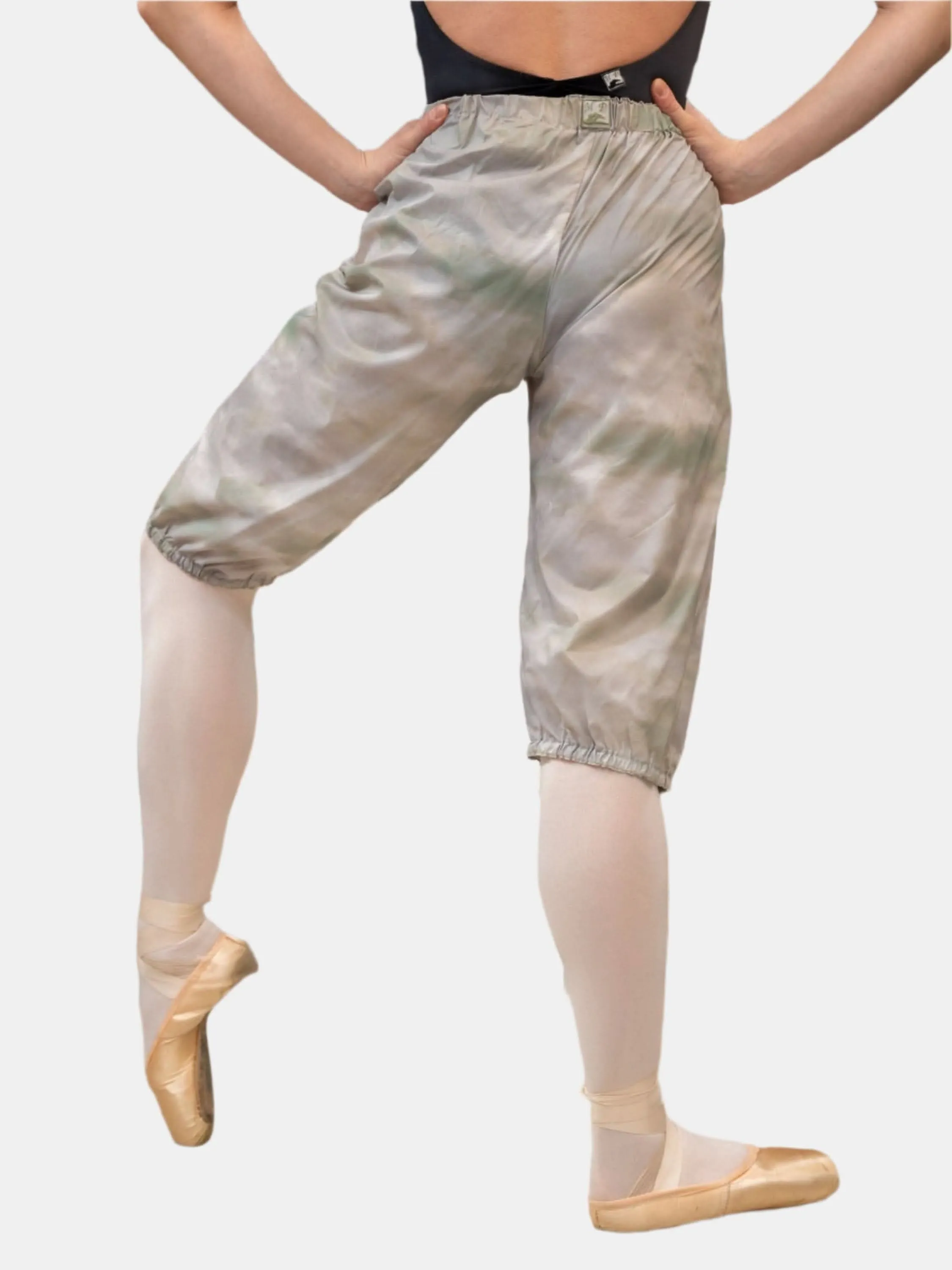 The MP5004 beige patterned warm-up dance trash bag pants are designed to provide optimal warmth to your leg muscles during or between dance classes or rehearsals, ensuring comfortable movement.