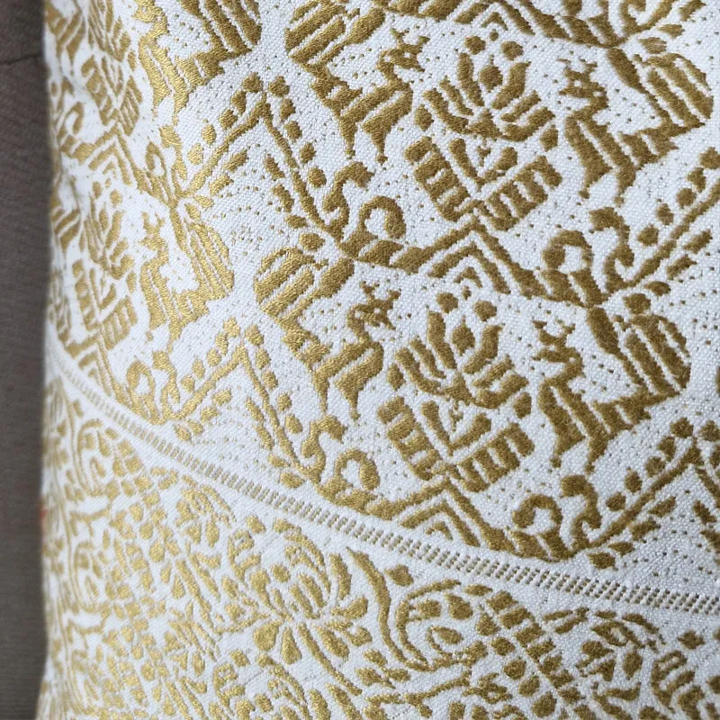 The Pillow Cover is lined with cotton lining and quality YKK Zipper has been used. Cotton satin cord piping enhances the structure and the beige cotton back adds definition to the cushion cover.