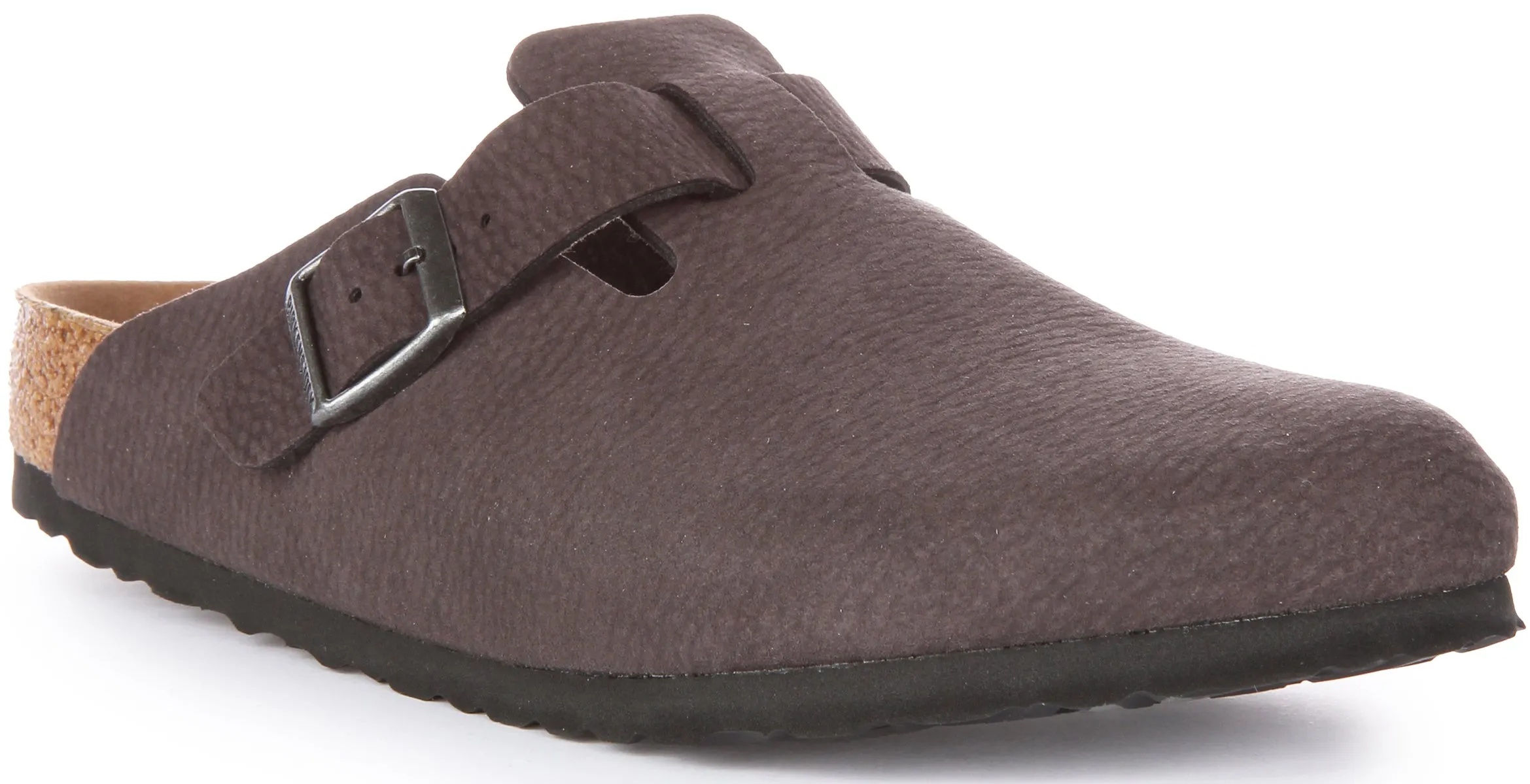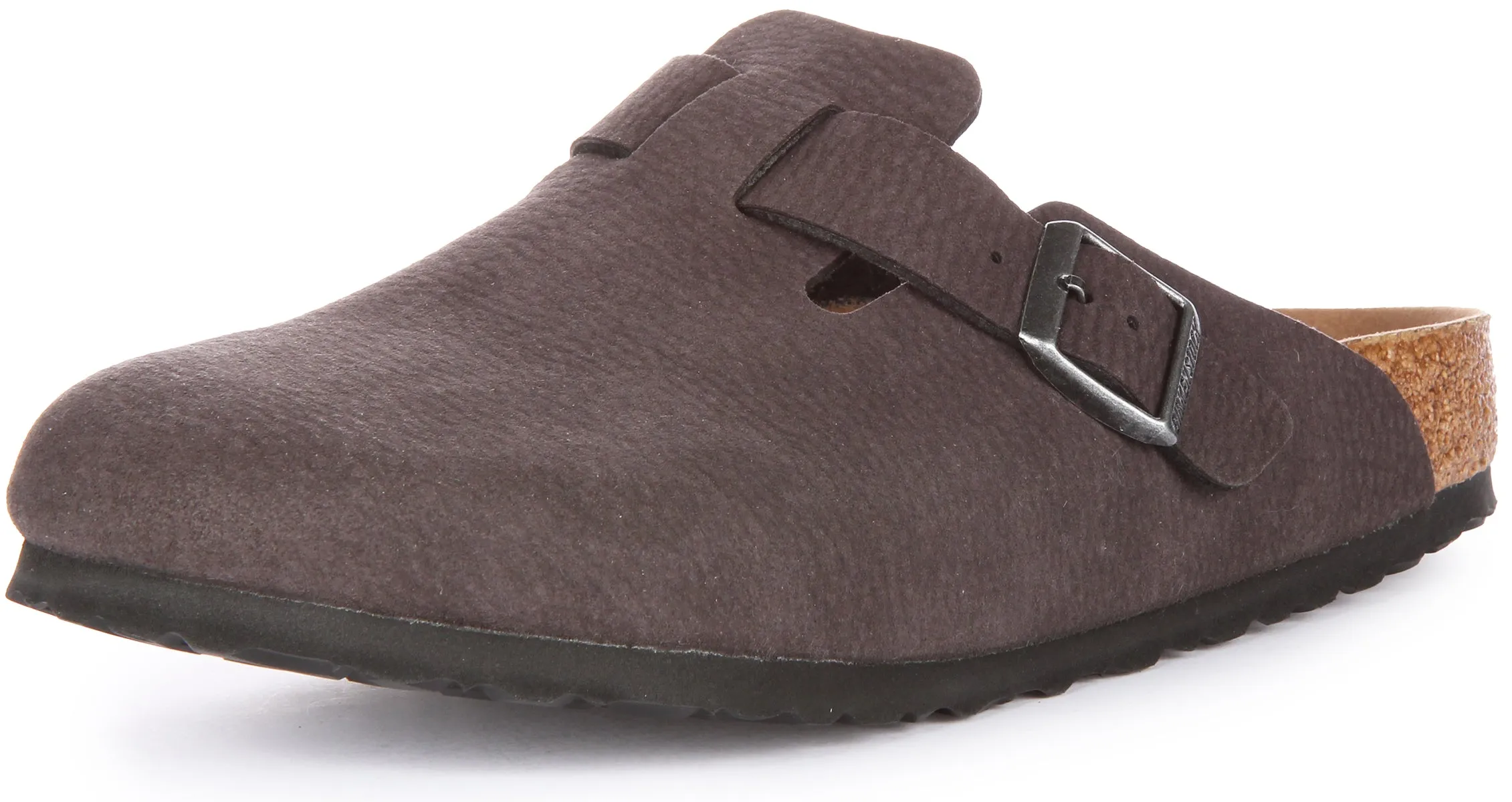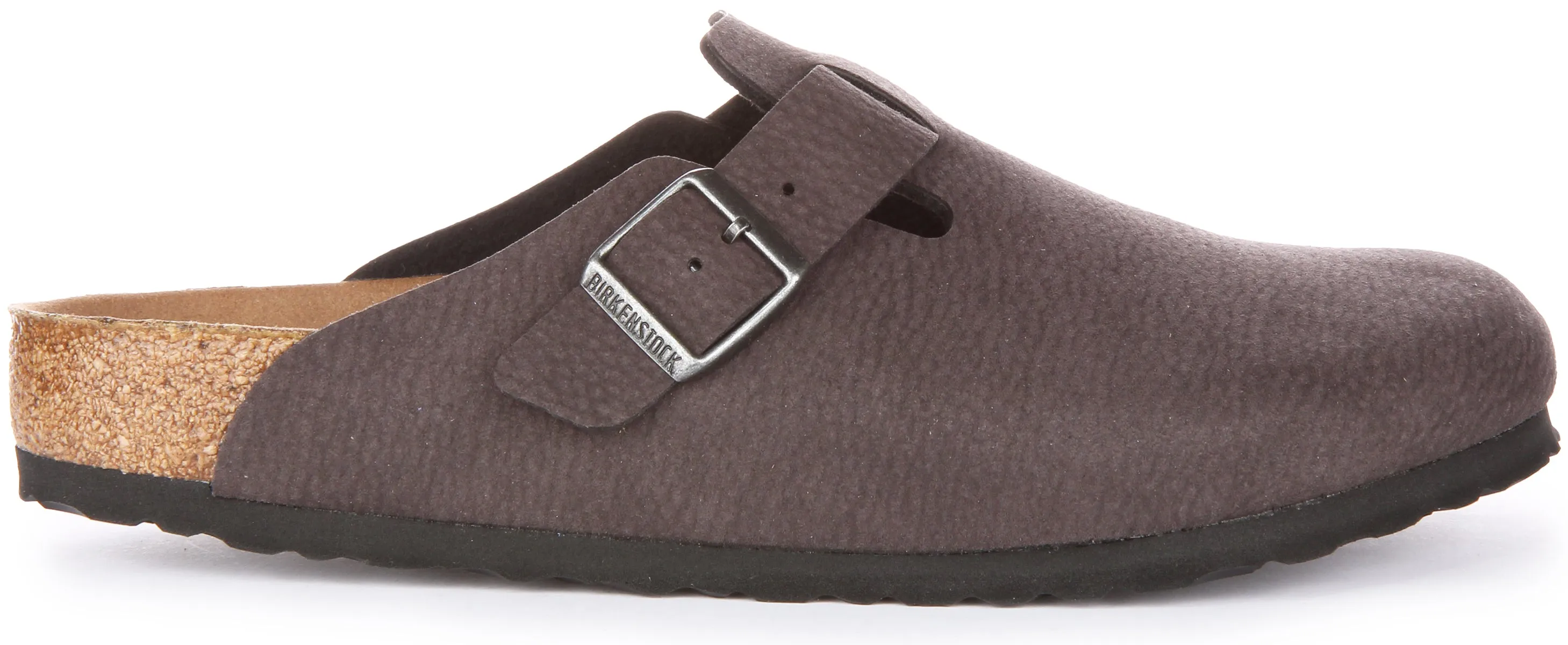 The Birkenstock Boston is a veritable classic that can be worn all year round. With its sophisticated, individually adjustable design, the Boston has long enjoyed legendary status. The upper is made of skin-friendly synthetic material microfibre and has an anatomically shaped cork/latex footbed, microfibre lining and EVA sole. It features a strap with an individually adjustable metal pin buckle.