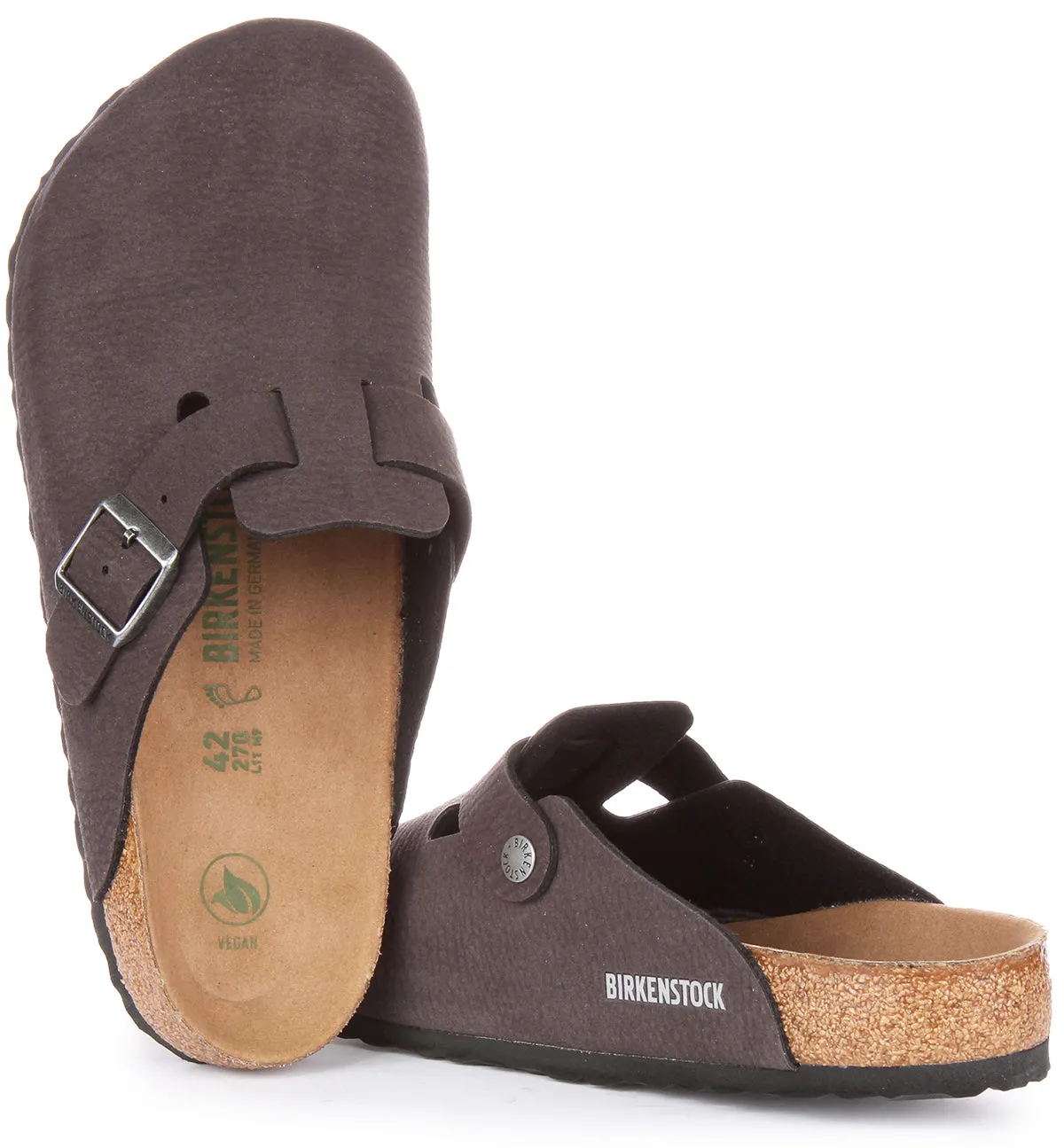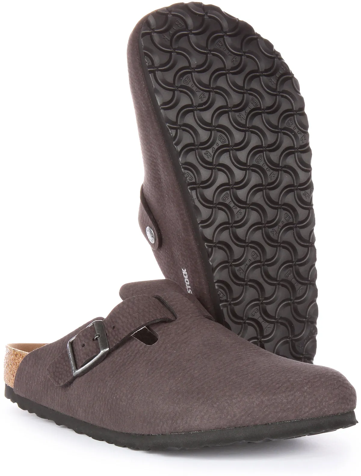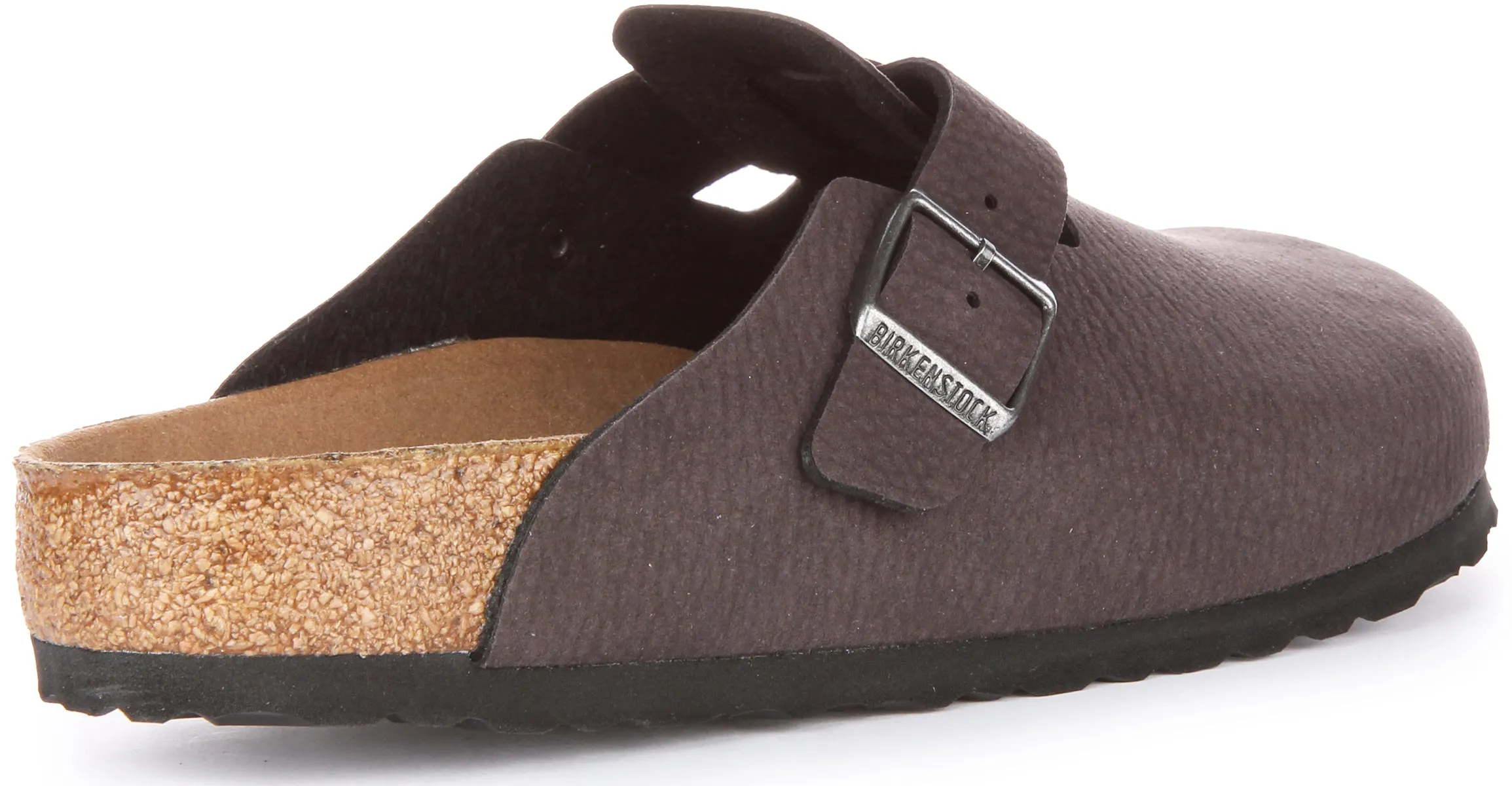 The Birkenstock Boston is a veritable classic that can be worn all year round. With its sophisticated, individually adjustable design, the Boston has long enjoyed legendary status. The upper is made of skin-friendly synthetic material microfibre and has an anatomically shaped cork/latex footbed, microfibre lining and EVA sole. It features a strap with an individually adjustable metal pin buckle.