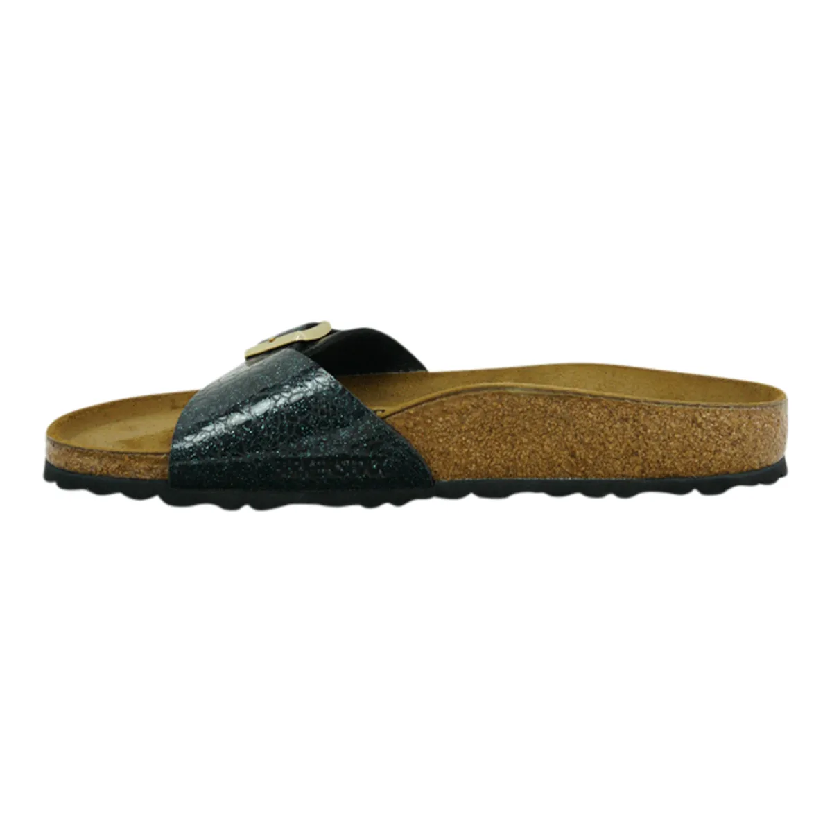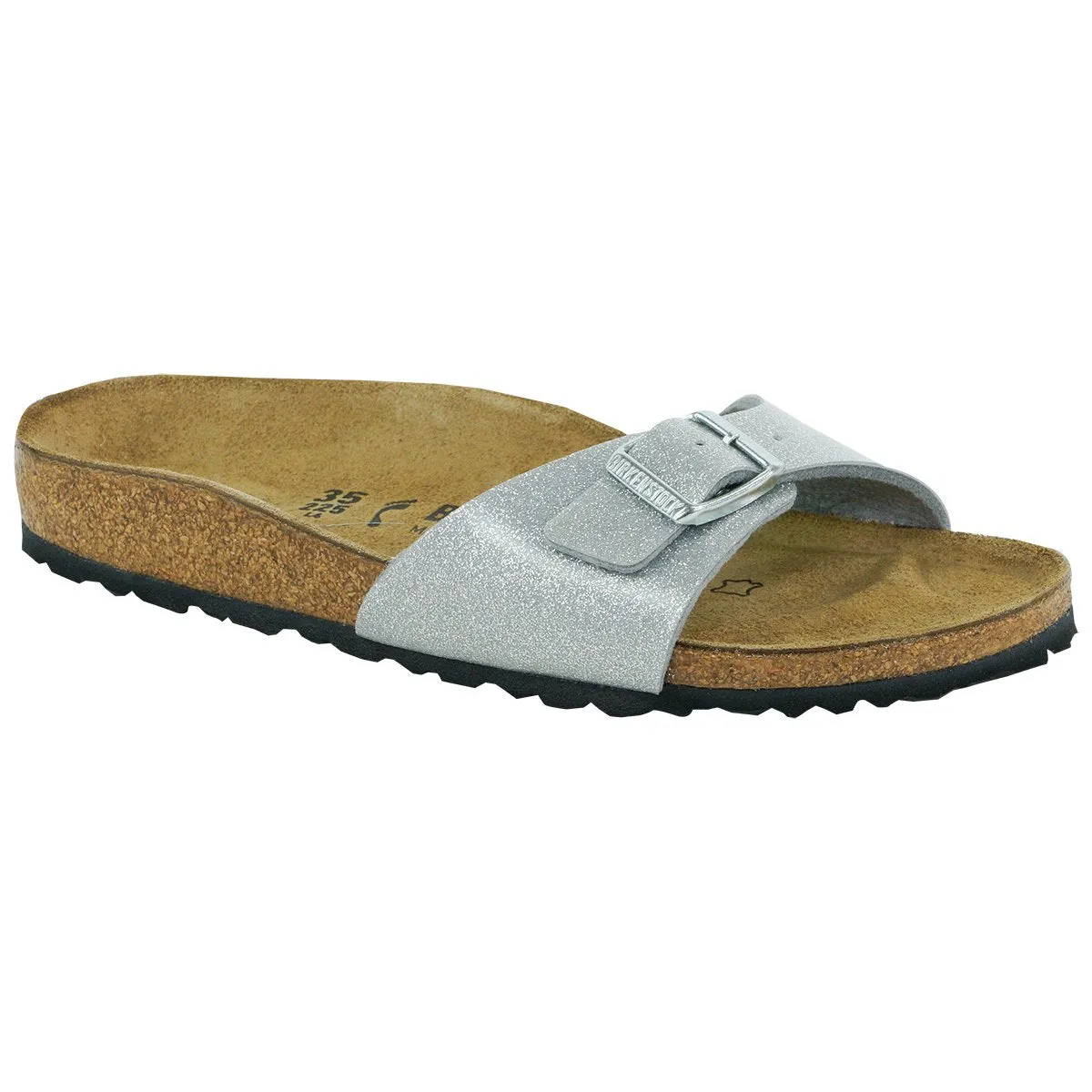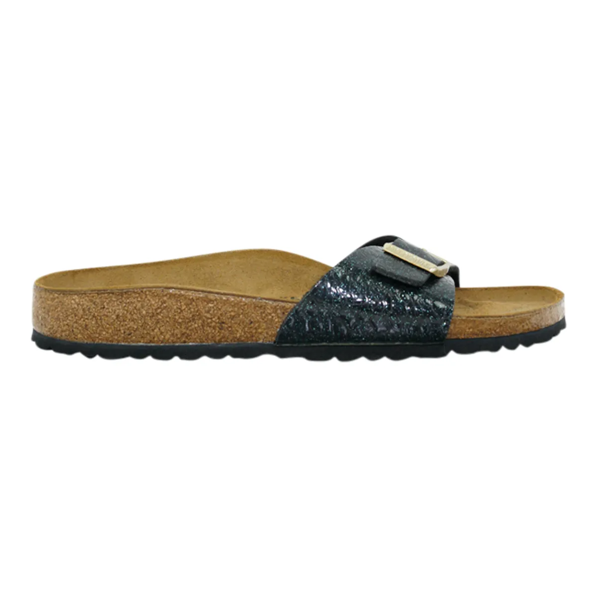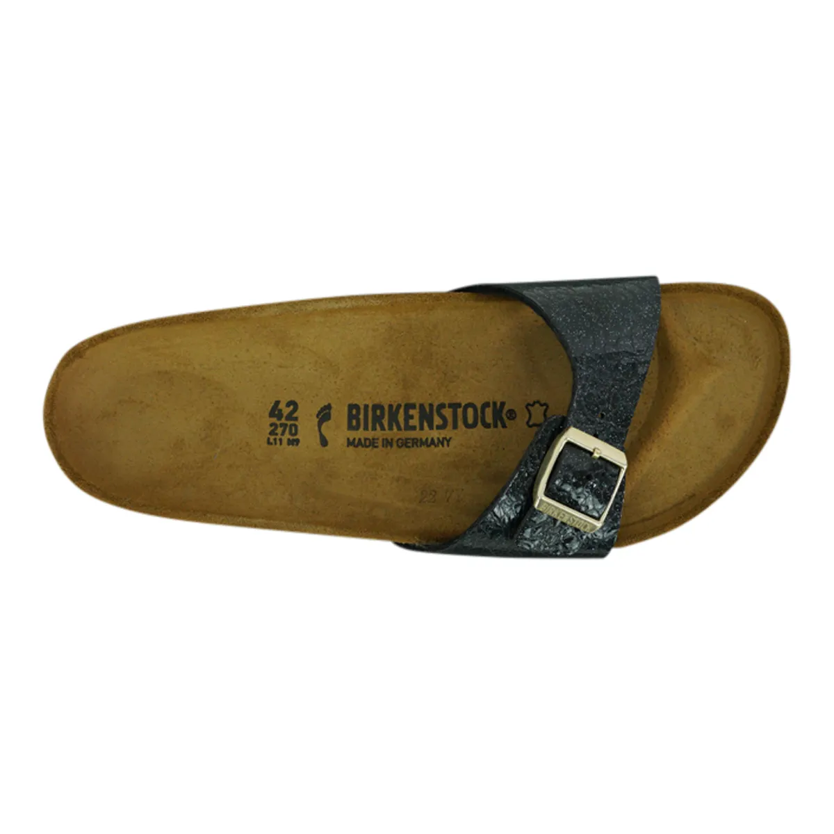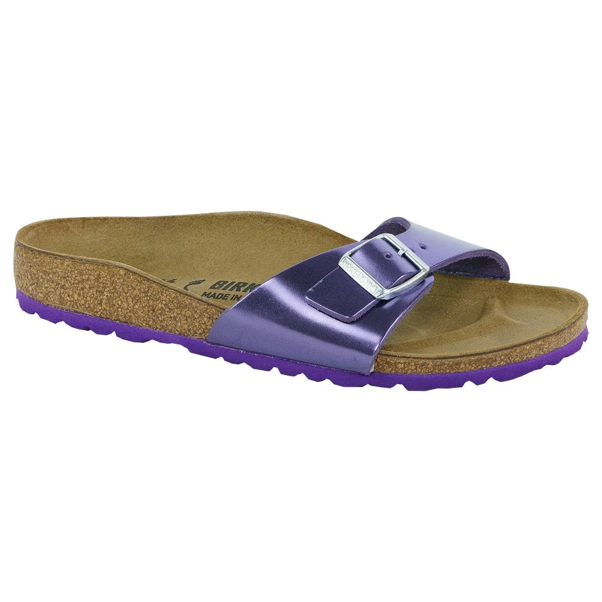 The BIRKENSTOCK Madrid, a classic model that was first launched as a “gymnastics sandal,” has grown to become an essential fashion item. In their shimmering design, these sandals exude elegance with a touch of extravagance. Available in Birko-Flor, EVA, Natural and Oiled Leather upper. Size N = Narrow. For reference a Birkenstock Size 40 is Size 9 Women or Size 7 Men.