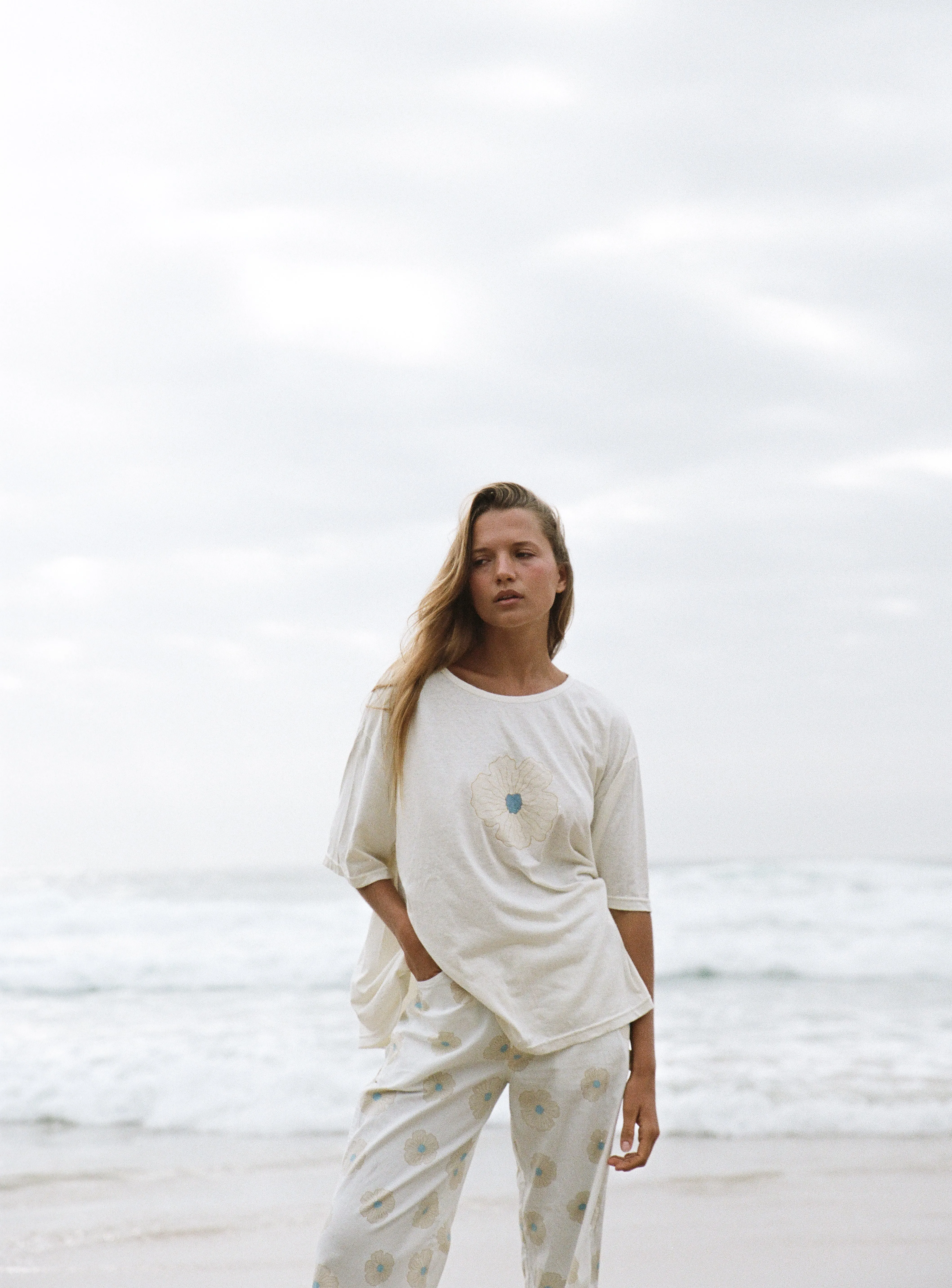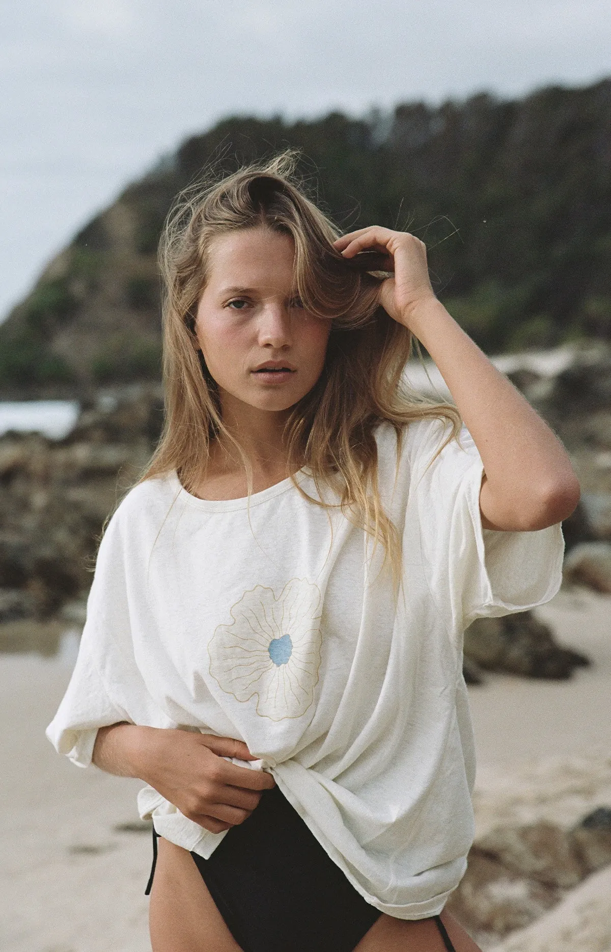The Blossom Hemp Tee is the perfect oversized fit tee made from soft hemp fabric, featuring our hand drawn in-house Blossom print.