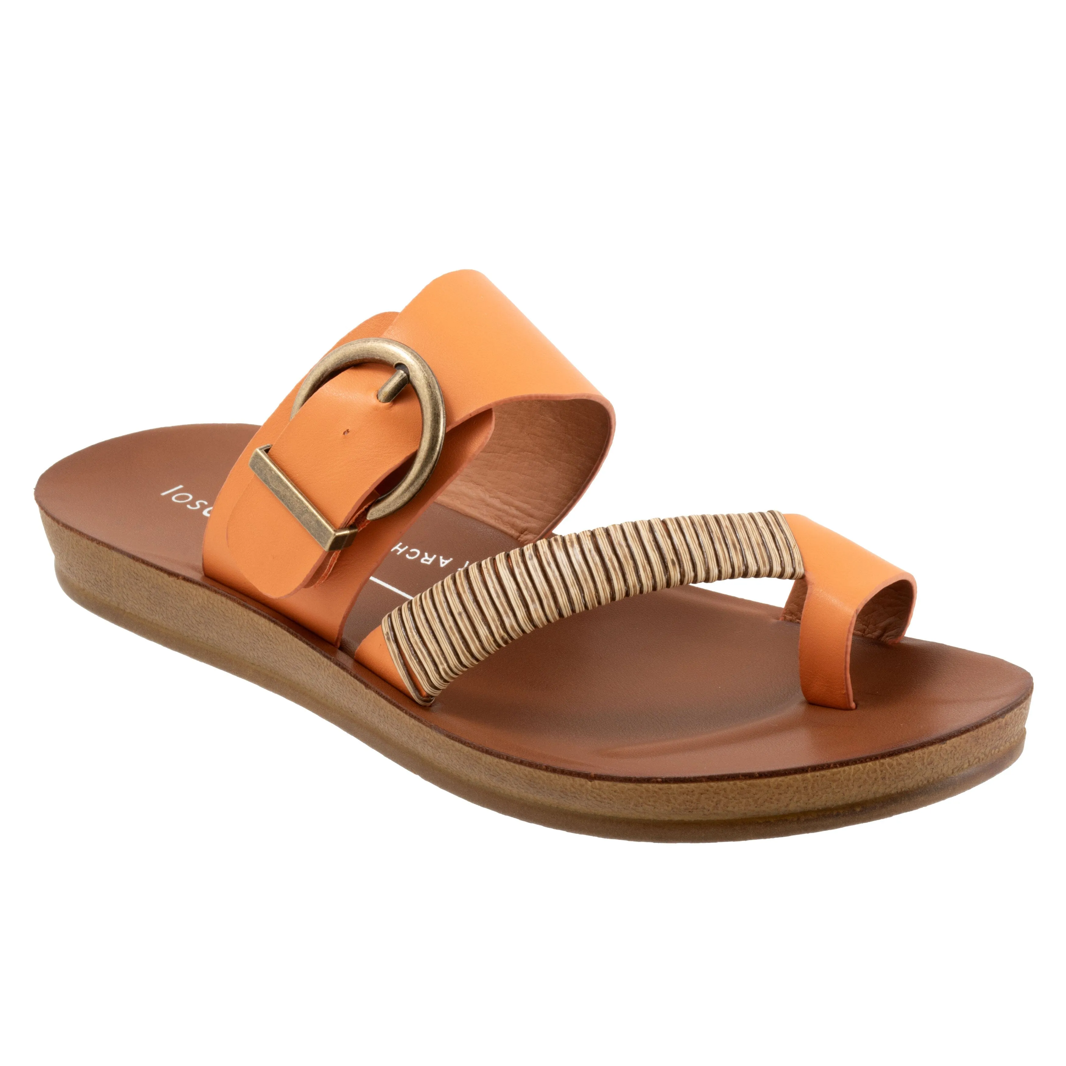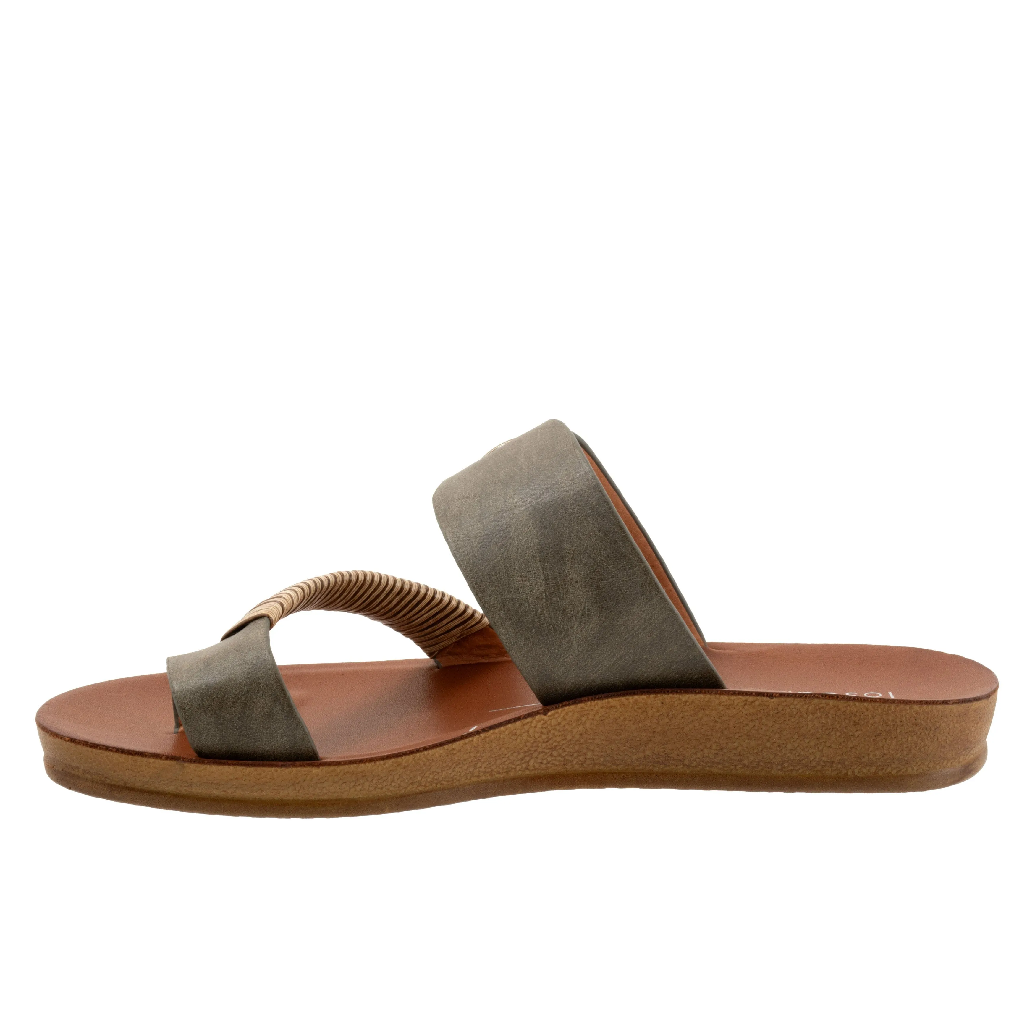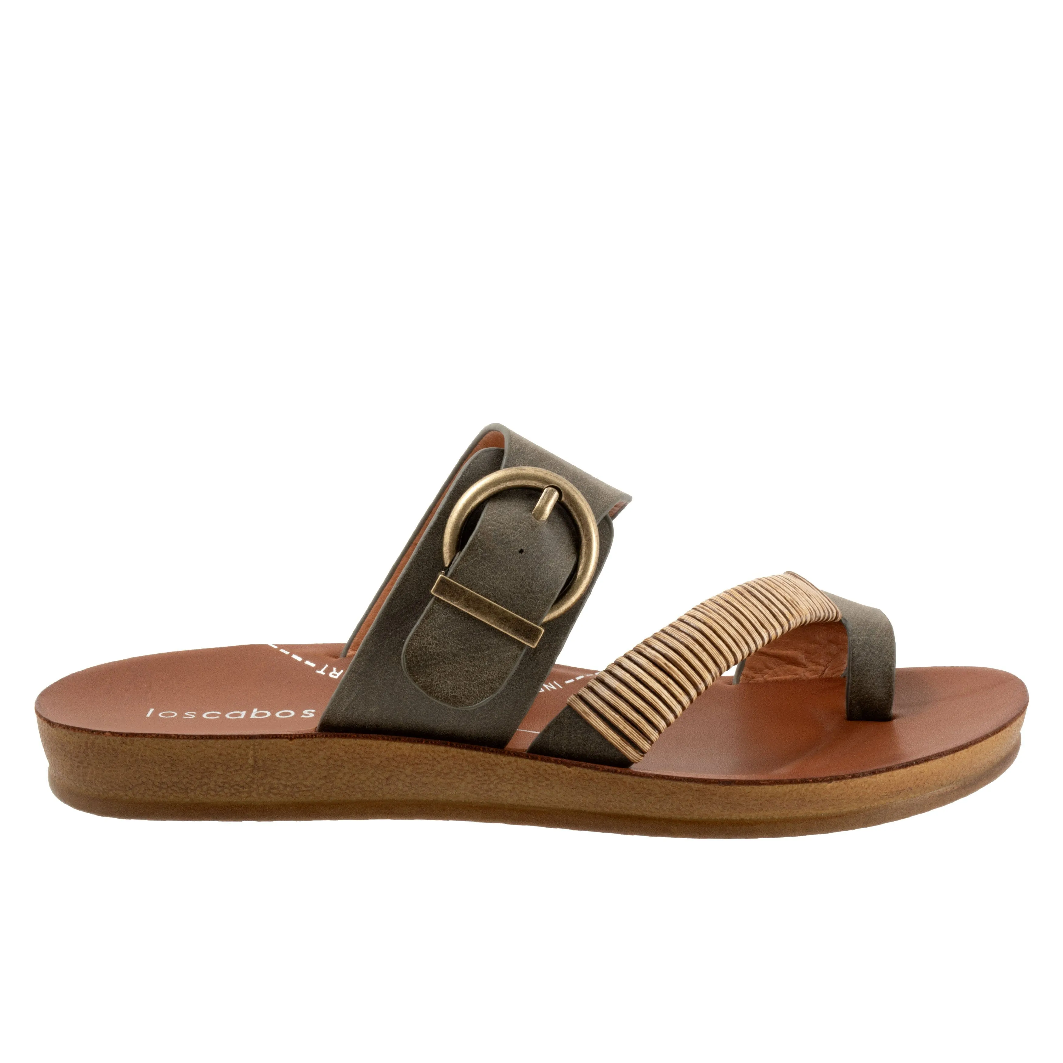 Los Cabos by Bueno captures the spirit of fun in the sun with their Bria sandal. The ease of a slip-on is given a touch of natural beauty with their woven bamboo wrap gracing the toe strap, while the antique round buckle on the back strap adds a treasure box accent. Ideal for resort escapes, beach walks or just a shoe to slip on when you need to rush out the house these sandals add a touch of natural beauty to any outfit.