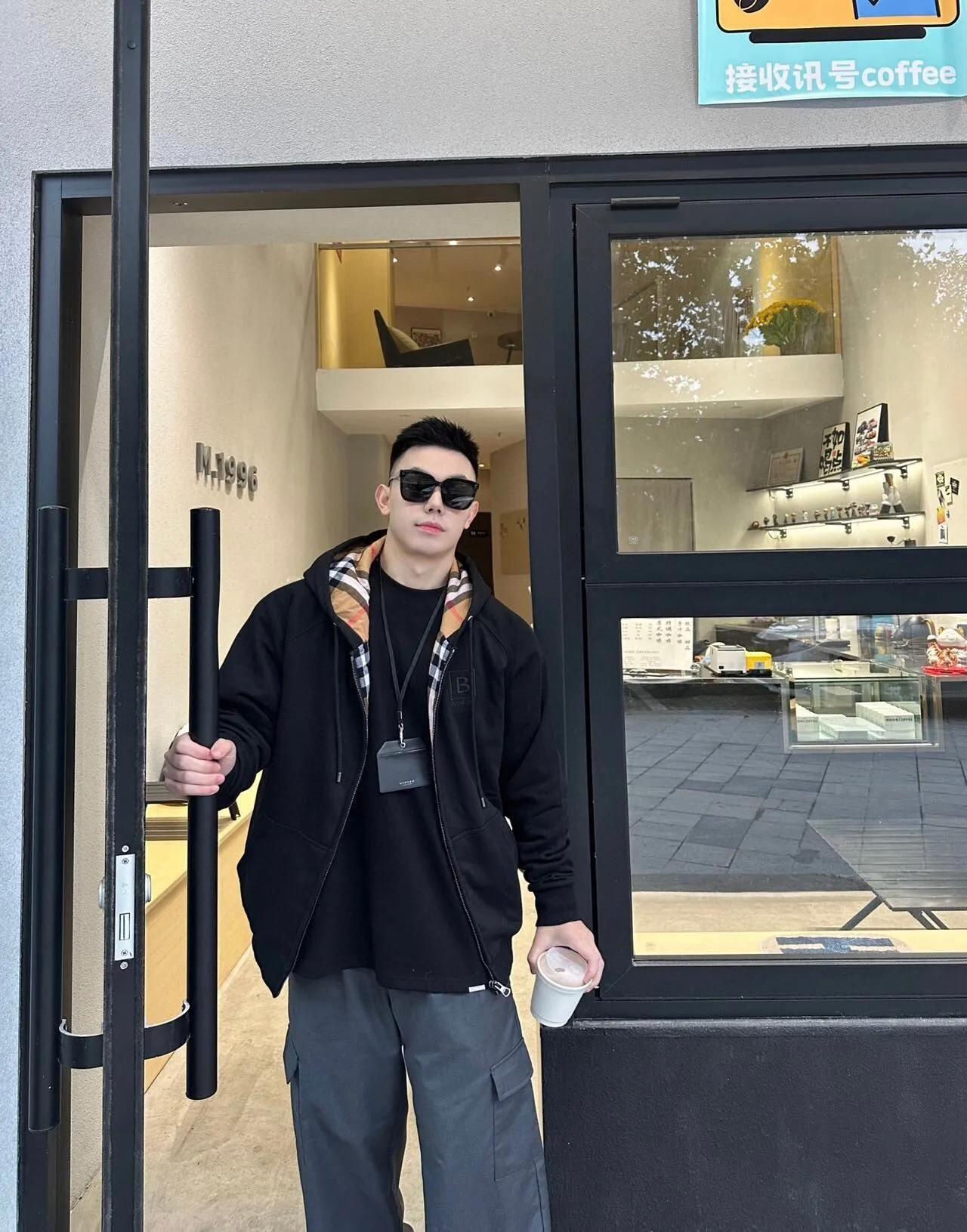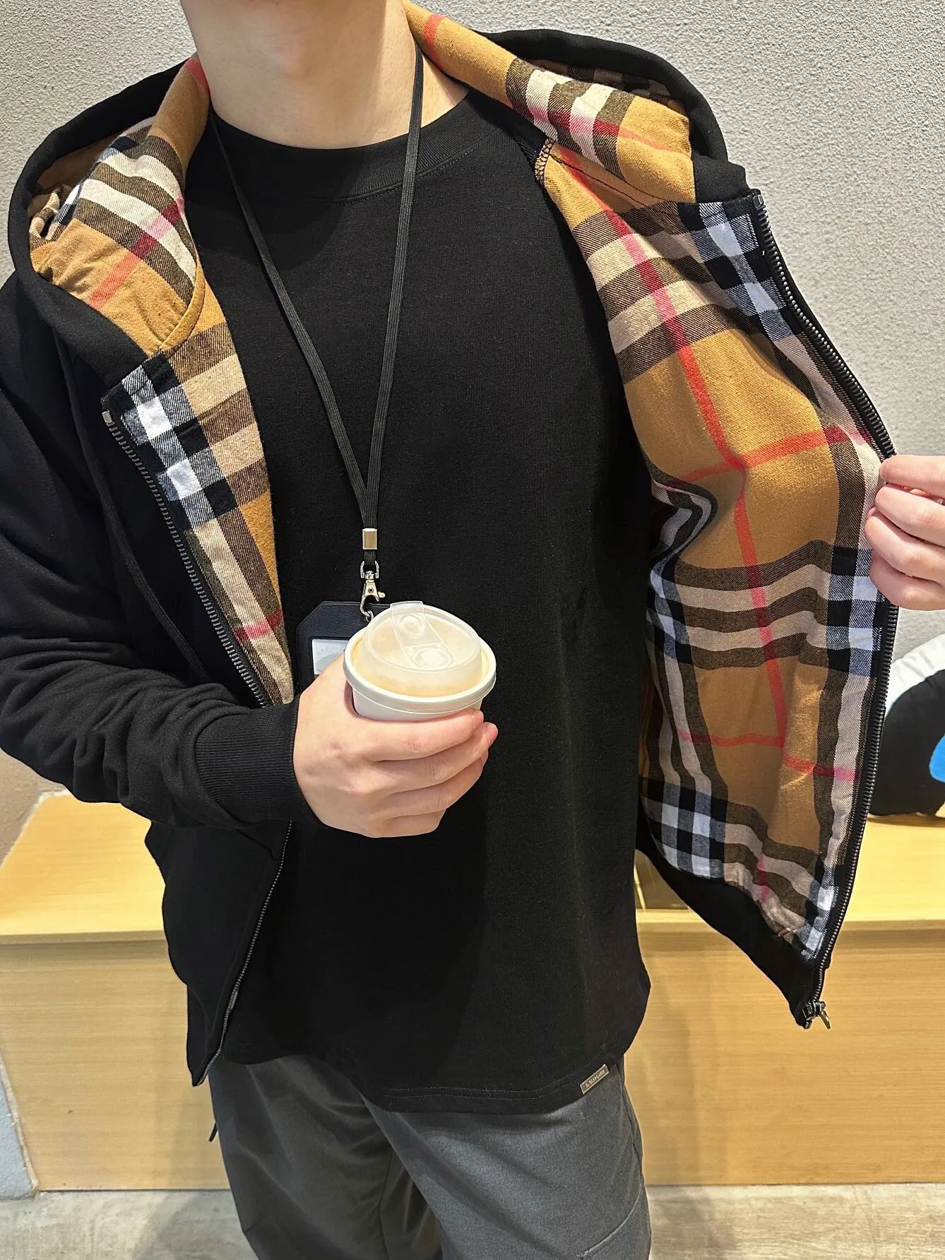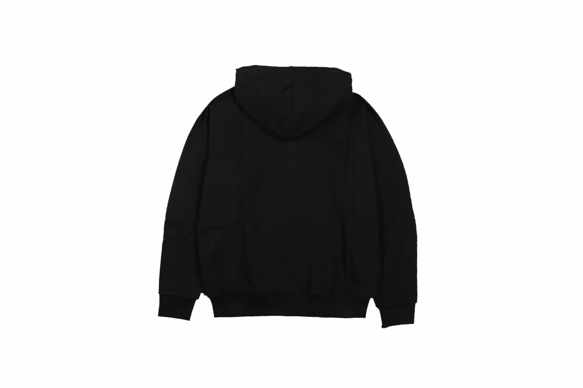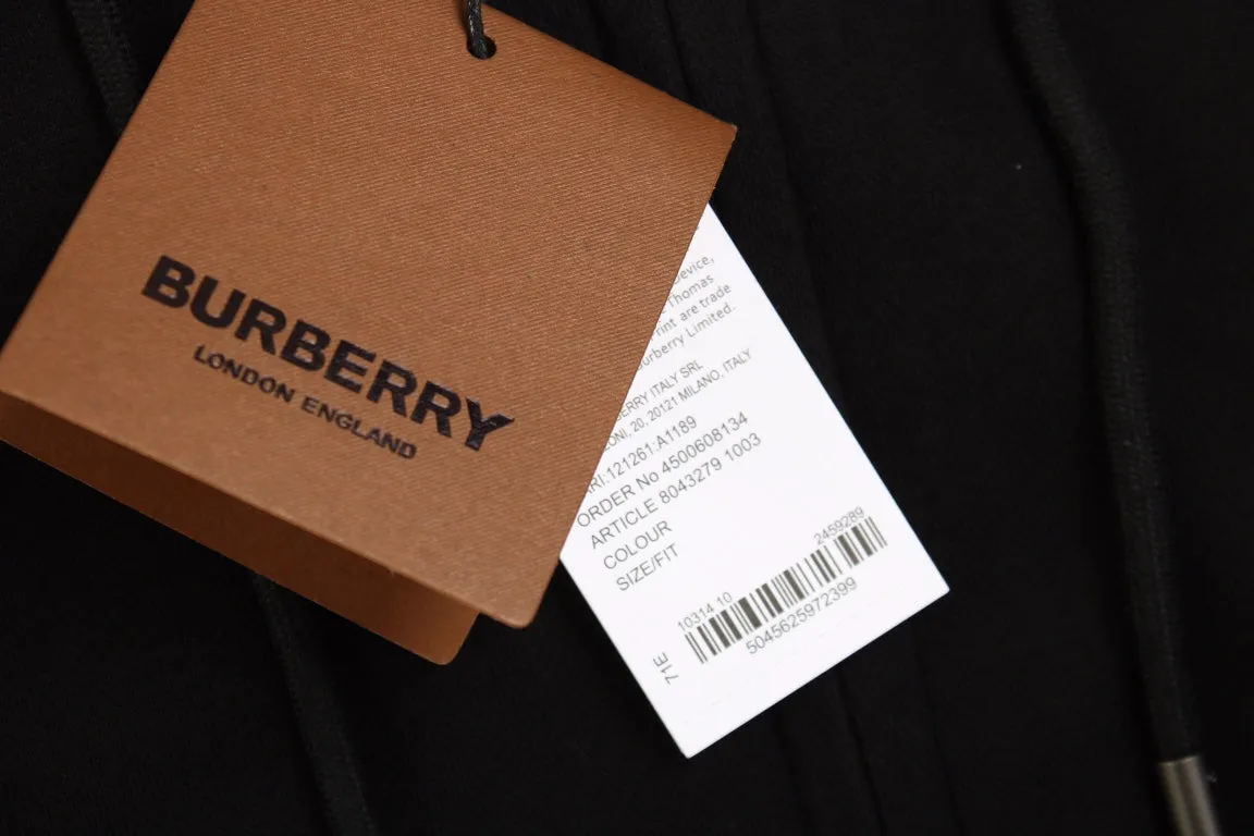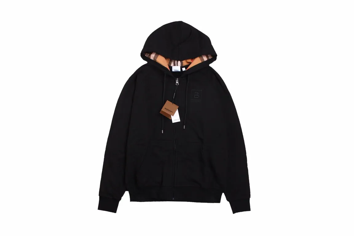 This black Burberry zip-up hoodie features a subtle embroidered 'B' logo on the chest and the classic Burberry check pattern on the inner hood. Made from high-quality materials, it provides a stylish and comfortable fit, perfect for layering in cooler weather