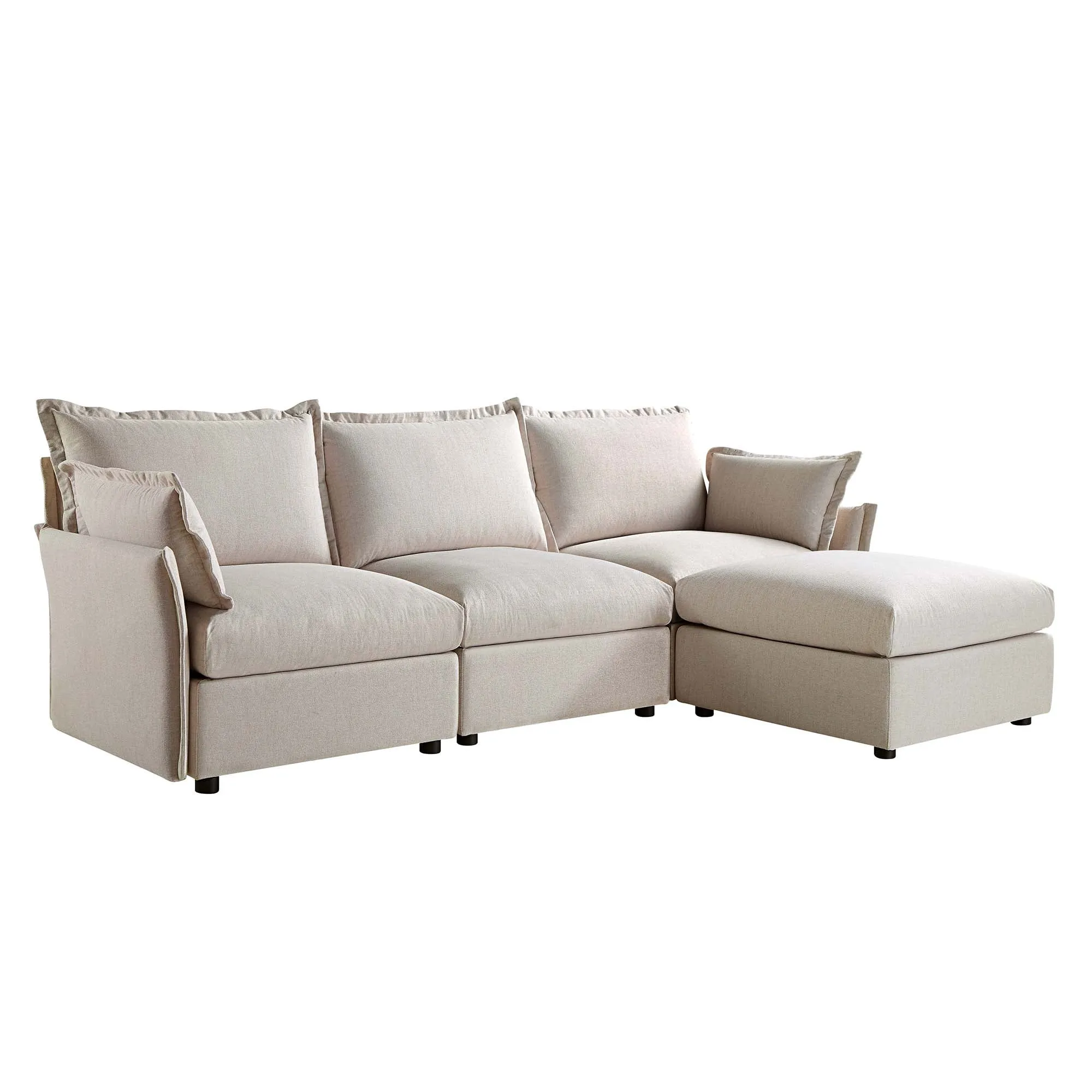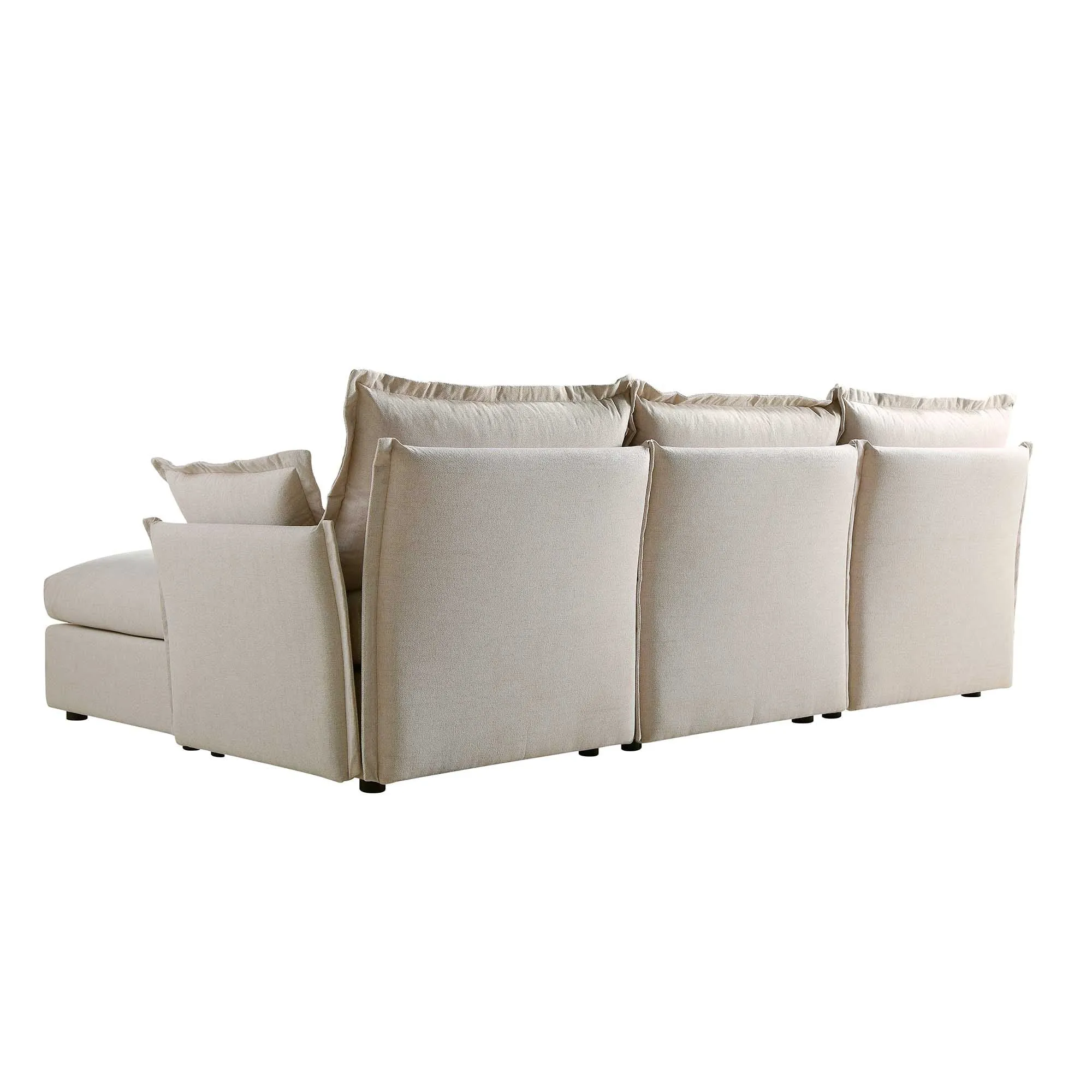 Byron Pillow Edge Beige Fabric Modular Sofa, 3-Seater Chaise
