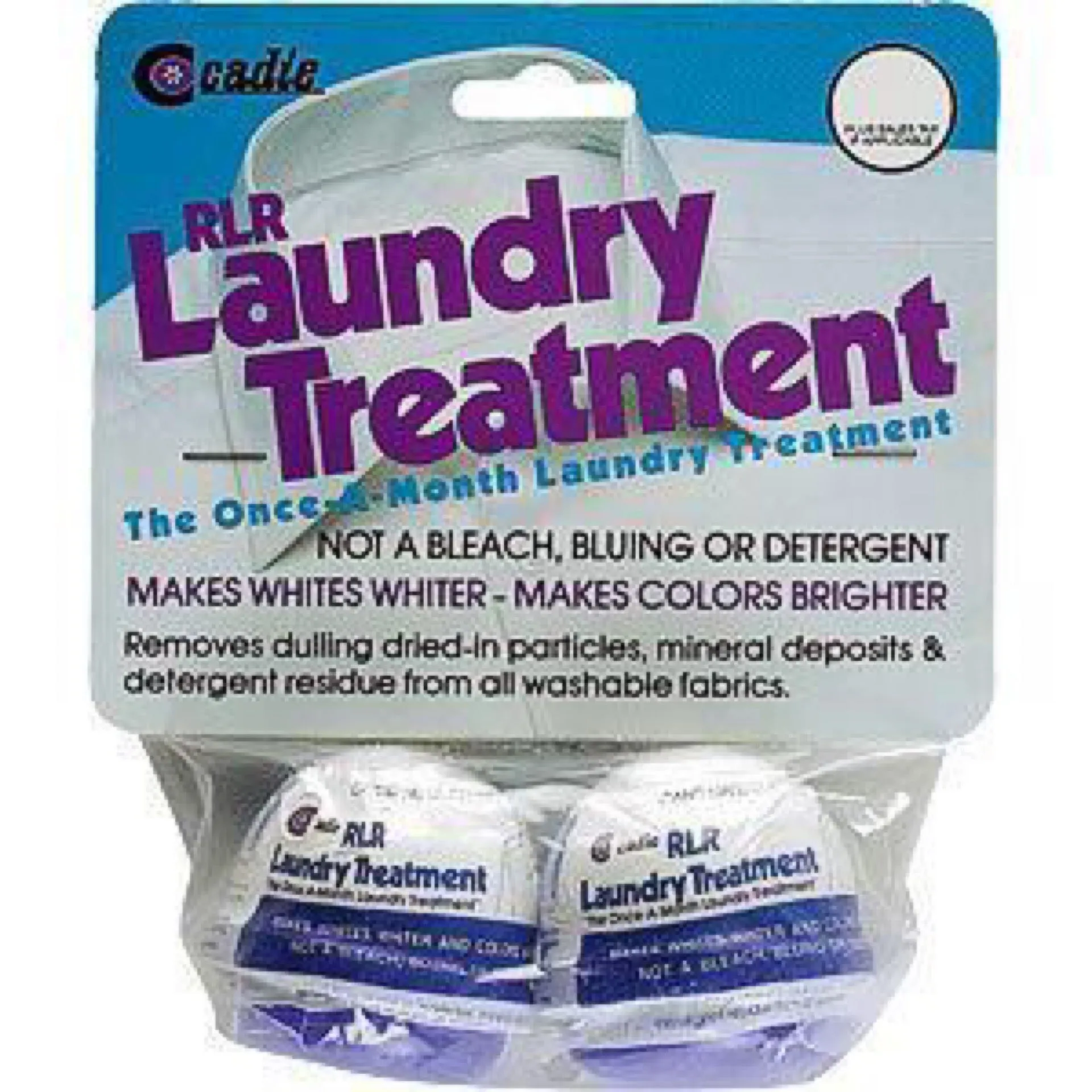 Add RLR to your cloth diaper routine once a month or as needed to strip damaging mineral and detergent residue that causes odor and hard, crunchy diapers. Who needs this? If you have hard water or have ammonia issues, coarse fabric, or build-up on your regular clothing, this will help. Makes whites whiter and colors brighter, fabrics last longer. No Phosphates, Non-Polluting, Bio-Degradable;Removes dried-in mineral deposits and detergent residue from clothing. Includes: 2 pill pack for 2 treatments. Made in USA. Safe to use as often as you wish. Fabrics actually last longer with regular use.