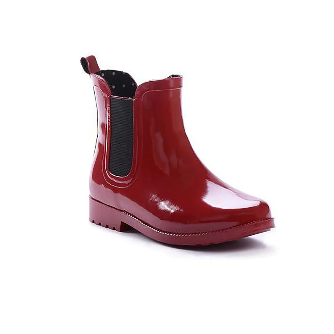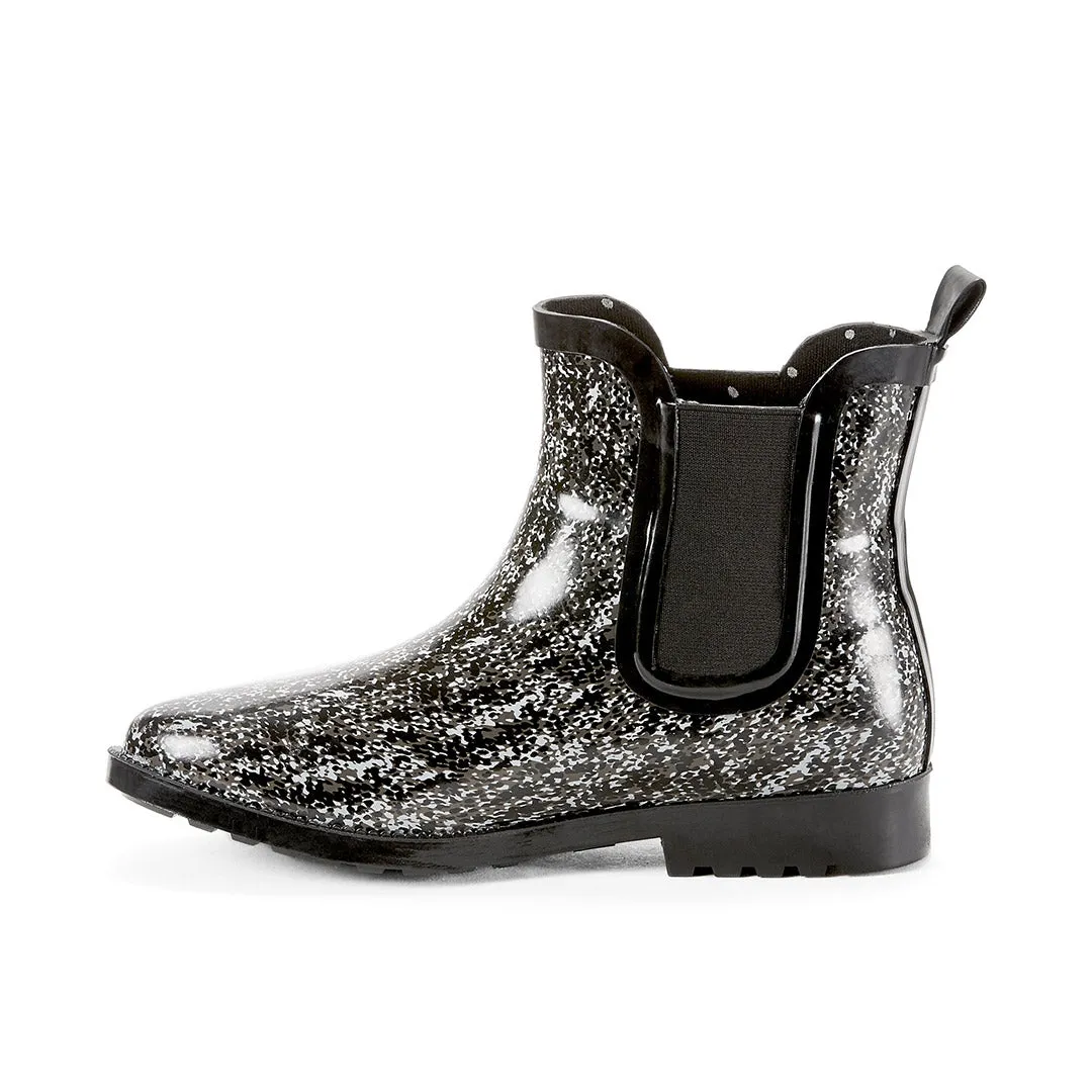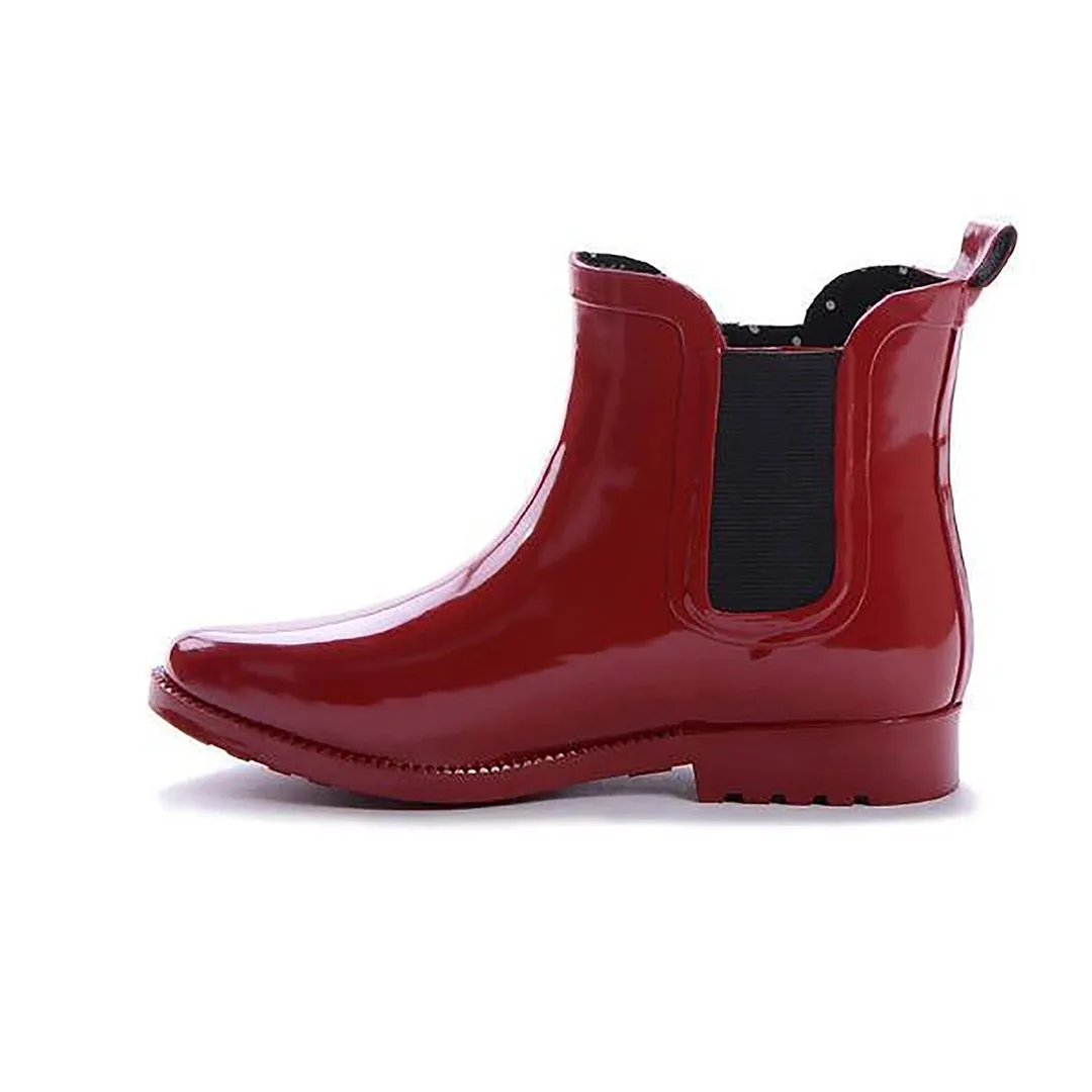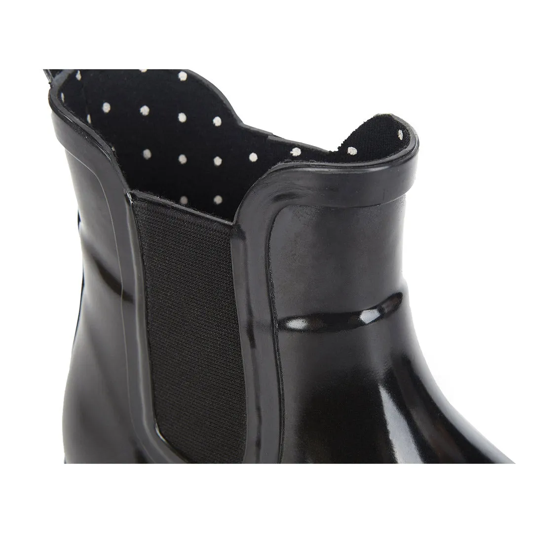 Look elegant even in the rain with this natural rubber arched bootie featuring a polka dot lining and elastic panels at the sides, for a custom, comfortable fit.
