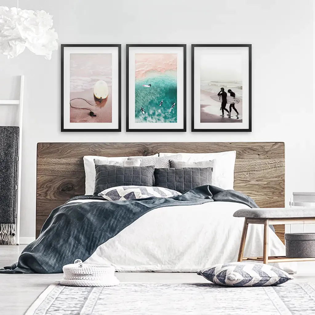 This wall art will introduce into your room California surf charm. Pastel pink and turquoise colors will made a calm and relax atmosphere. Try it with white frames!