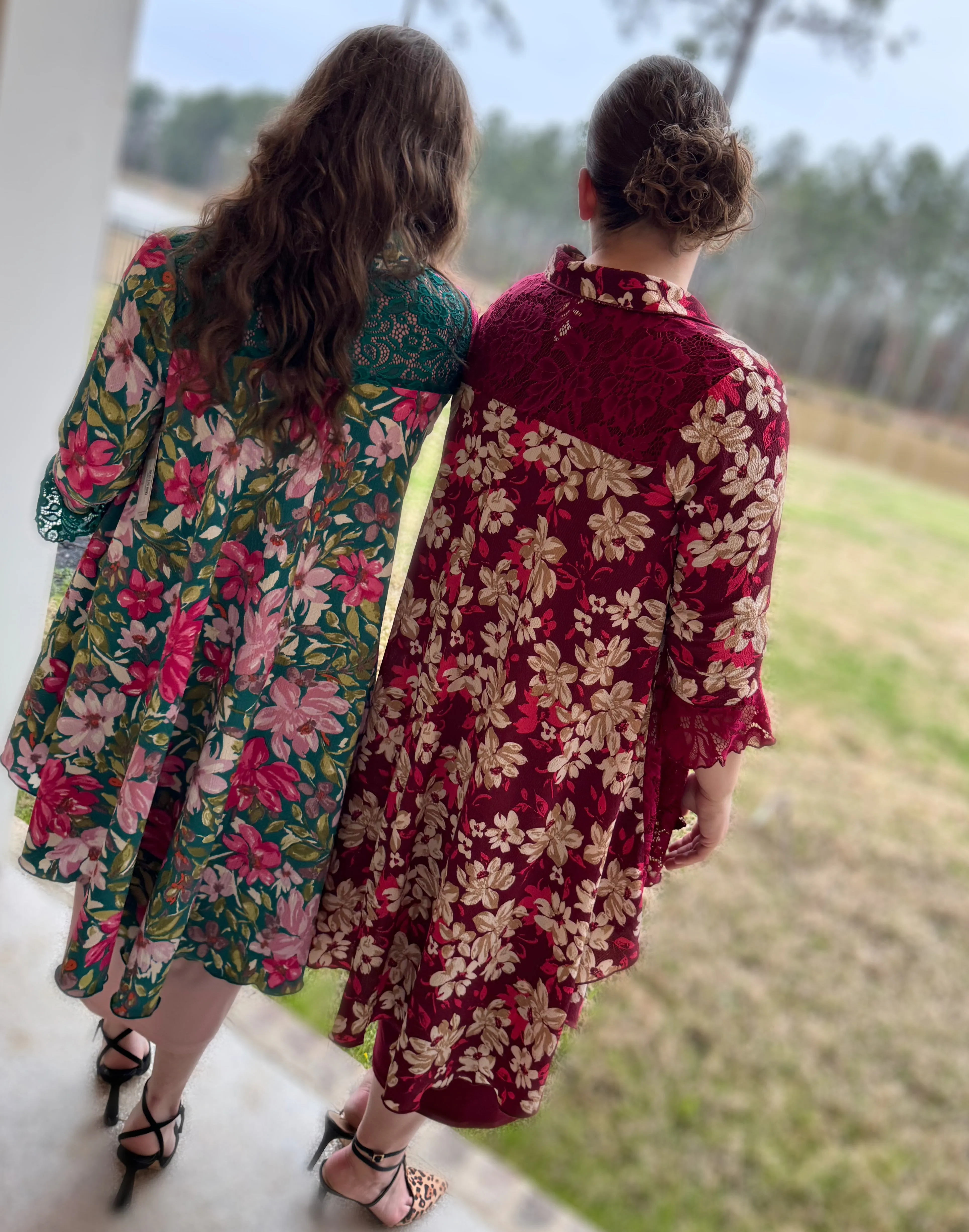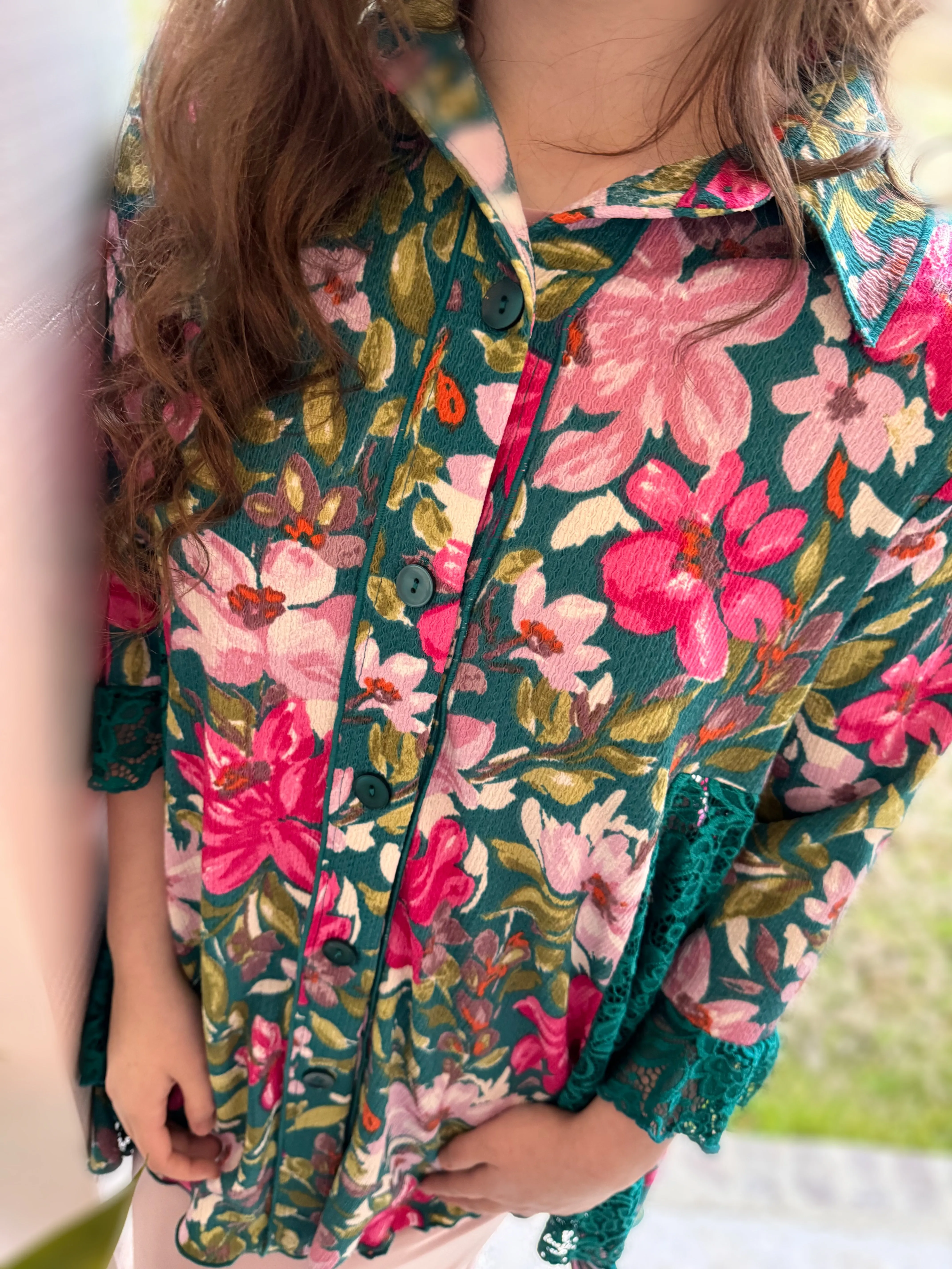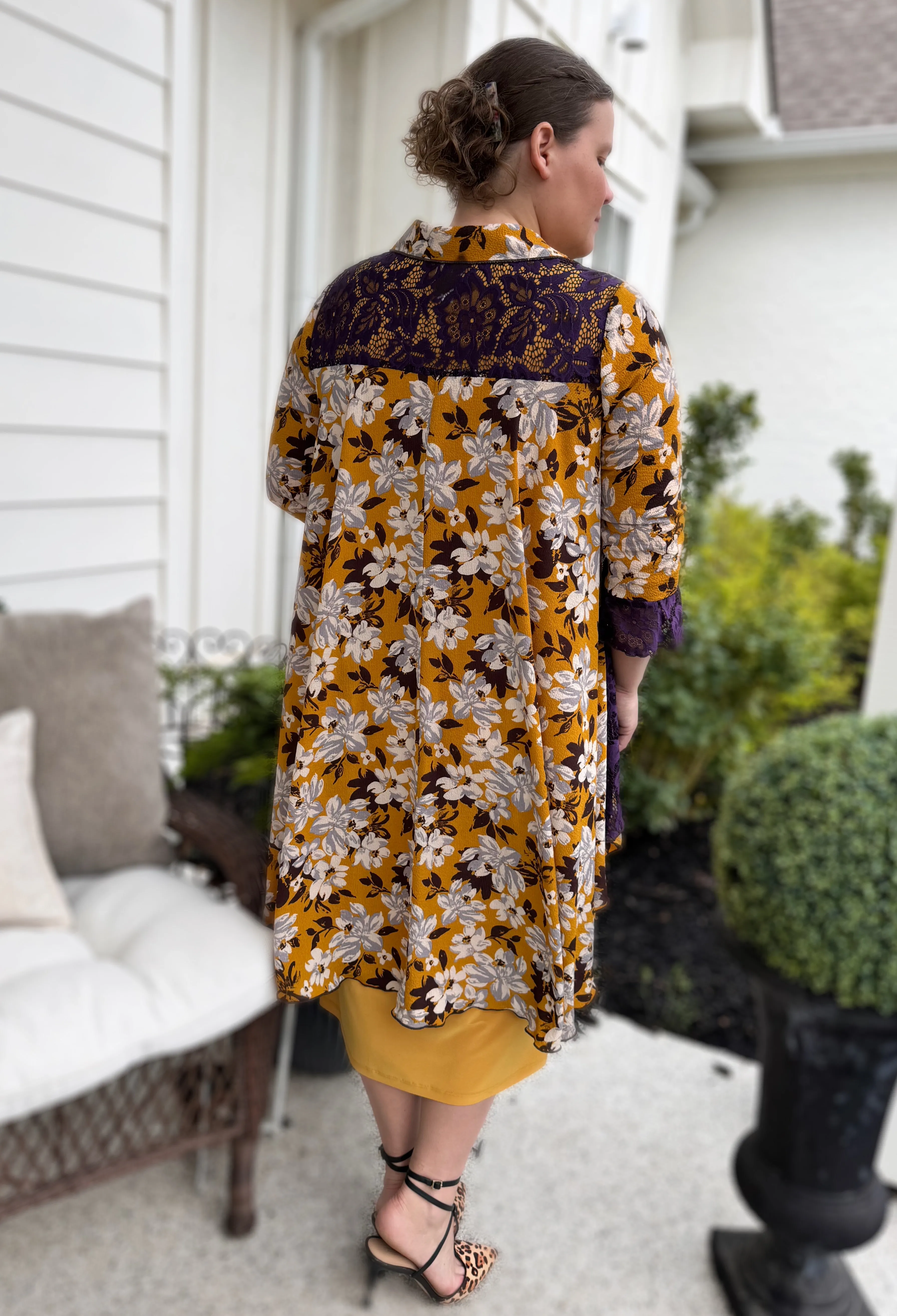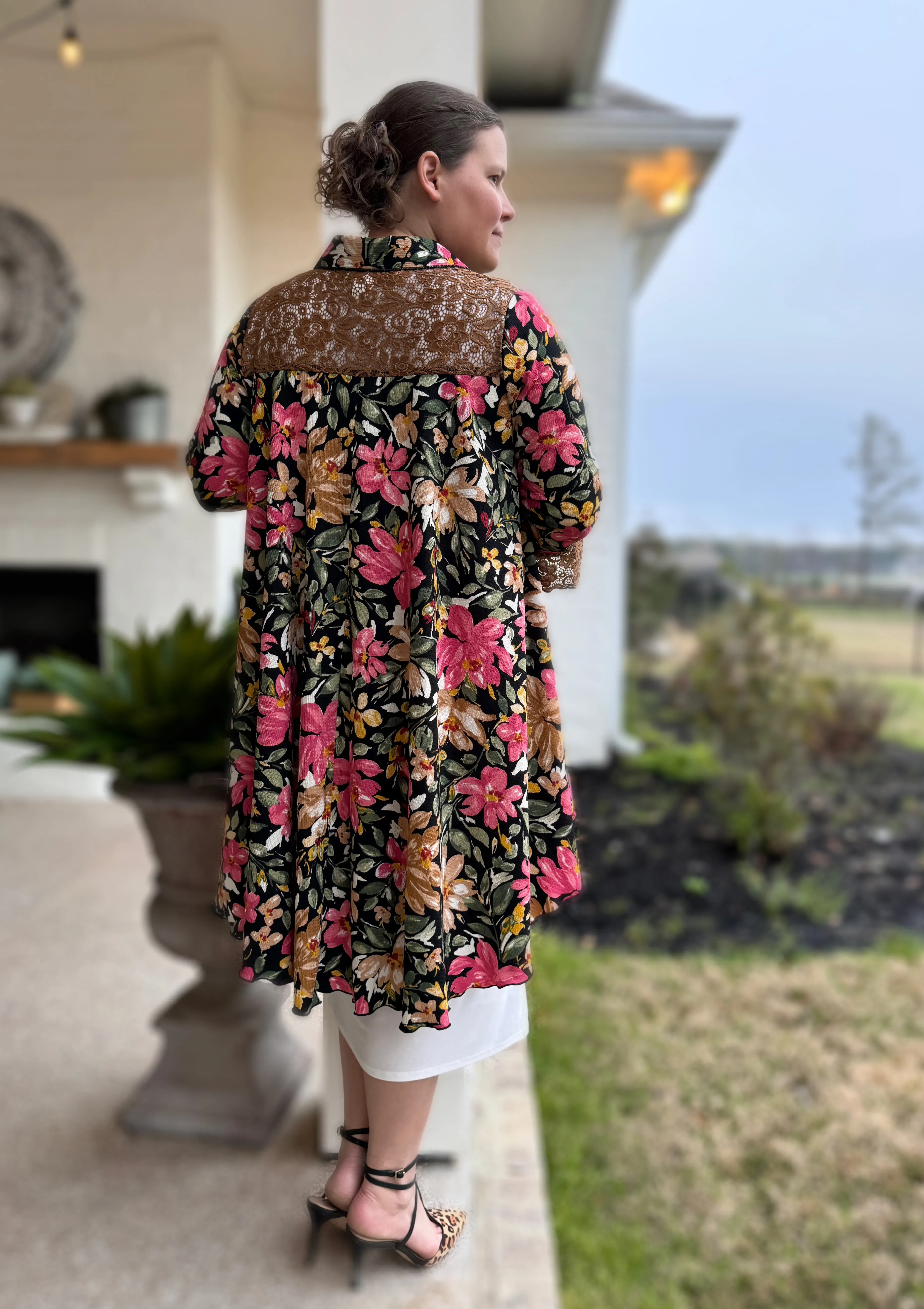 The Camila tops have become one of our most popular pieces! The design is extremely classy and elegant. The Camila is a high/low top with a button front, trimmed with a yoke on the back along with two insets in the front of a delightful coordinating fabric. The inserted lace contrasting against the fabric of the body creates a flattering look. It has 3-quarter sleeves that are trimmed out with the same beautiful pieces of lace. This piece pairs well so many of our layering garments.