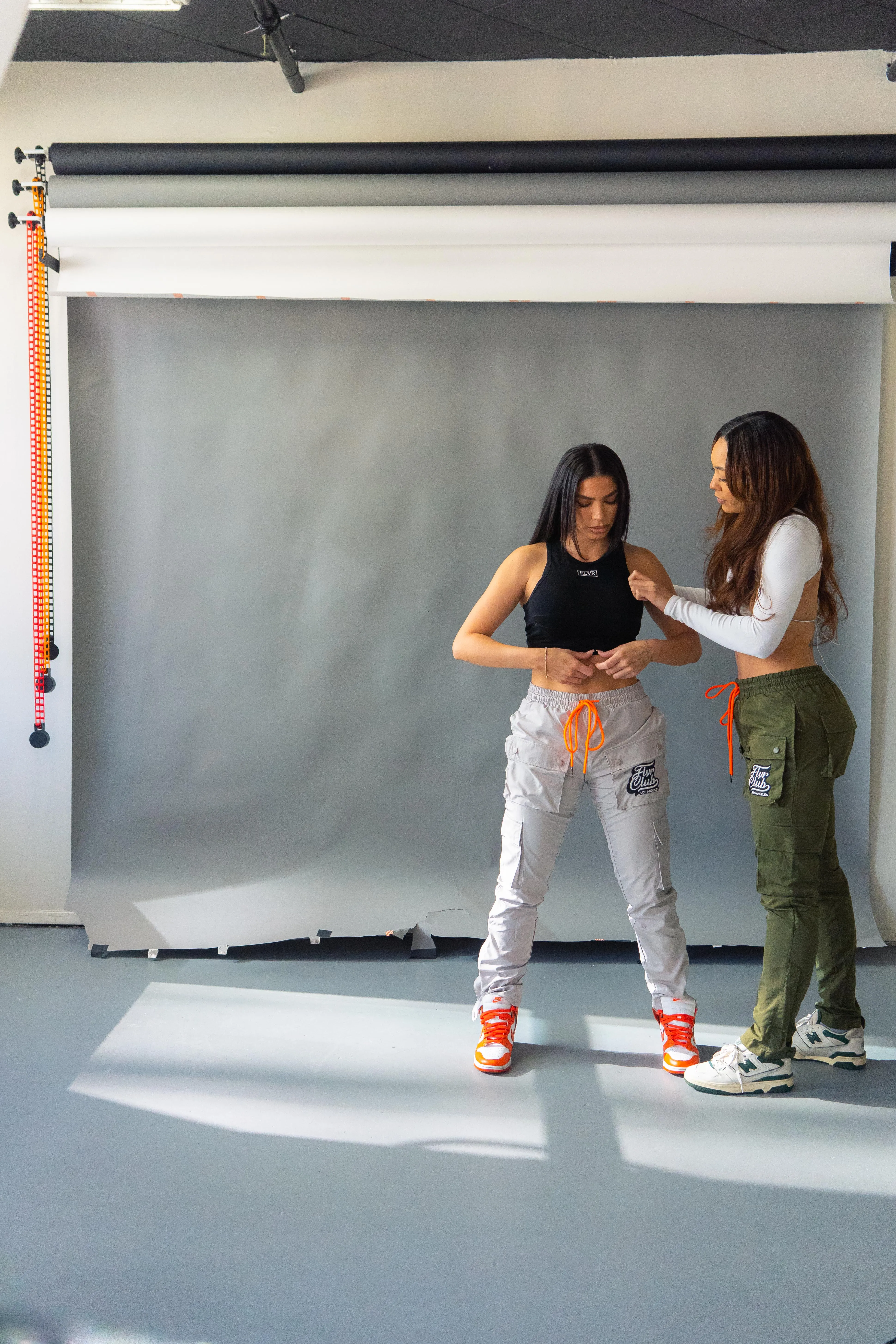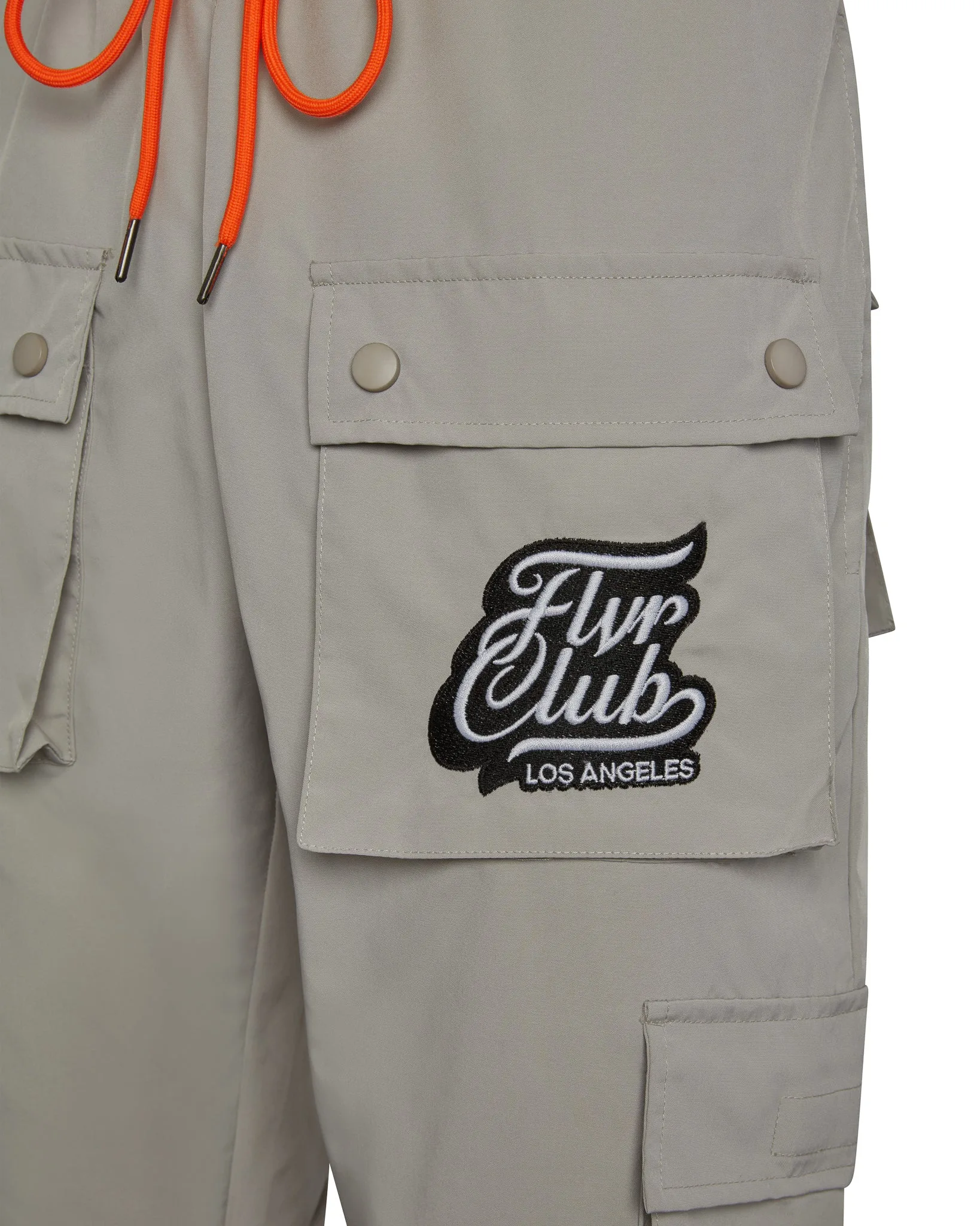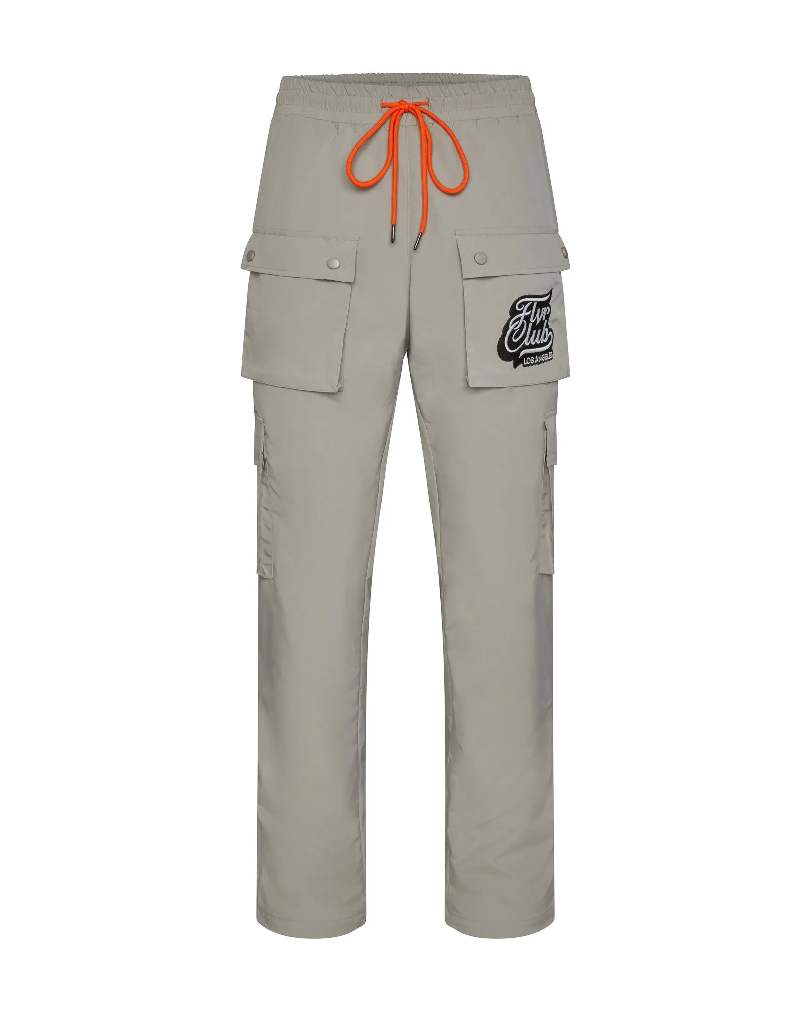 Our best selling Cargo Pants! These tan pants feature embroidered FLVR CLUB detailing and the option for flare or zip bottoms.