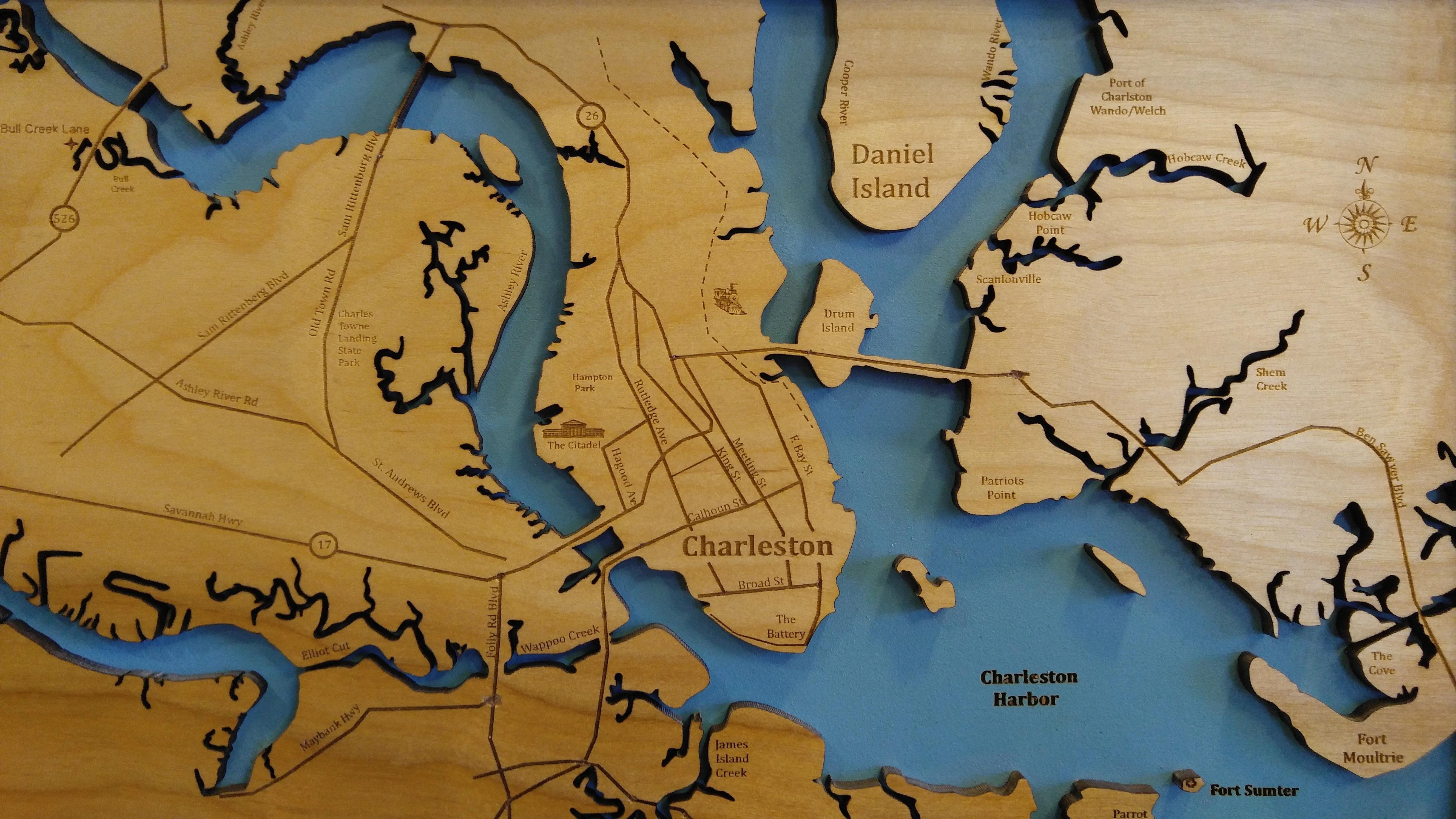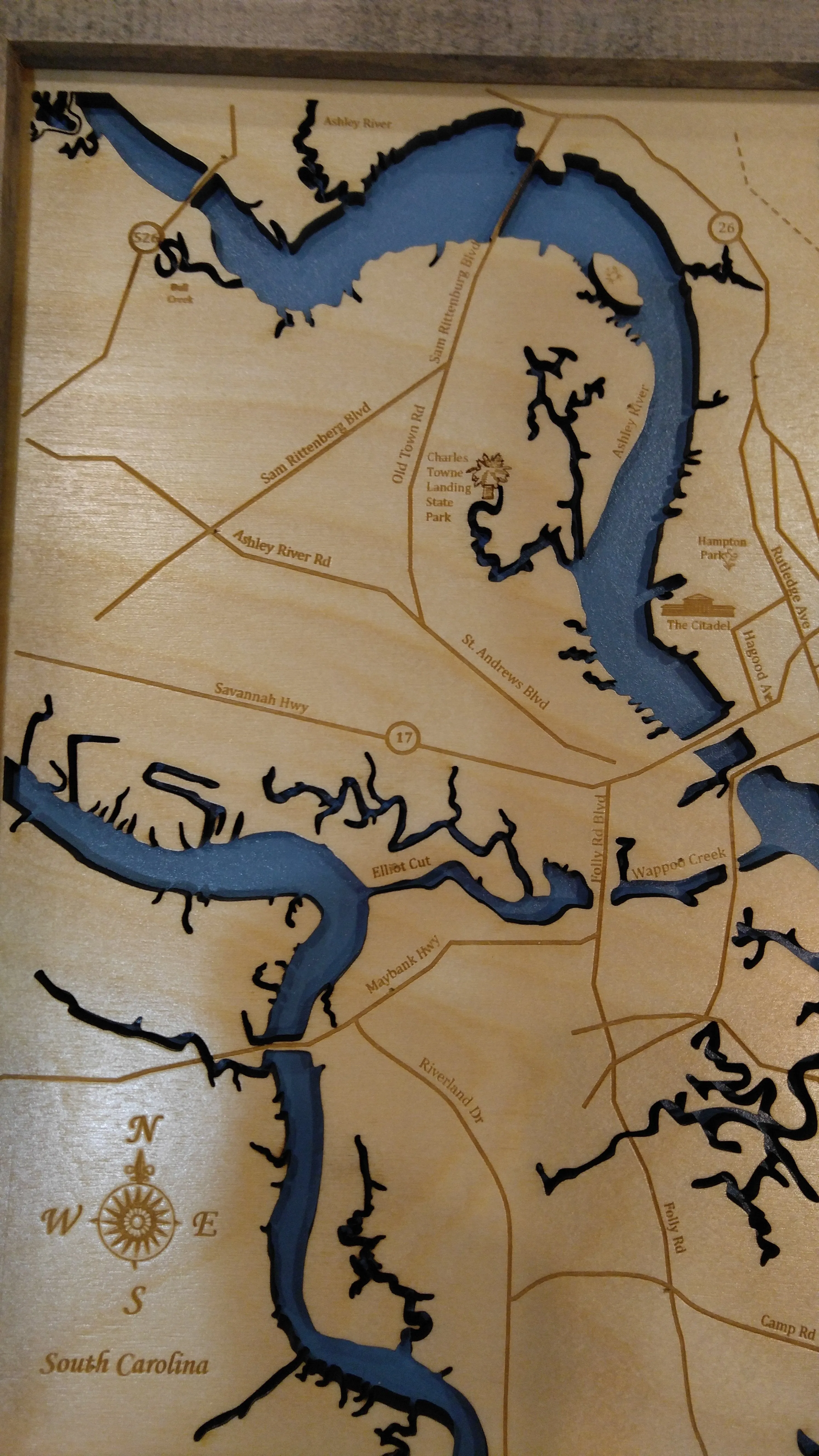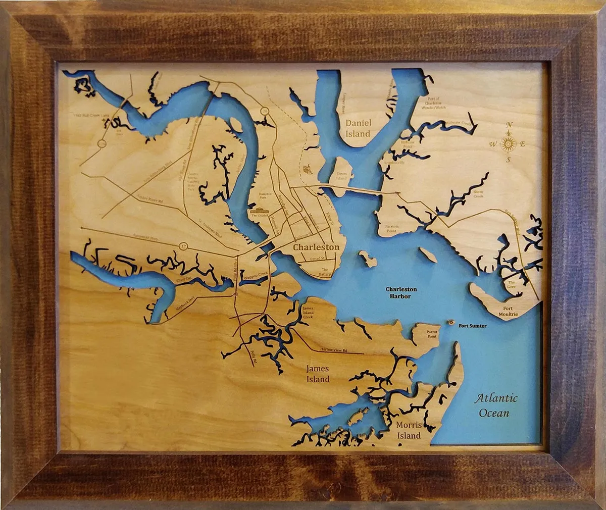 It looks like you are searching for a laser engraved wood map of Charleston, South Carolina. You want a detailed, carefully crafted work of art from an established wood shop in the good ol’ USA. You, my friend, have found what you are looking for!