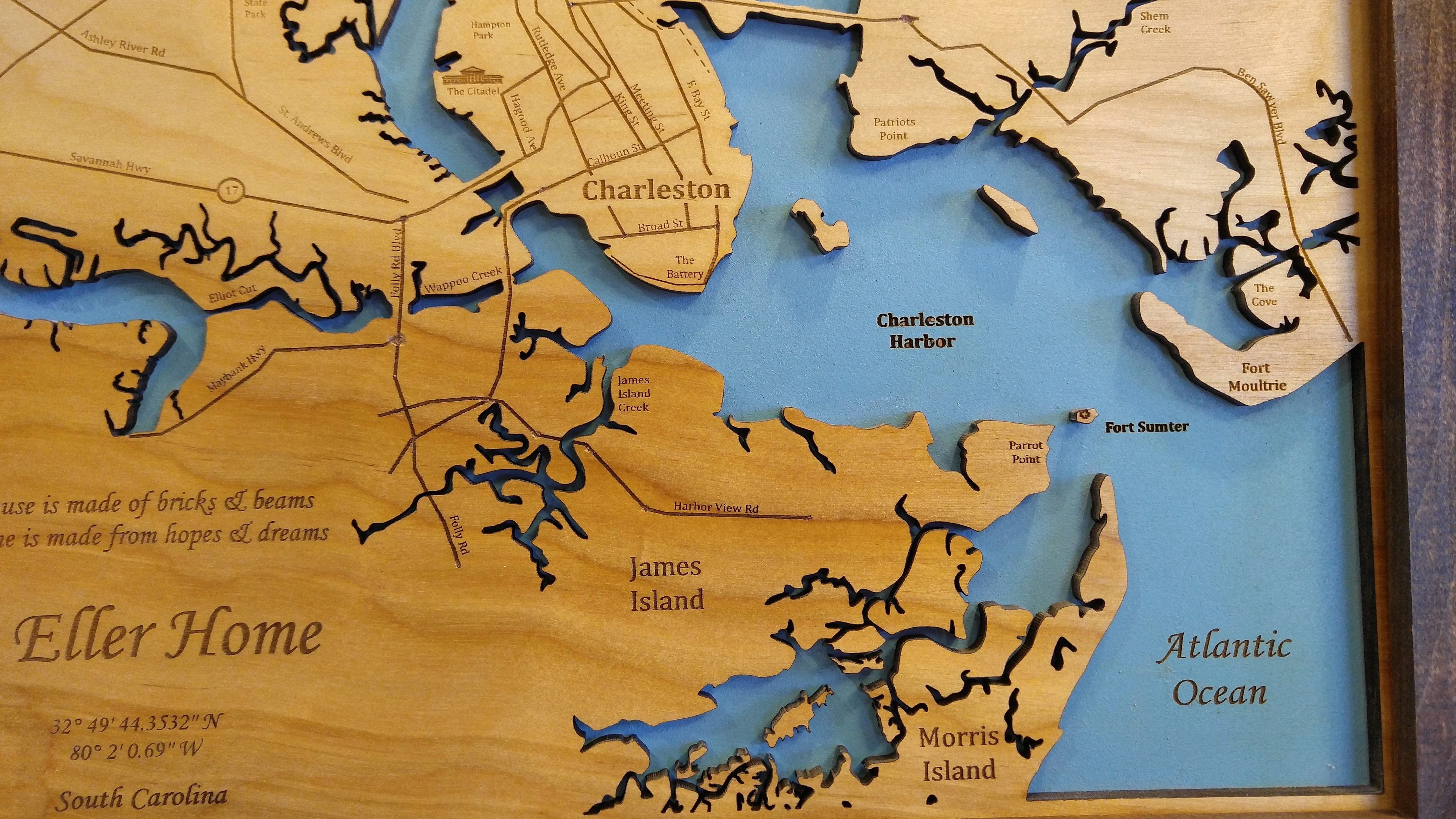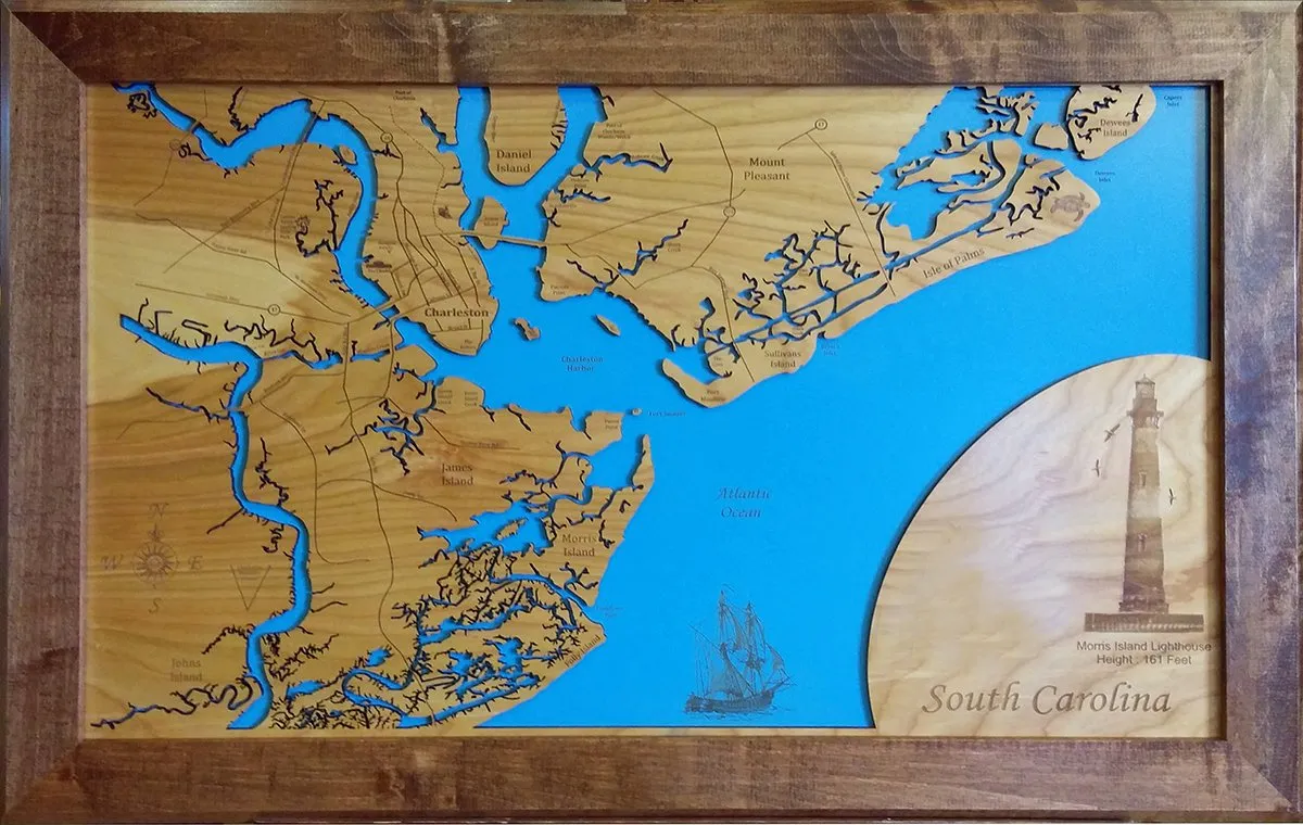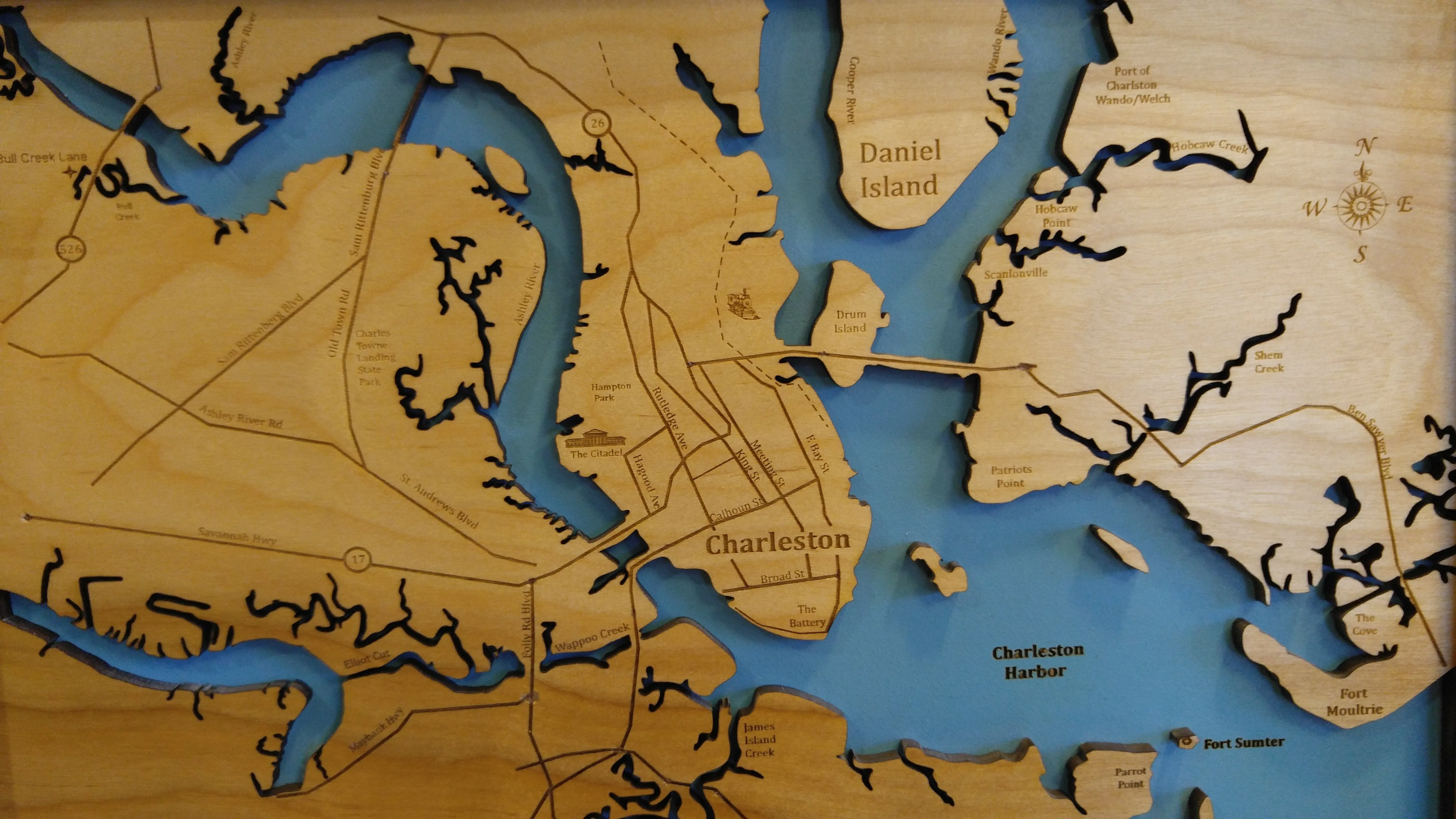 It looks like you are searching for a laser engraved wood map of Charleston, South Carolina. You want a detailed, carefully crafted work of art from an established wood shop in the good ol’ USA. You, my friend, have found what you are looking for!