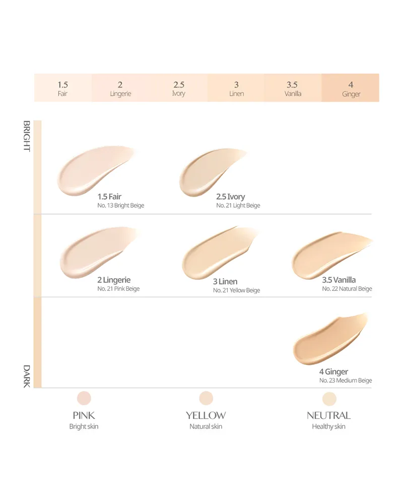 Water, Cyclopentasiloxane, Titanium Dioxide (Ci 77891), Ethylhexyl Methoxycinnamate, Butylene Glycol, Ethylhexyl Salicylate, Lauryl PEG-9 Polydimethylsiloxyethyl Dimethicone, Cetyl Ethylhexanoate, Niacinamide, Polymethylsilsesquioxane, 1,2-Hexanediol, Methyl Trimethicone, PEG-10 Dimethicone, Silica, Isododecane, Acrylates/Dimethicone Copolymer, Magnesium Sulfate, Cetearyl Dimethicone/Vinyl Dimethicone Crosspolymer, Stearic Acid, Disteardimonium Hectorite, Alumina, Aluminum Hydroxide, Triethoxycaprylylsilane, Octyldodecanol, Adenosine, Trisodium Ethylenediamine Disuccinate, PEG-9 Polydimethylsiloxyethyl Dimethicone, Dimethicone, Polyglyceryl-4 Isostearate, Polypropylsilsesquioxane, Isopropyl Titanium Triisostearate, Hydroxypropyltrimonium Hyaluronate, Tocopherol, Fragrance, Benzyl Benzoate, Linalool, Limonene, Mica (Ci 77019), Yellow Iron Oxide (Ci 77492), Red Iron Oxide (Ci 77491), Black Iron Oxide (Ci 77499).