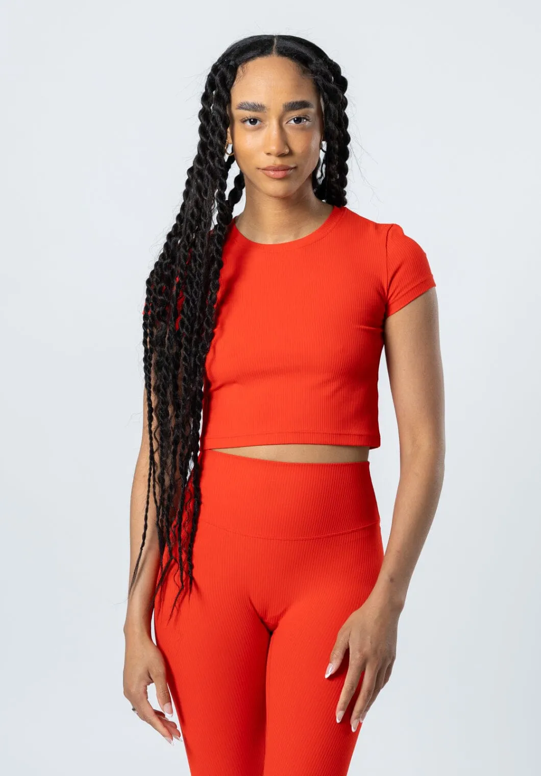 The must-have essential you need in your closet, the Short Sleeve Crop - now in CloudRib™. This perfect easy-to-wear basic is designed for a flattering, form-fitting silhouette. Throw it on and go! The short sleeves keep you cool during your toughest workouts.