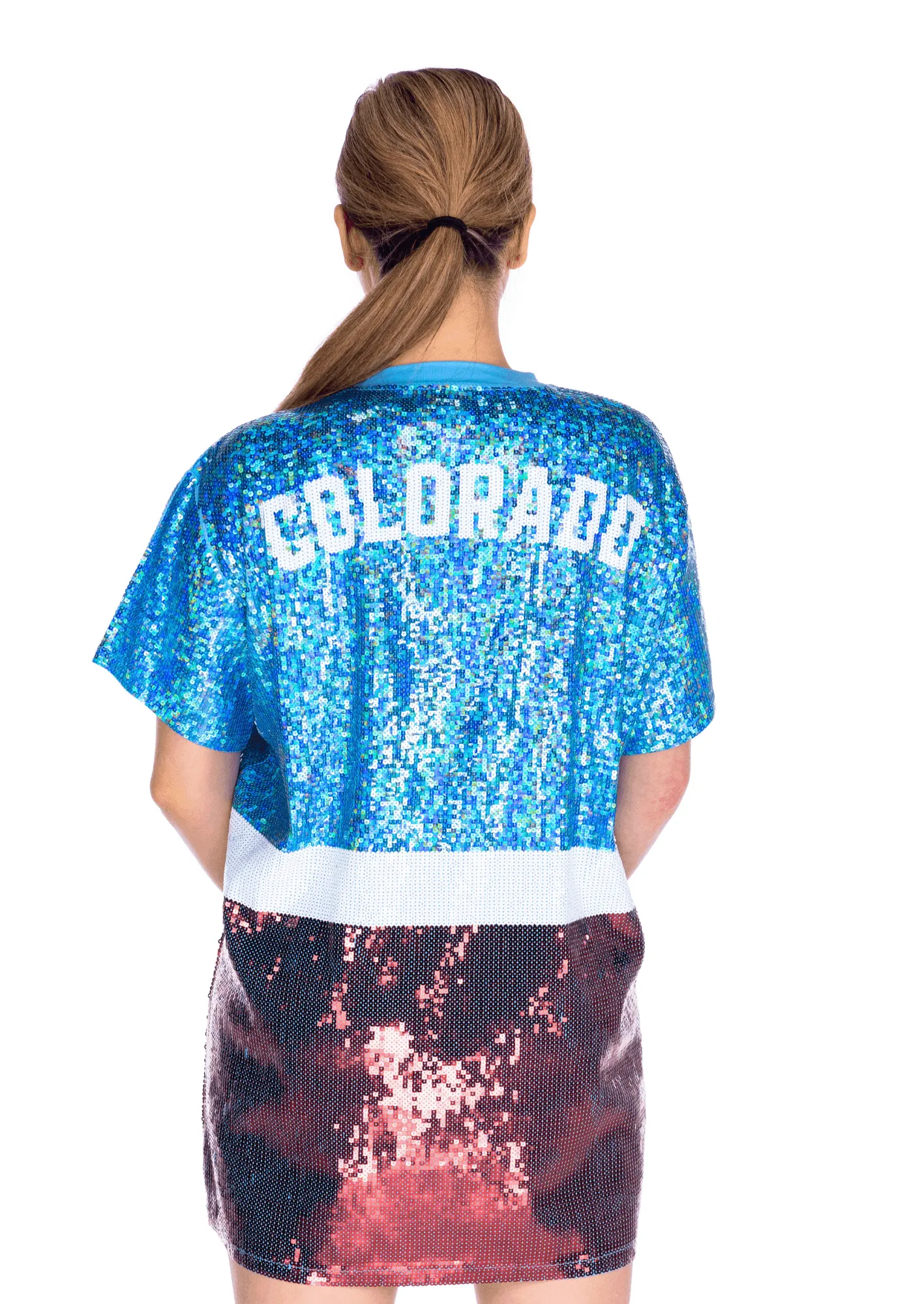 Designed by the Sequin Fans brand, this stunning Colorado Hockey sequin Jersey dress beautifully showcases your love for the Colorado Hockey team. Step onto the stadium or into any game day event with confidence and style with this sports glam hockey jersey dress, perfect for parties that go from day to night.
