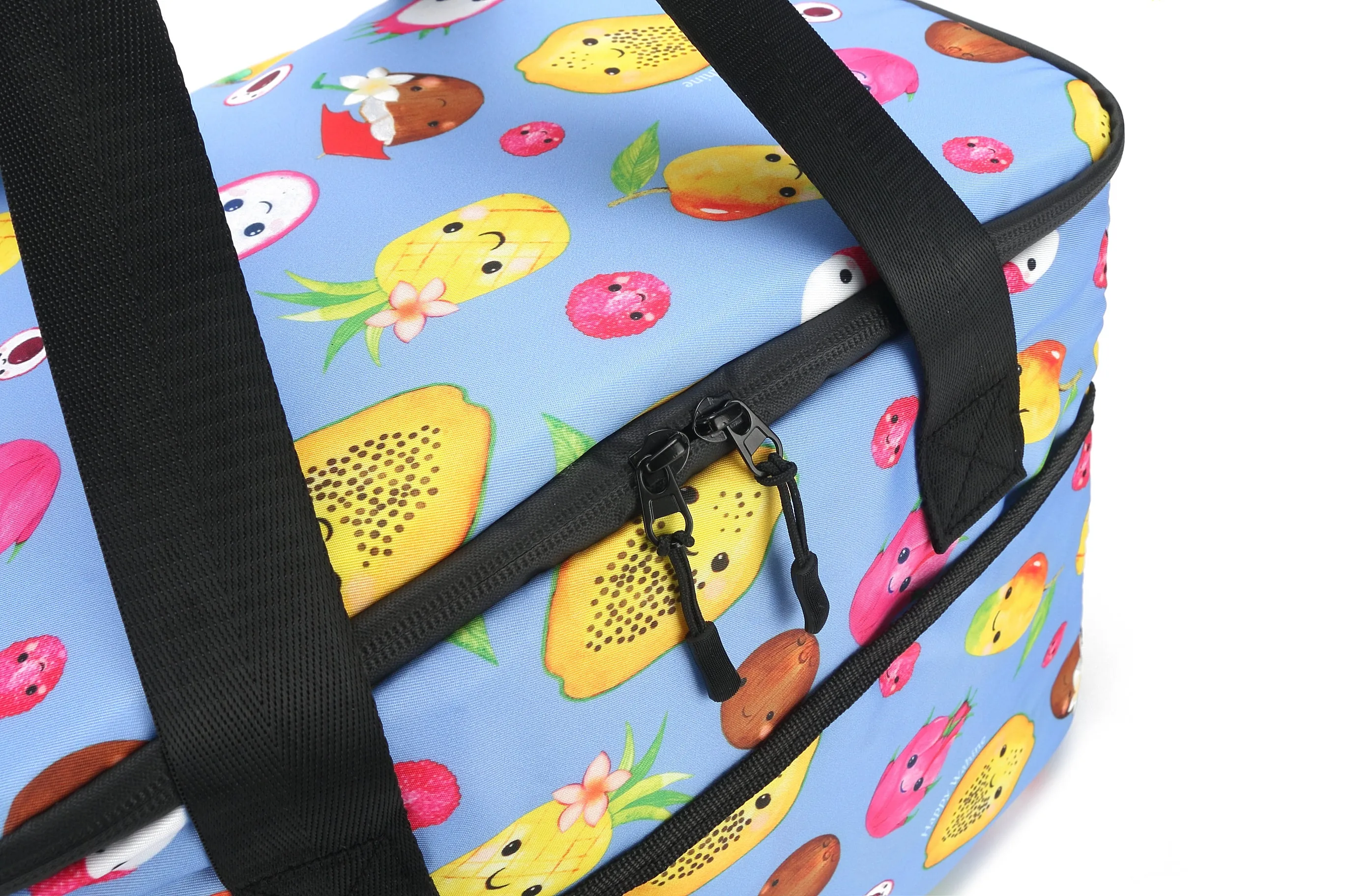 If you are going to the beach or just a small party at a friends house this cooler tote will be your go to for keeping your drinks and food fresh for hours. This cooler tote is supported with double strap handles, an adjustable shoulder strap that is removable, a two-way zipper for easy access to the main compartment, two outer mesh pockets for extra storage, and in our exclusive Tiare Infinity print in black.