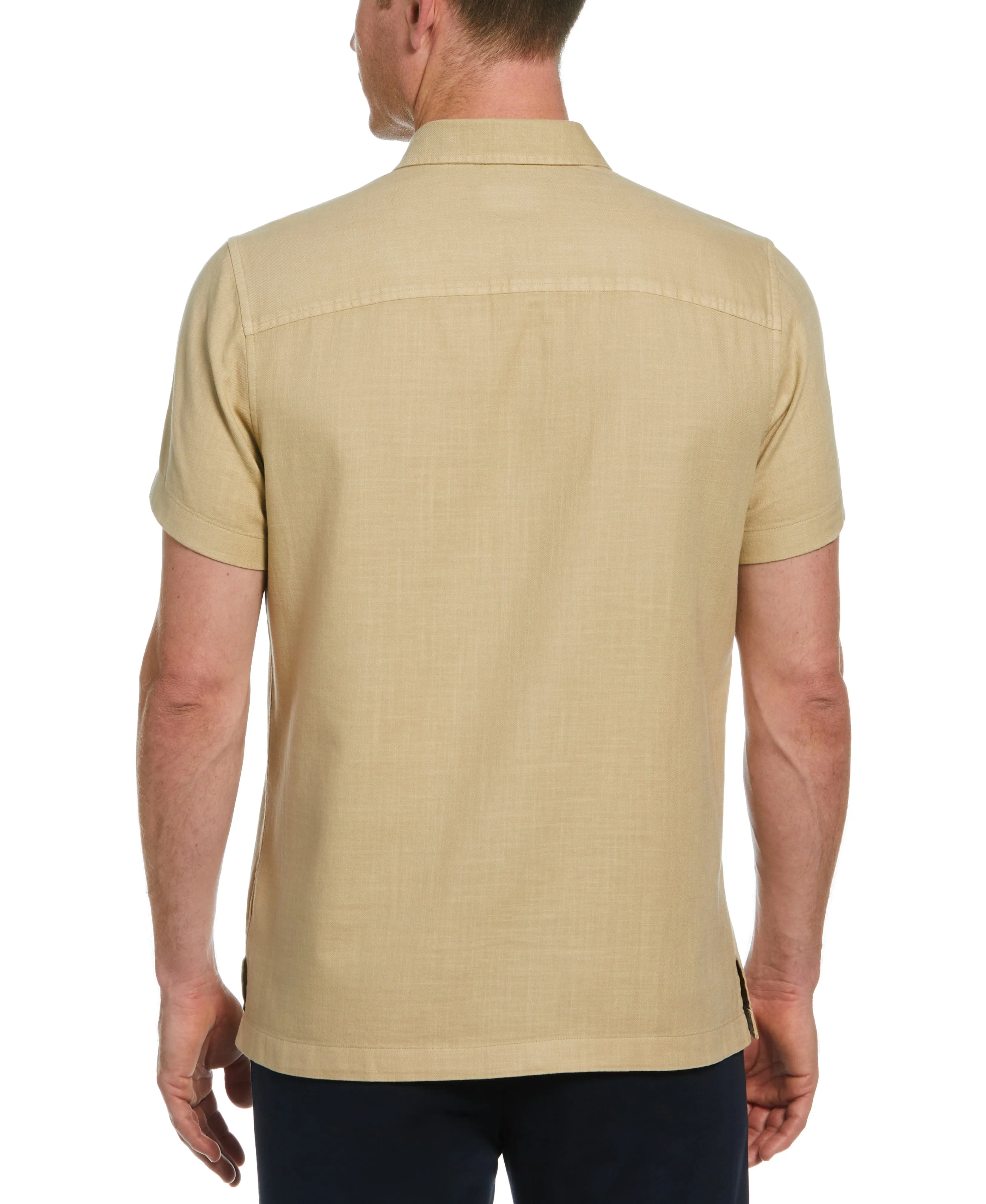 Stylish and comfortable, this men's short sleeve button-up shirt from Perry Ellis is the ideal choice for warm weather events. The classic short sleeve button-down shirt design is never out of place while the lightweight twill fabric makes it comfortable to wear when the sun is shining. Available in a solid color design, this shirt is easy to pair and style with your existing casual wardrobe.