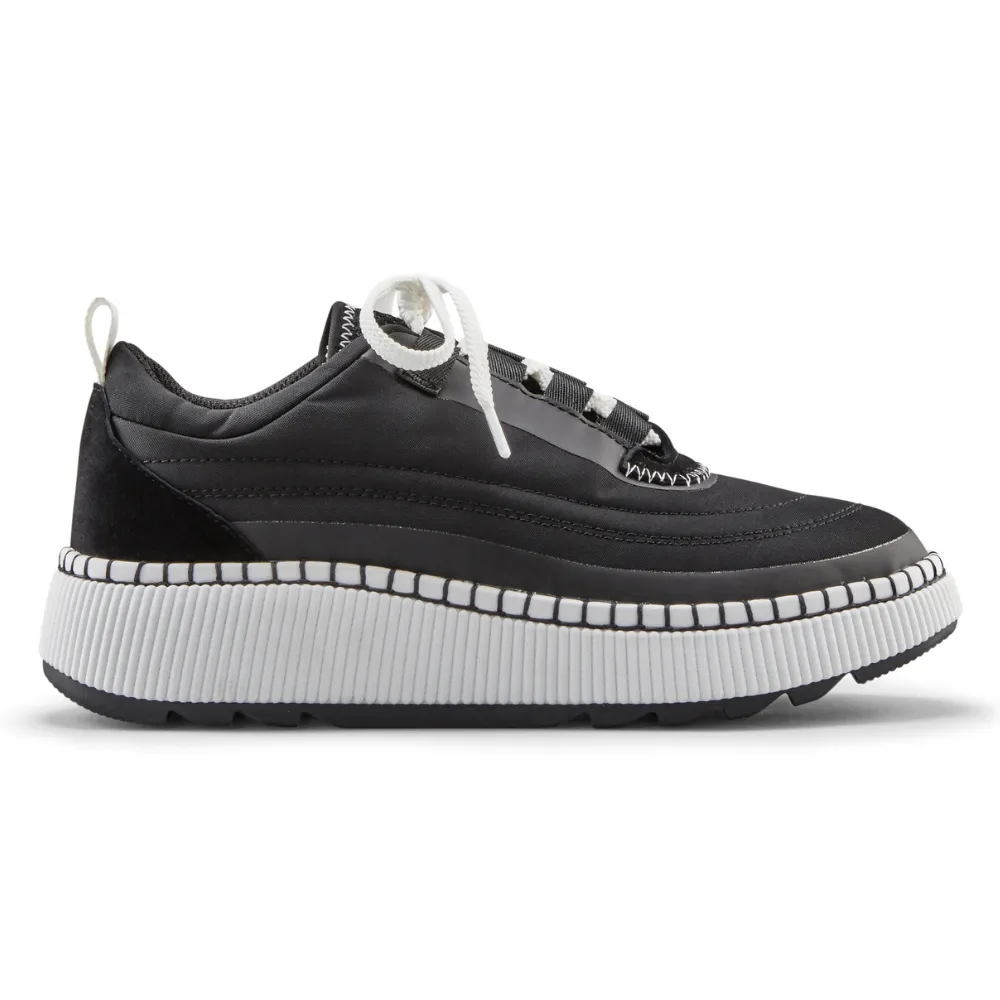 Get ready to elevate your sneaker game with the Cougar Sayah Black/White Sneaker! Made with a blend of sleek nylon and suede, these lightweight and flexible platform sneakers feature an ultra-cushy comfort insole and premium pillowy foam sole. With LUXMOTION Comfort Technology, you'll feel like you're walking on clouds all day long.