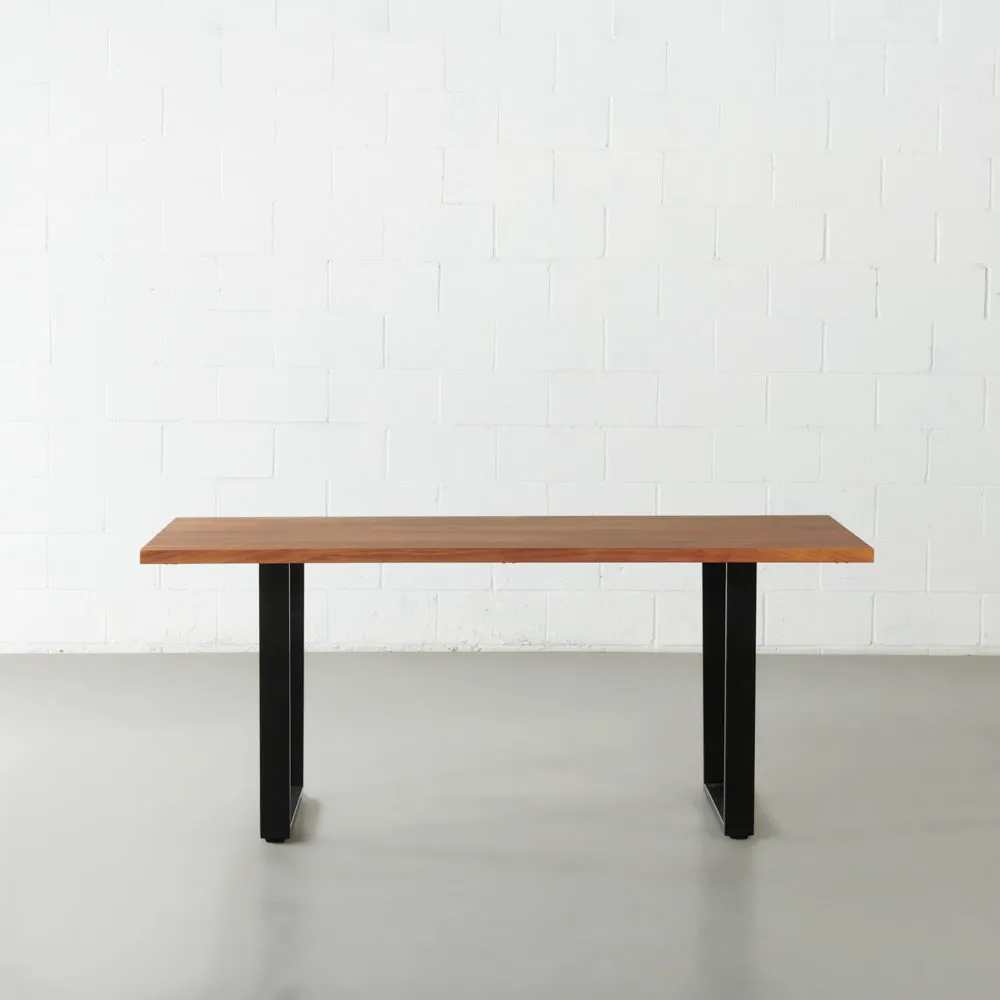 Each solid natural Acacia table slab is truly one of a kind and every bit as unique and beautiful as you are. The colour and character of the wood grain may vary a little, and natural cracks and fissures may develop with changes in humidity and temperature, this is a natural characteristic of solid wood furniture. This means your piece is developing a unique personality and character, and over time it will become a well-loved part of your home and family.