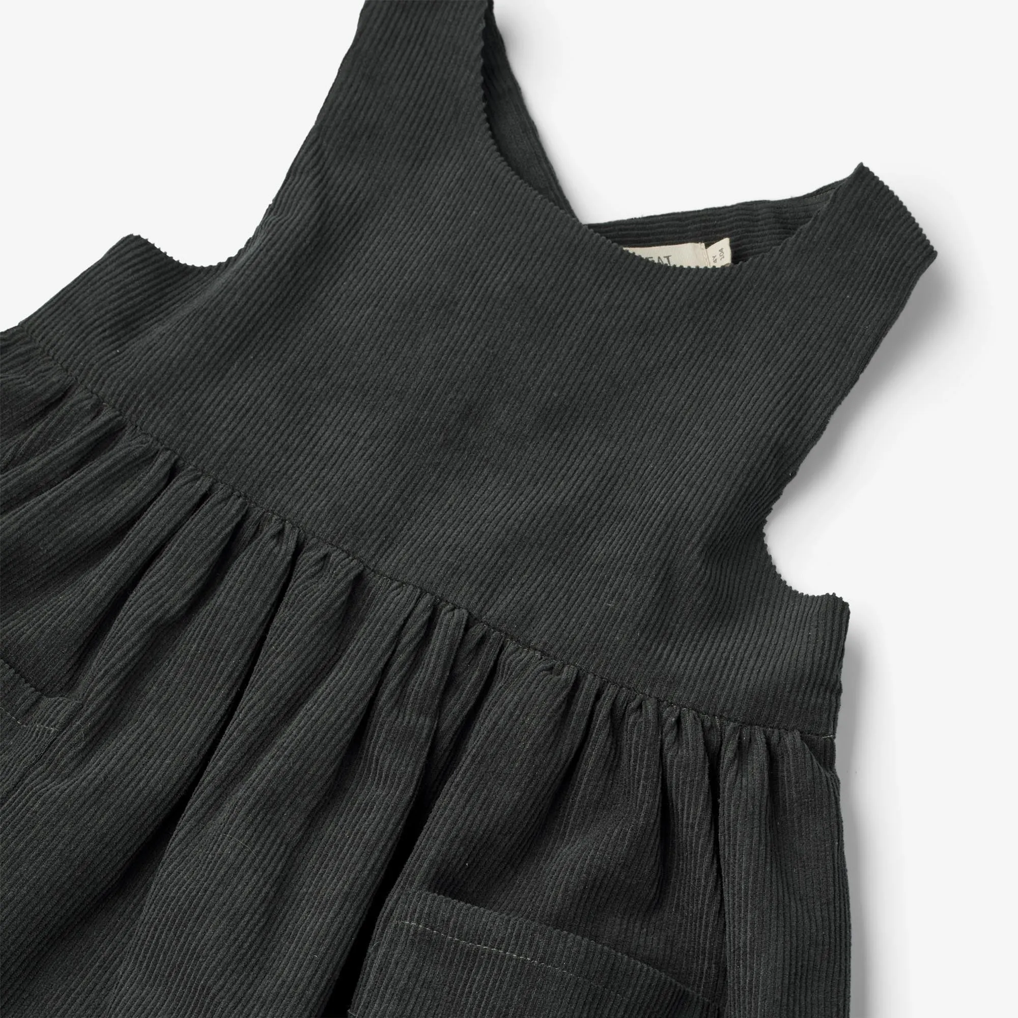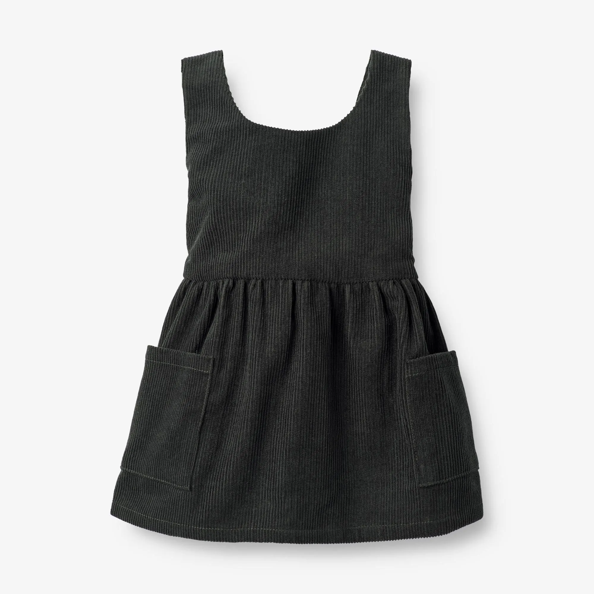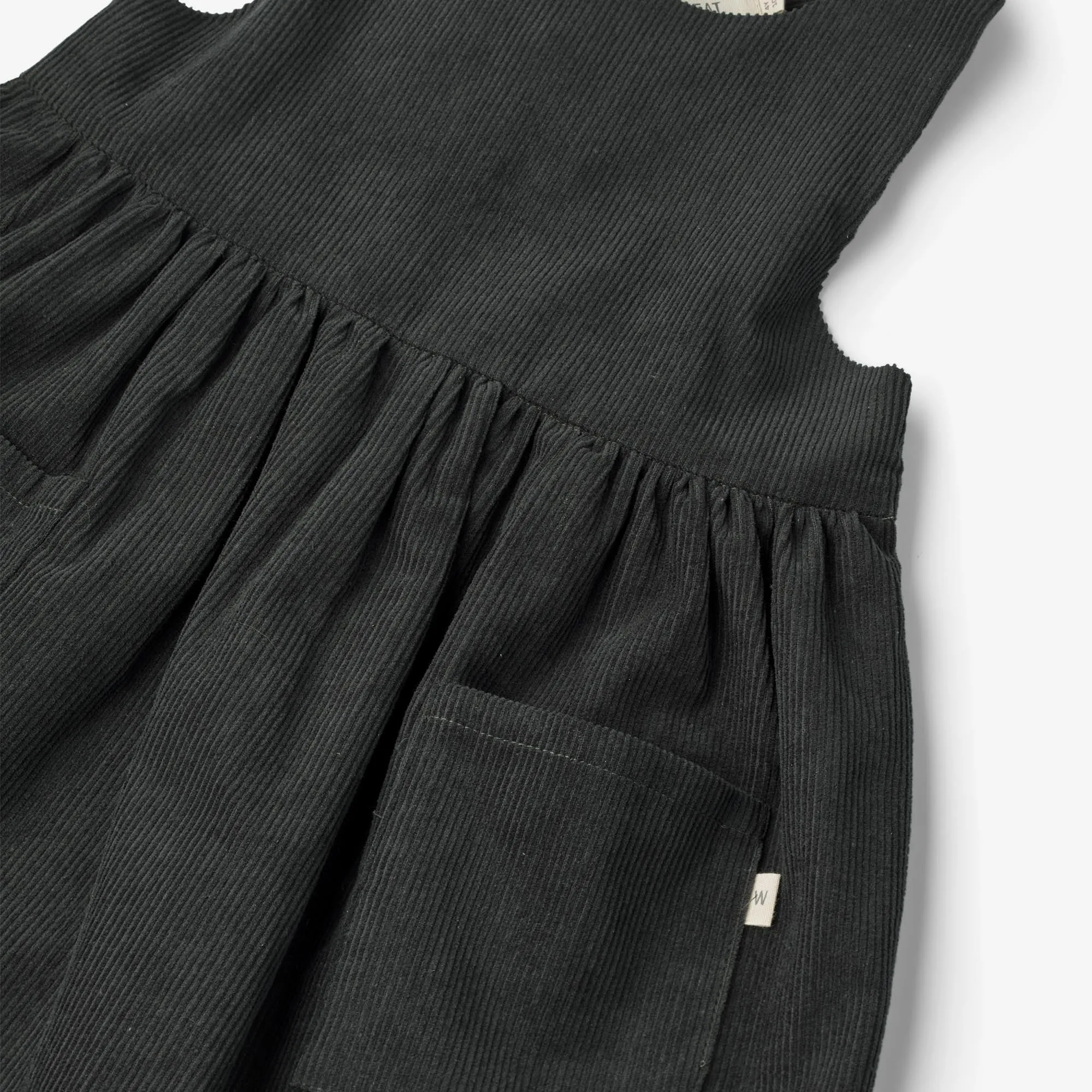 Pinafore dress with wide straps in soft organic cotton corduroy for the junior child.